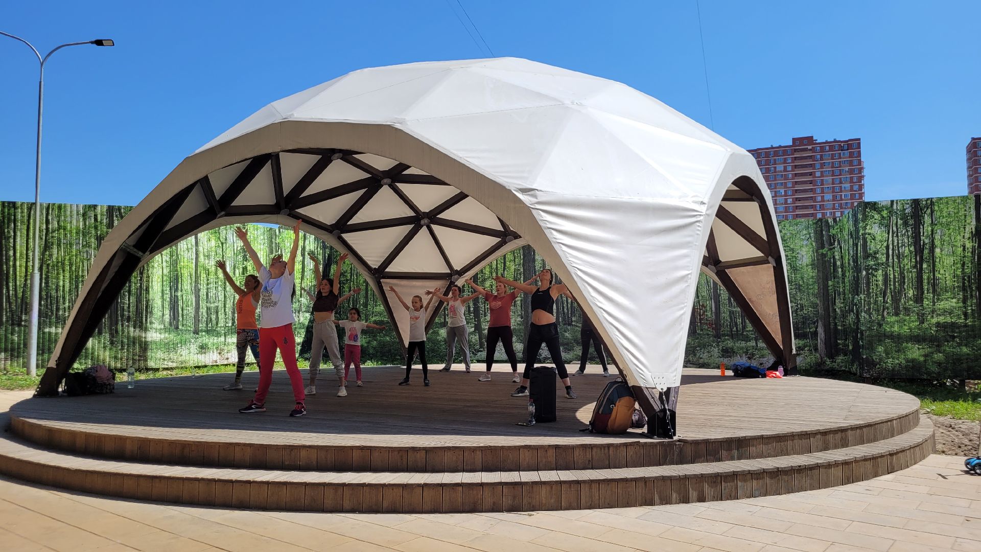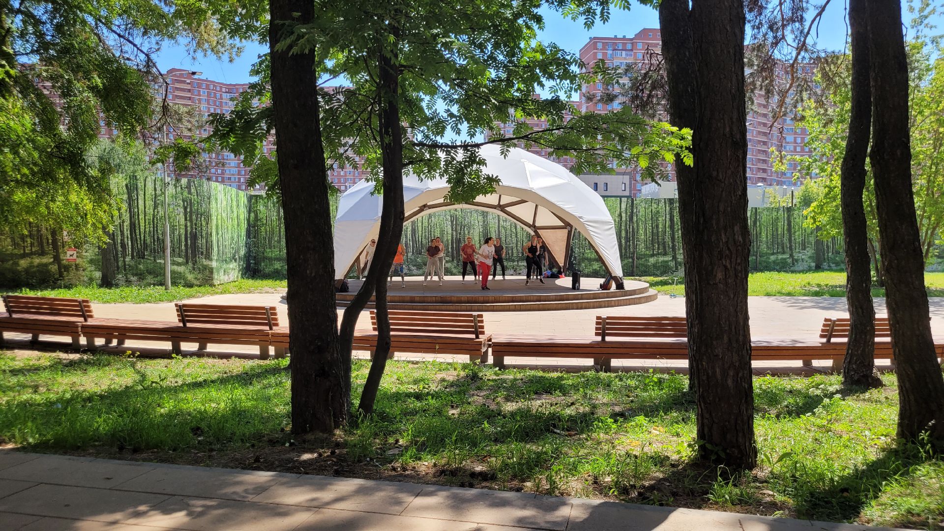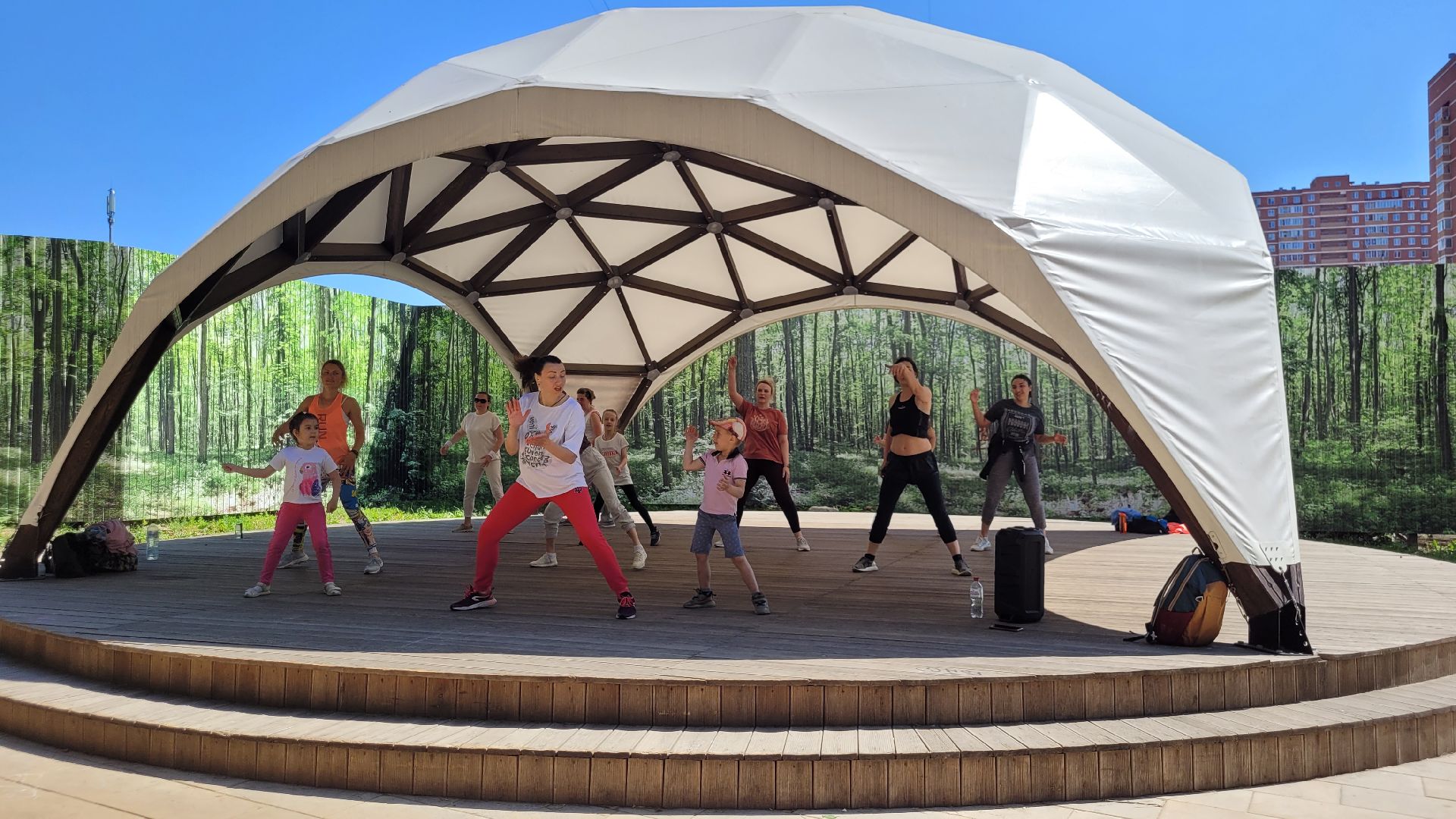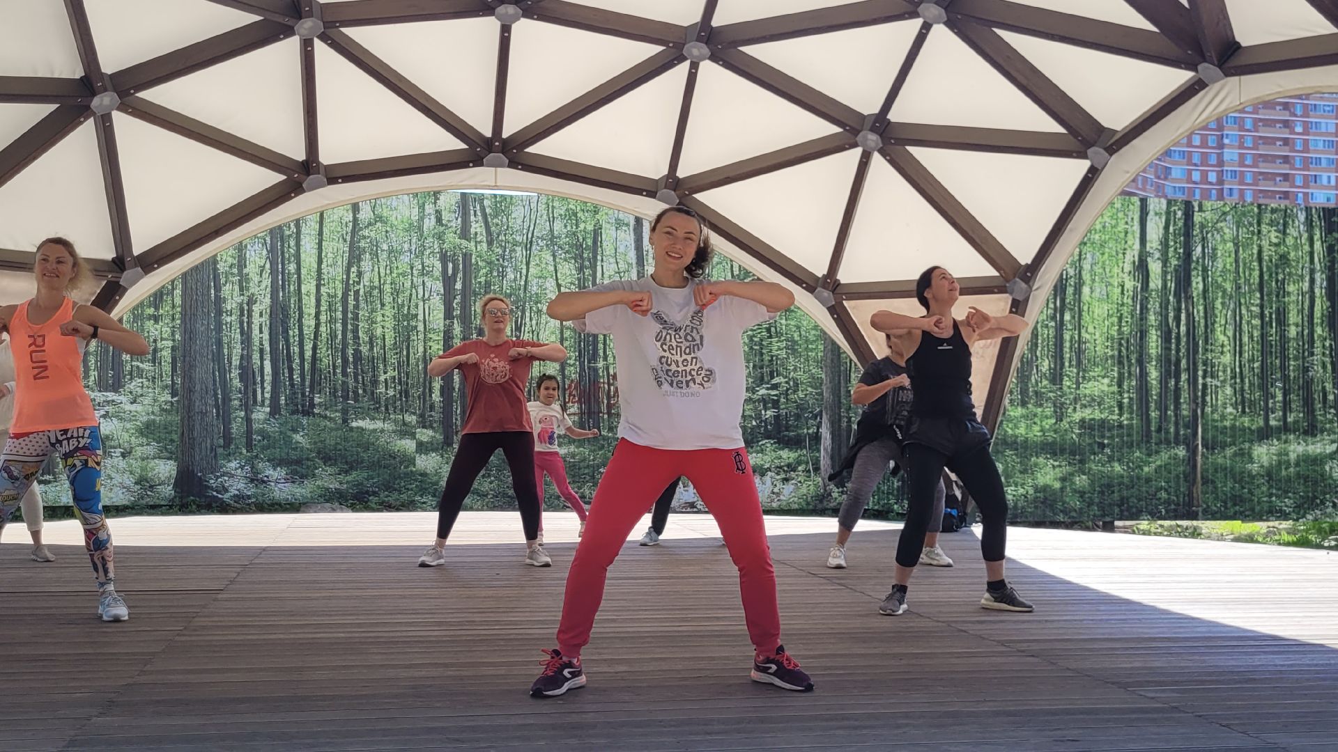 С середины июня несколько раз в неделю главный подиум в парке «Сосенки» в Видном наполняется танцорами. Вот и сегодня активные жительницы ближайших районов вновь собрались на площадке, чтобы зарядиться энергией и получить яркие эмоции на занятиях по зумбе. Инициатором активности стал спортивный клуб «Мегаполис».