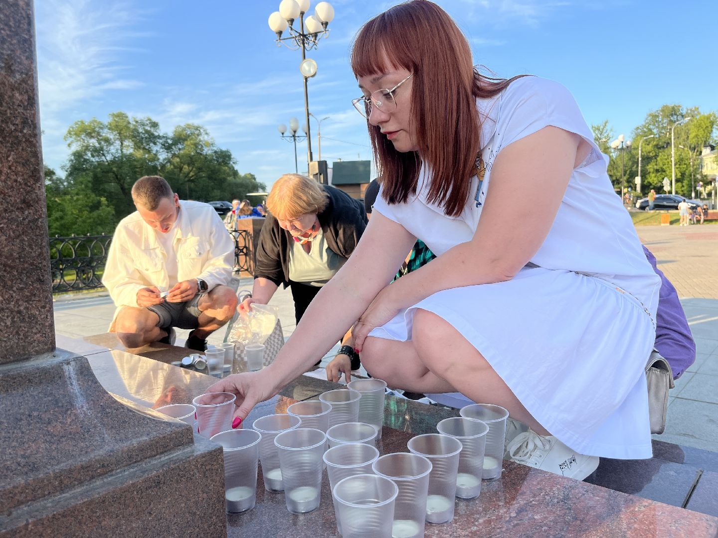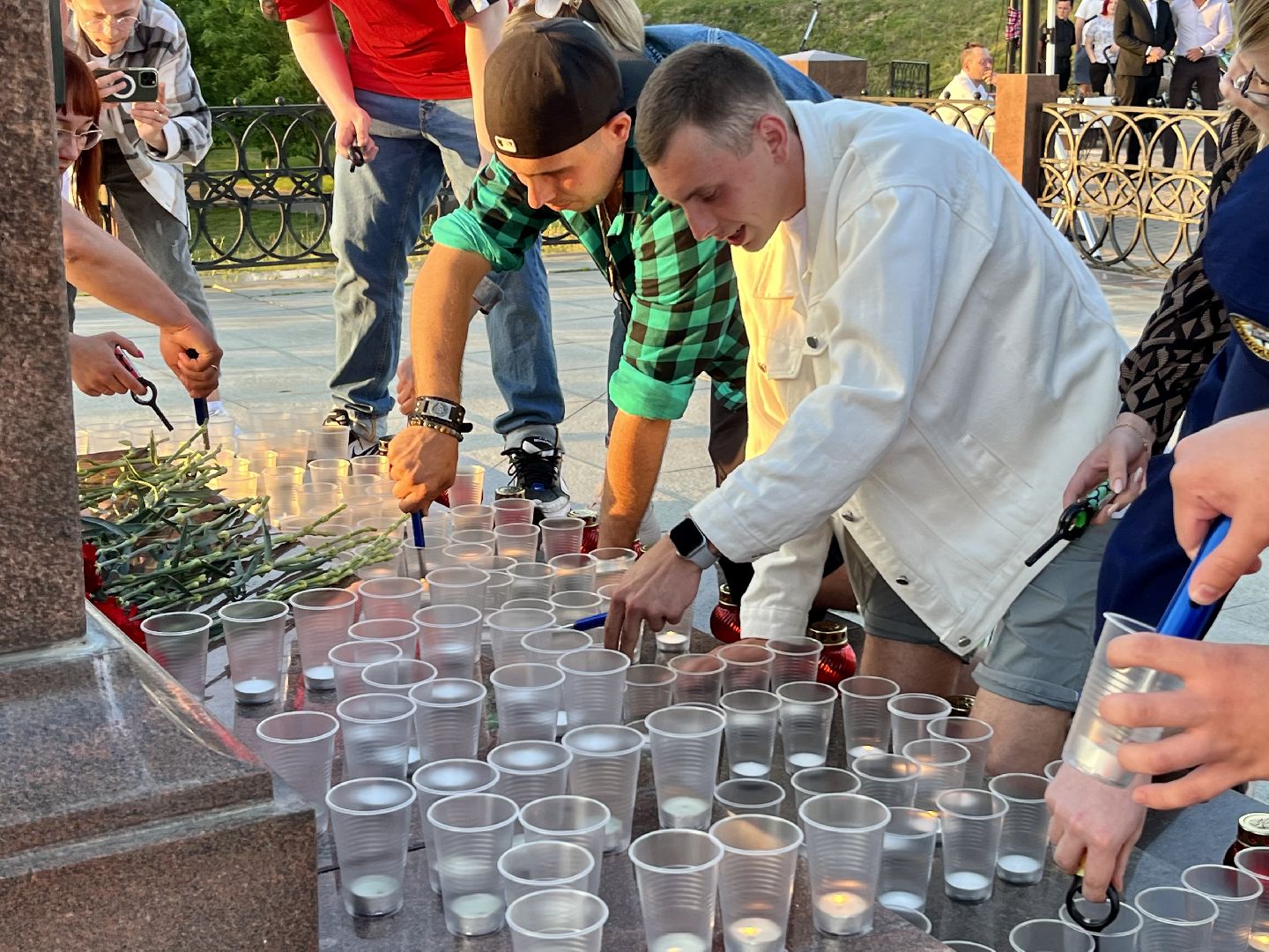 После минуты молчания все участники акции зажгли свечи- и «огненная» надпись «Мы помним!» ещё долгое время напоминала горожанам о том, что наступил самый страшный день года. День, когда началась война.