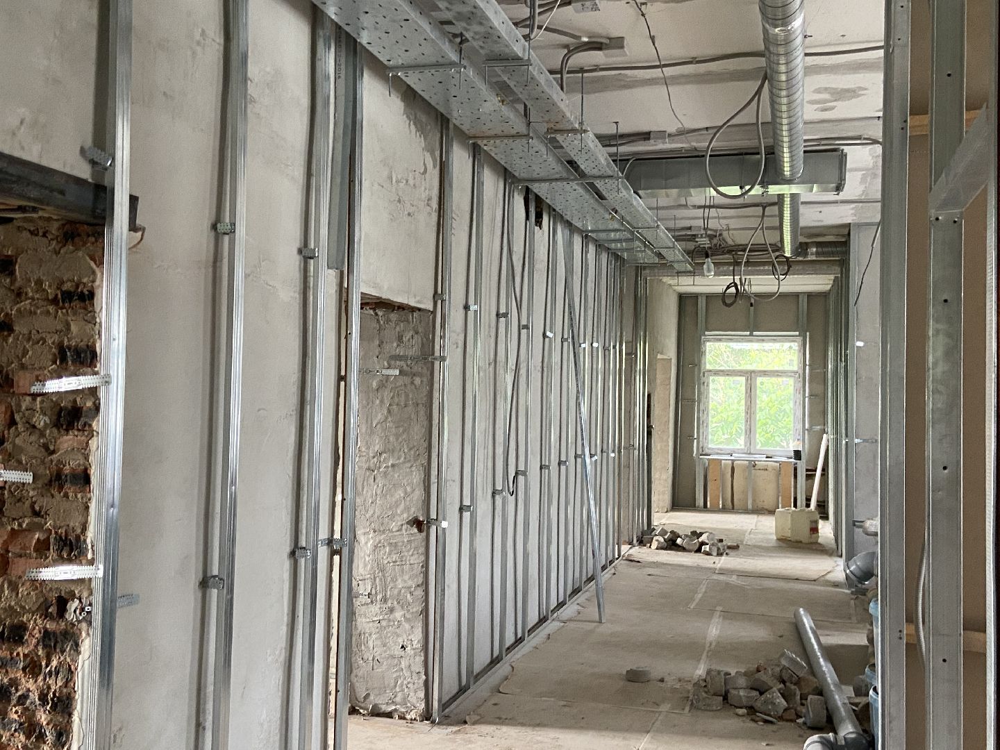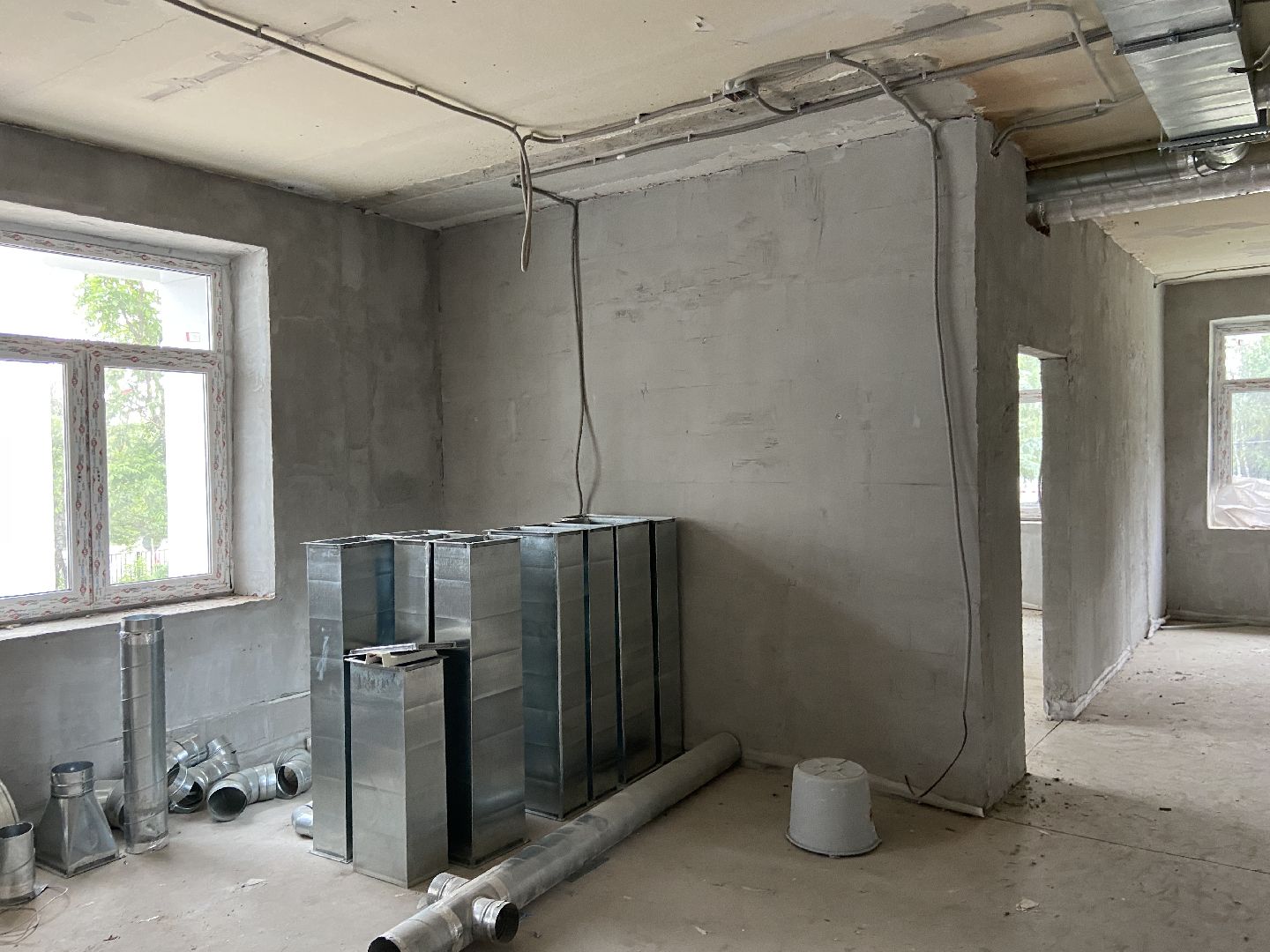 На 5 июля здание поликлиники с улицы уже выглядит обновленным: на данный момент окончены кровельные работы, за малым осталось завершить фасадные, осуществлен монтаж оконных блоков. Внутри здания подходит к концу прокладка кабельных линий, трубопроводов и канализации, воздуховодов системы вентиляции. По словам заместителя главного врача по АХЧ Истринской областной клинической больницы Дмитрия Цилиха, самые трудоемкие процессы преимущественно завершены – отделочные, как правило, идут намного быстрее.