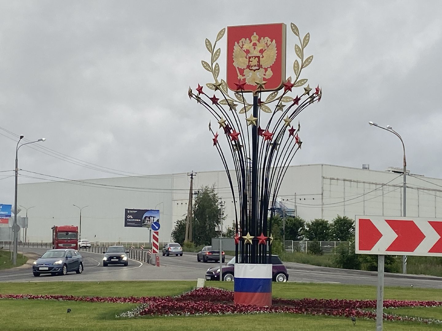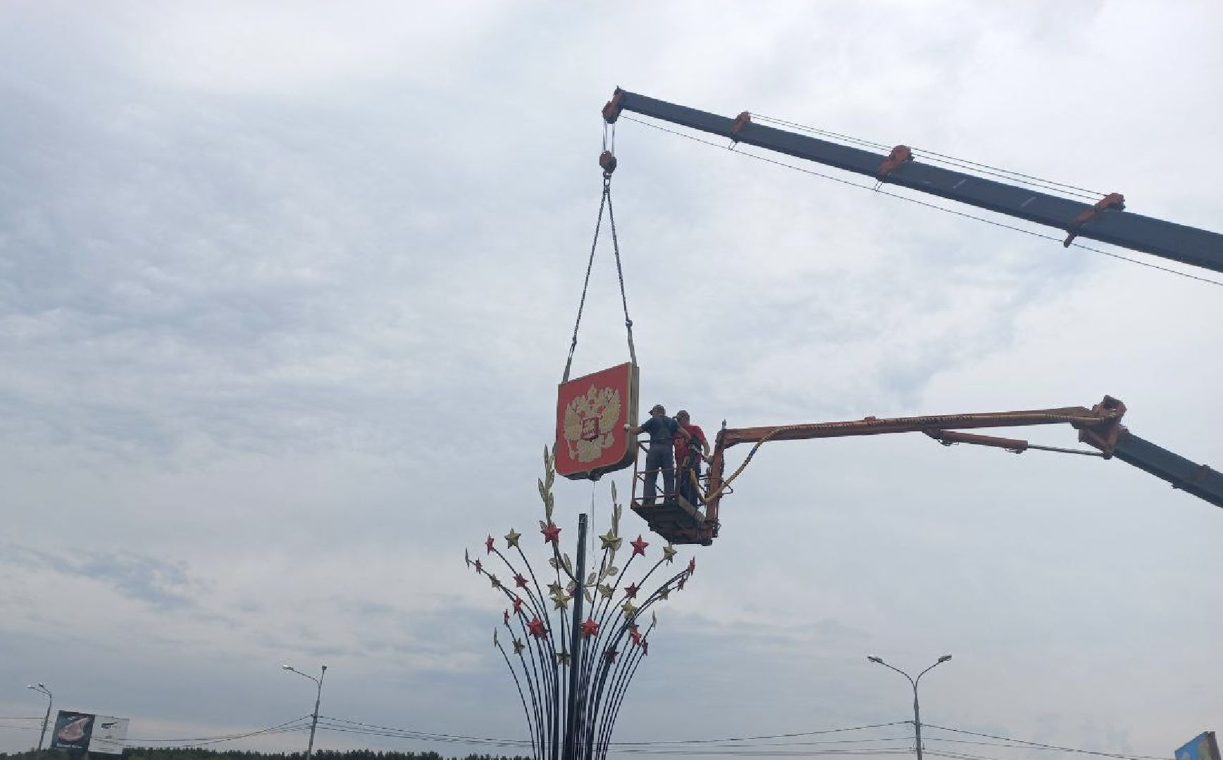О многофункциональности стелы рассказал начальник участка по г.Истра МБУ «ДОДХИБИМР» Ростислав Мельников: «На День Победы стела украшается георгиевской лентой и звездой. На День России производится замена некоторых элементов: баннер с лентой уступает место триколору, верхняя часть меняется на гербовую тематику. Щиты с гербами установлены таким образом, что при въезде из области мы видим герб округа, а при выезде в сторону Москвы – Георгия Победоносца на фоне двуглавого орла».