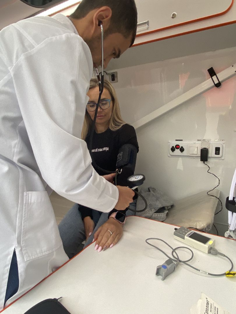 В рамках «Часа здоровья» Истринской больницы прямо в парке все желающие смогли пройти первичное обследование в мобильном фельдшерско-акушерском пункте: например, измерить артериальное давление и узнать уровень сахара в крови.