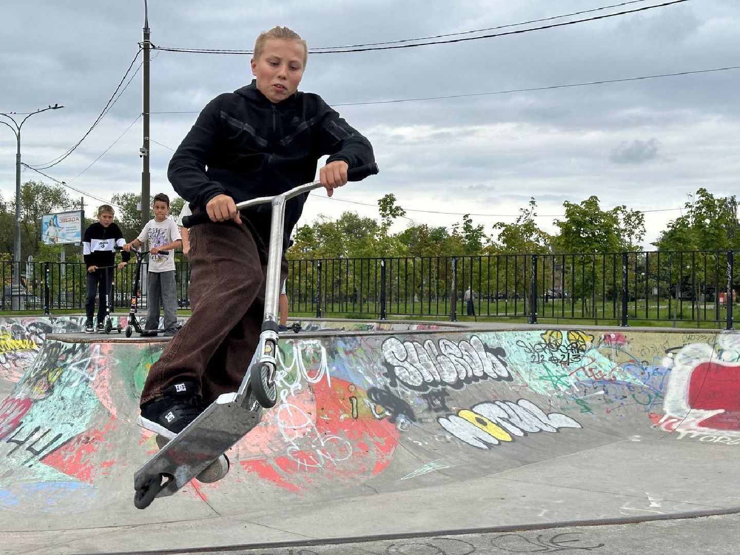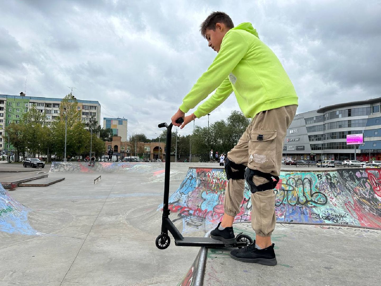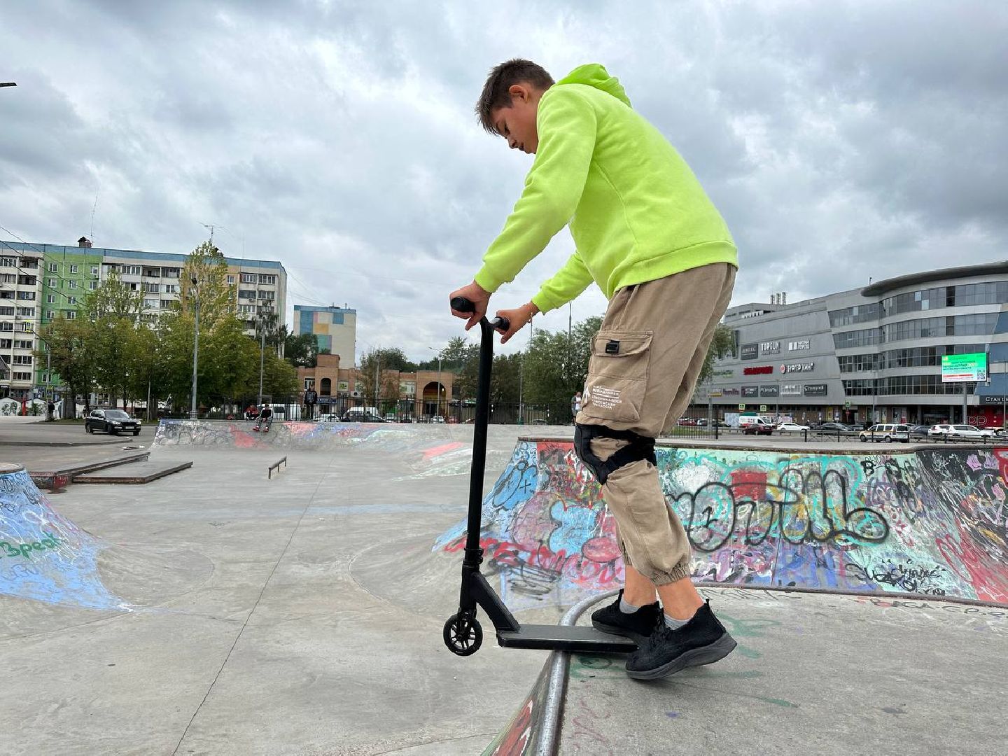 Покататься на площадке у городского парка Радомир Крупин приходит каждый день. Мастерство оттачивает на трюковом самокате. Горки и подъёмы освоил быстро. Элементы подсматривает у других ребят или находит в интернете.