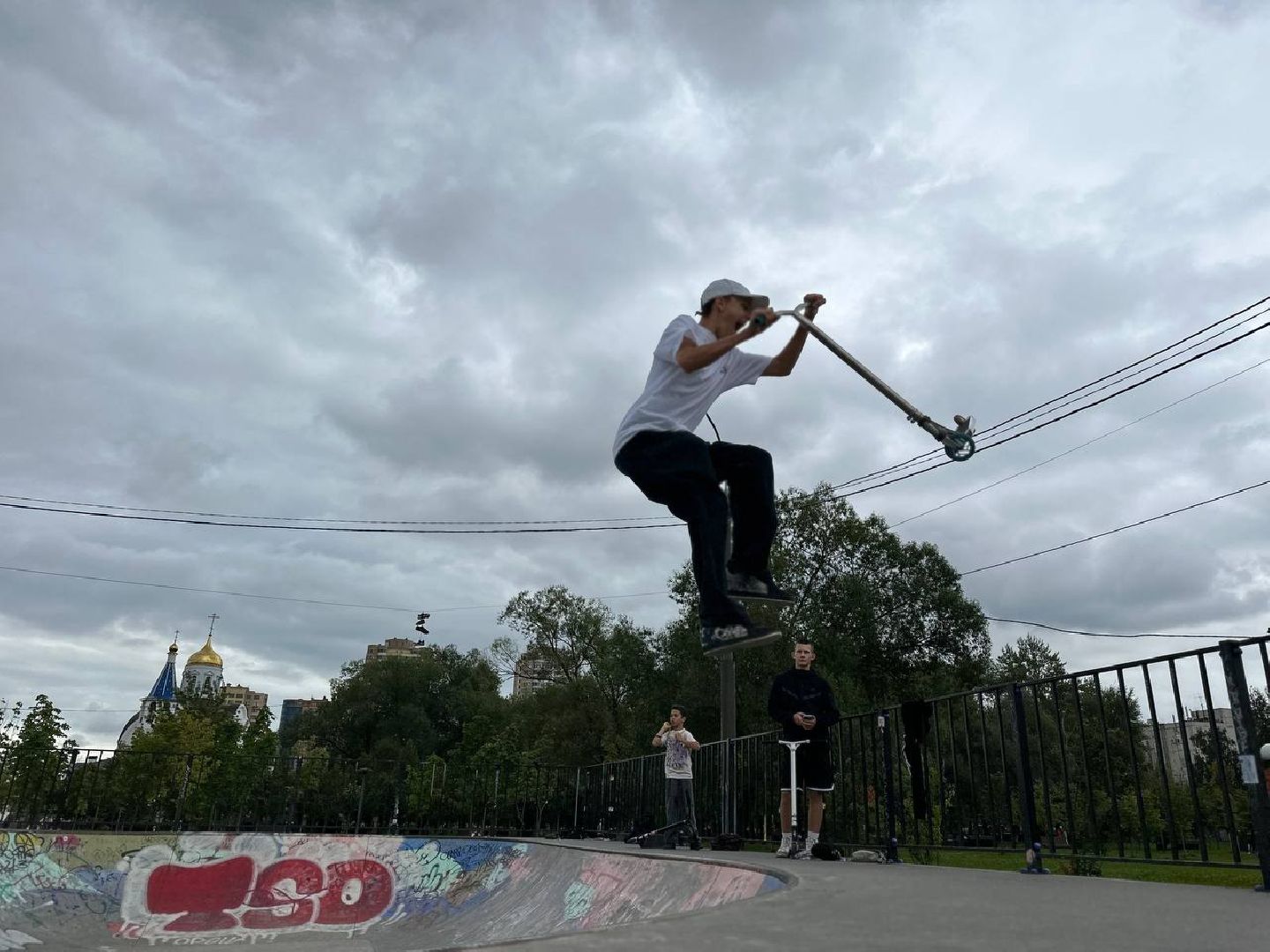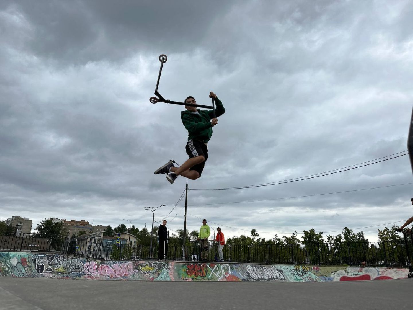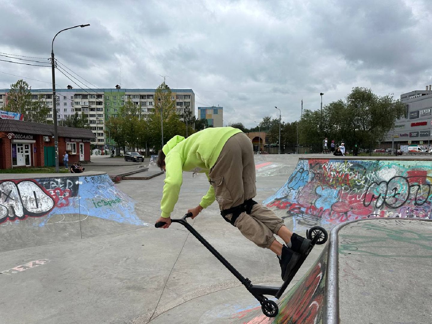 Покататься на площадке у городского парка Радомир Крупин приходит каждый день. Мастерство оттачивает на трюковом самокате. Горки и подъёмы освоил быстро. Элементы подсматривает у других ребят или находит в интернете.