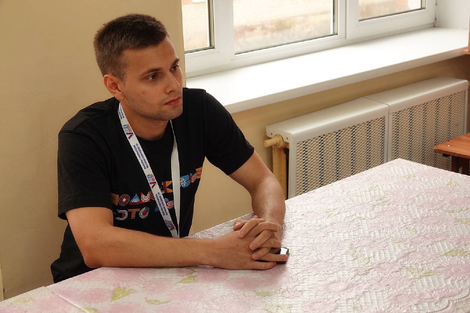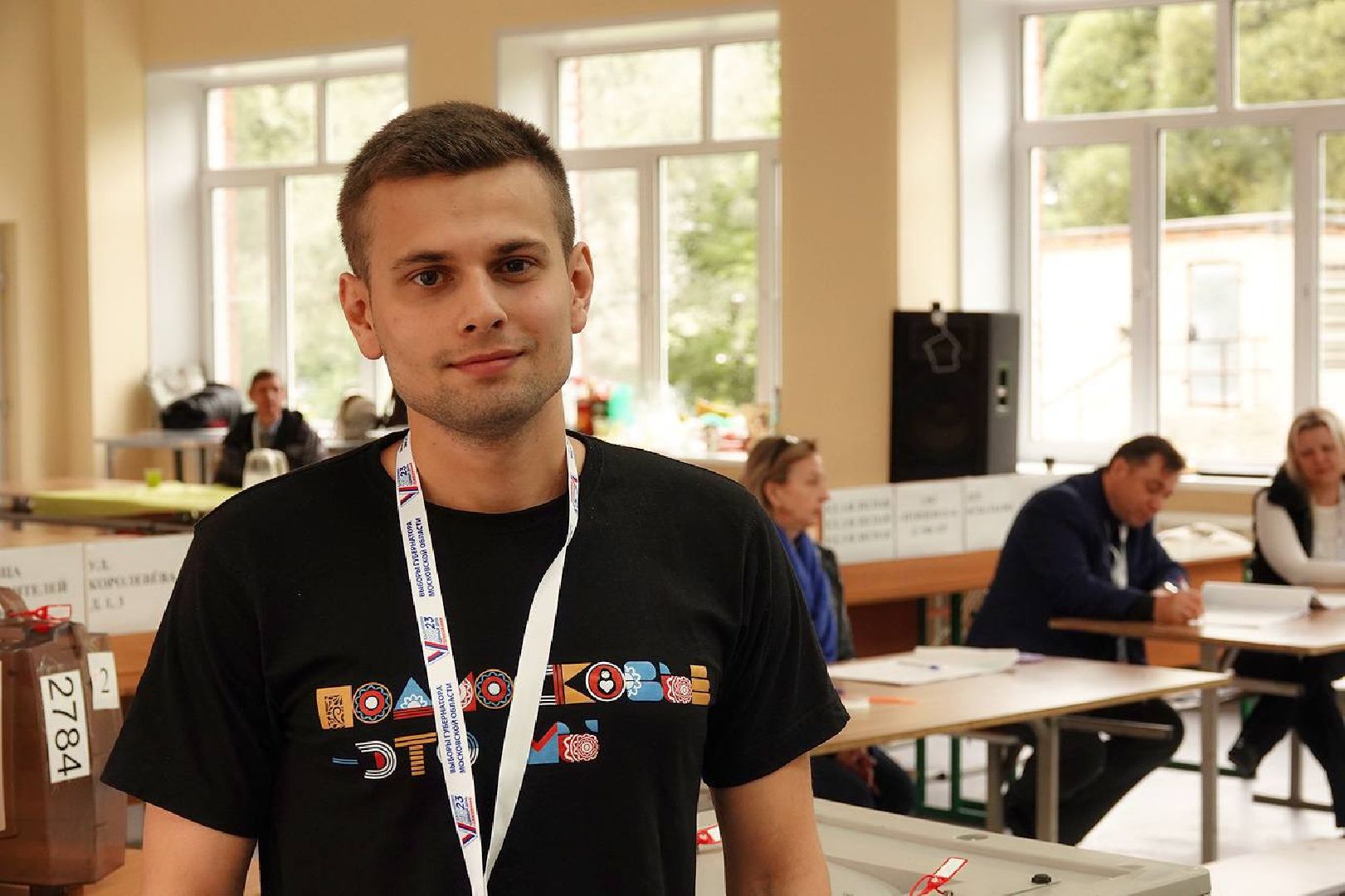 Он следит за ходом голосования на избирательном участке, расположенном в школе №8 города Пересвета. До начала выборов молодой человек прошёл обучение в рамках проекта «Корпус молодых наблюдателей».