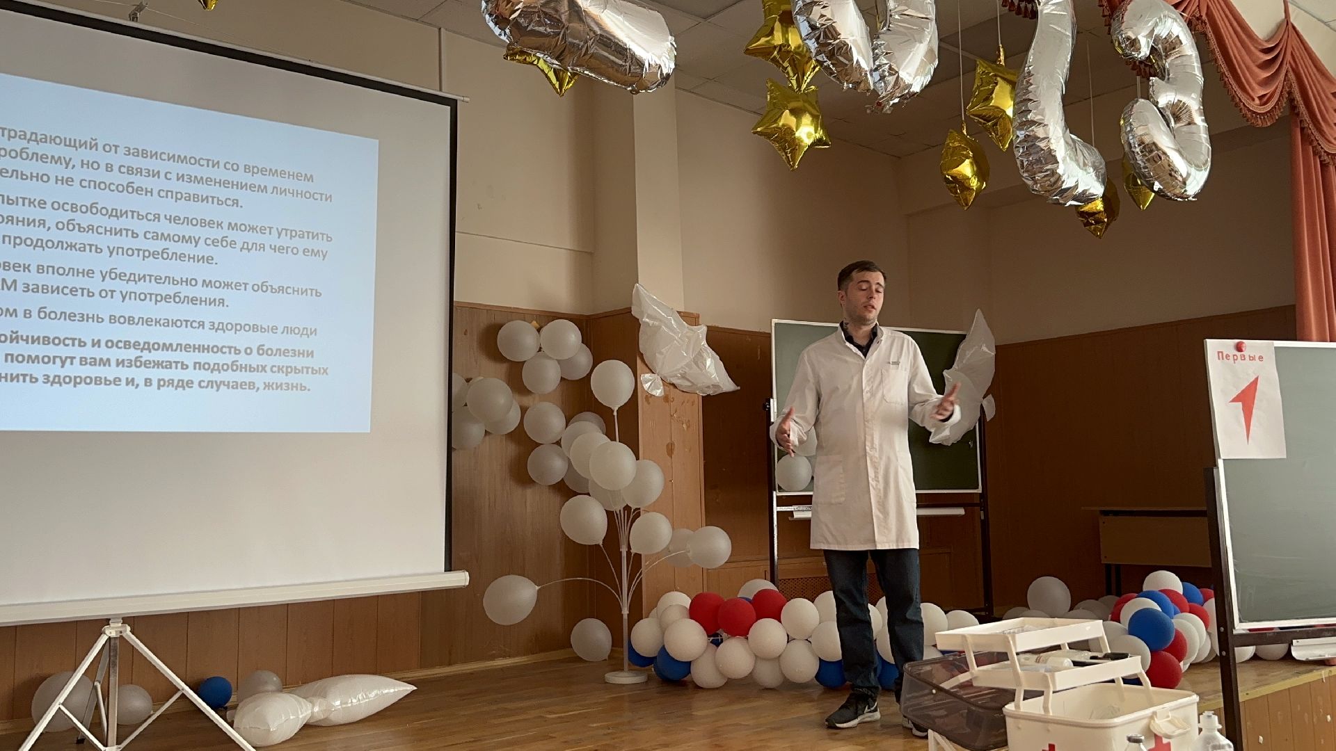 Педиатр Сергей Жилин подробно рассказал старшеклассникам о вреде и зависимости от психоактивных веществ. Речь шла не только о табакокурении и алкоголе, но и об энергетических напитках, а также о серьёзных наркотических веществах.