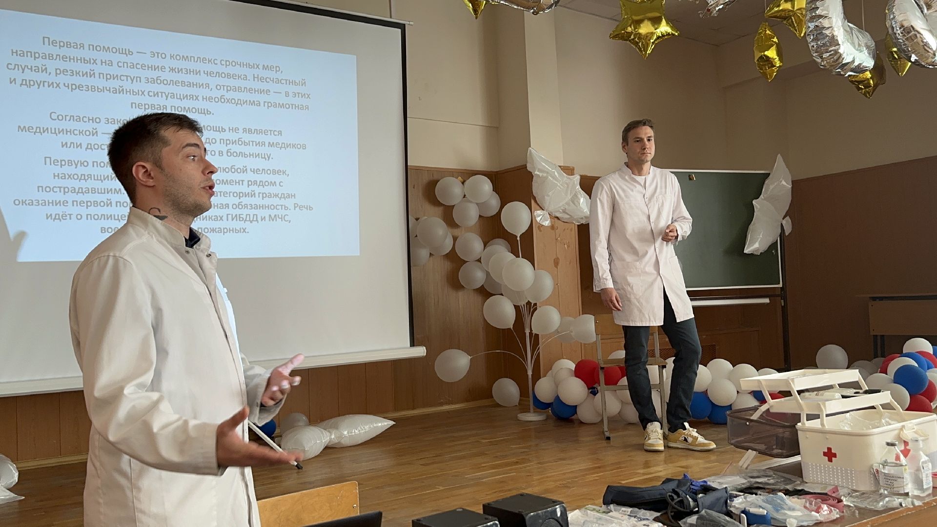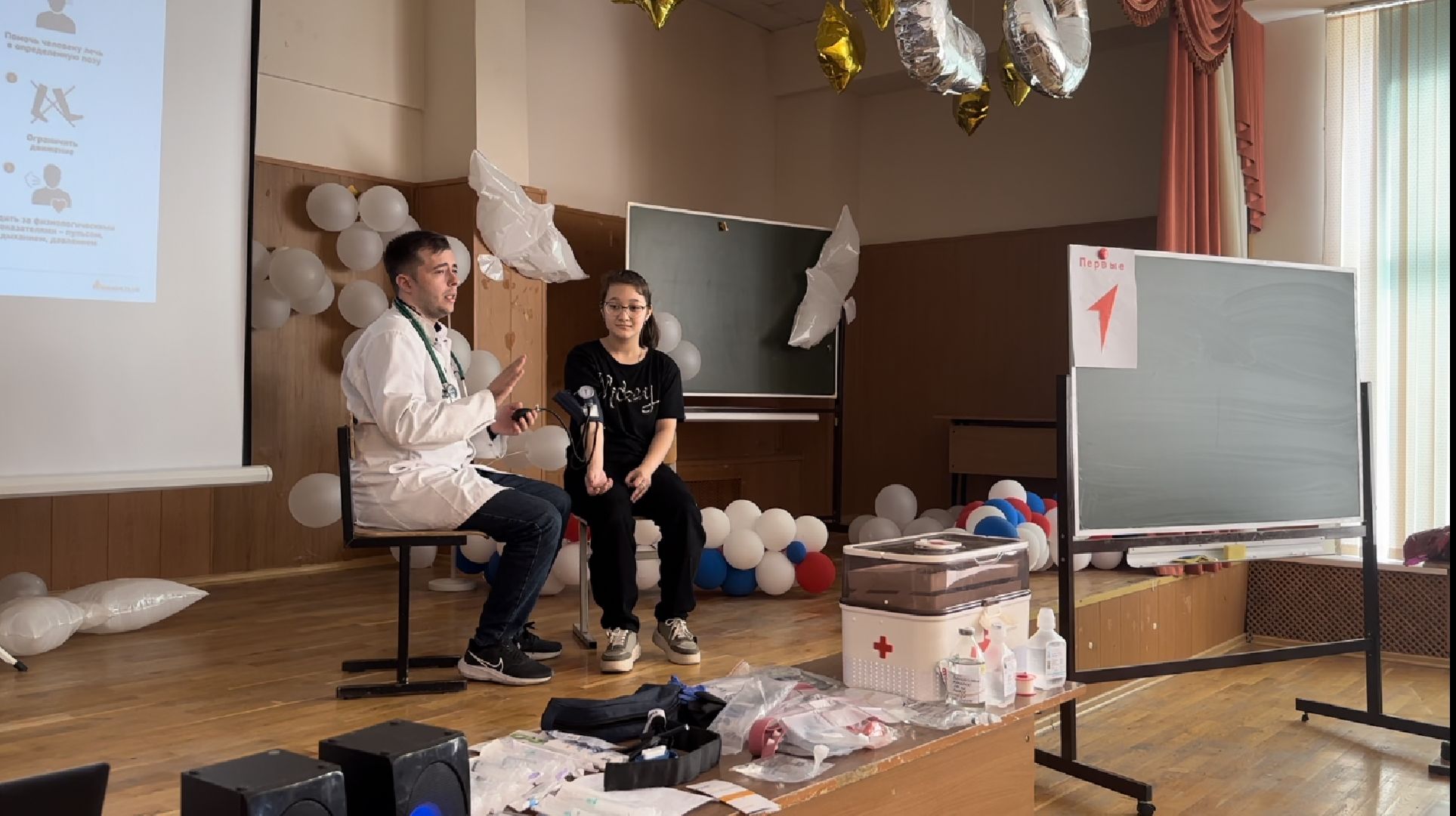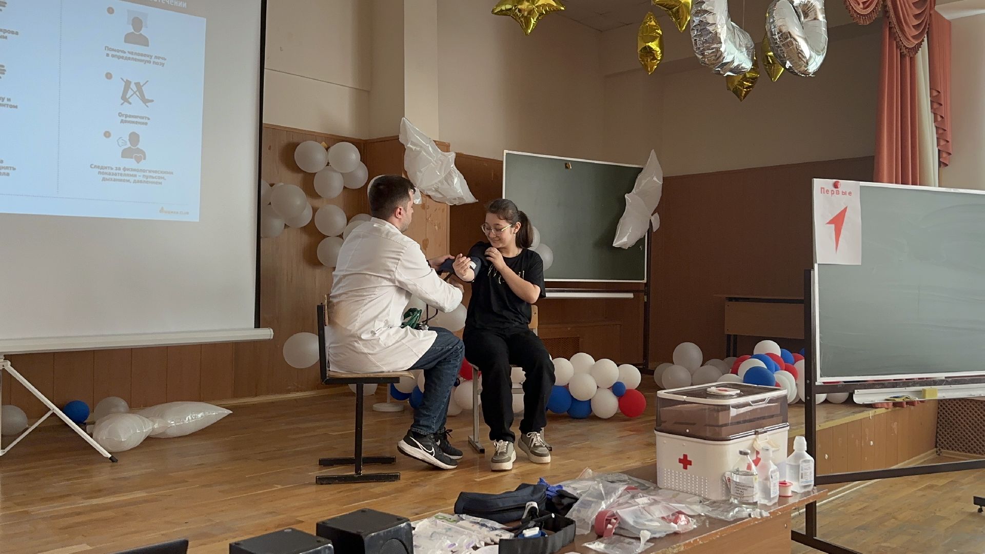 Во время своего выступления перед школьниками доктор рассказал, как вести себя в различных критических ситуациях и при необходимости помочь ближнему. Кроме того, он уделил время практическим навыкам. Ребята учились измерять артериальное давление и отрабатывали действия при оказании первой помощи пострадавшему.