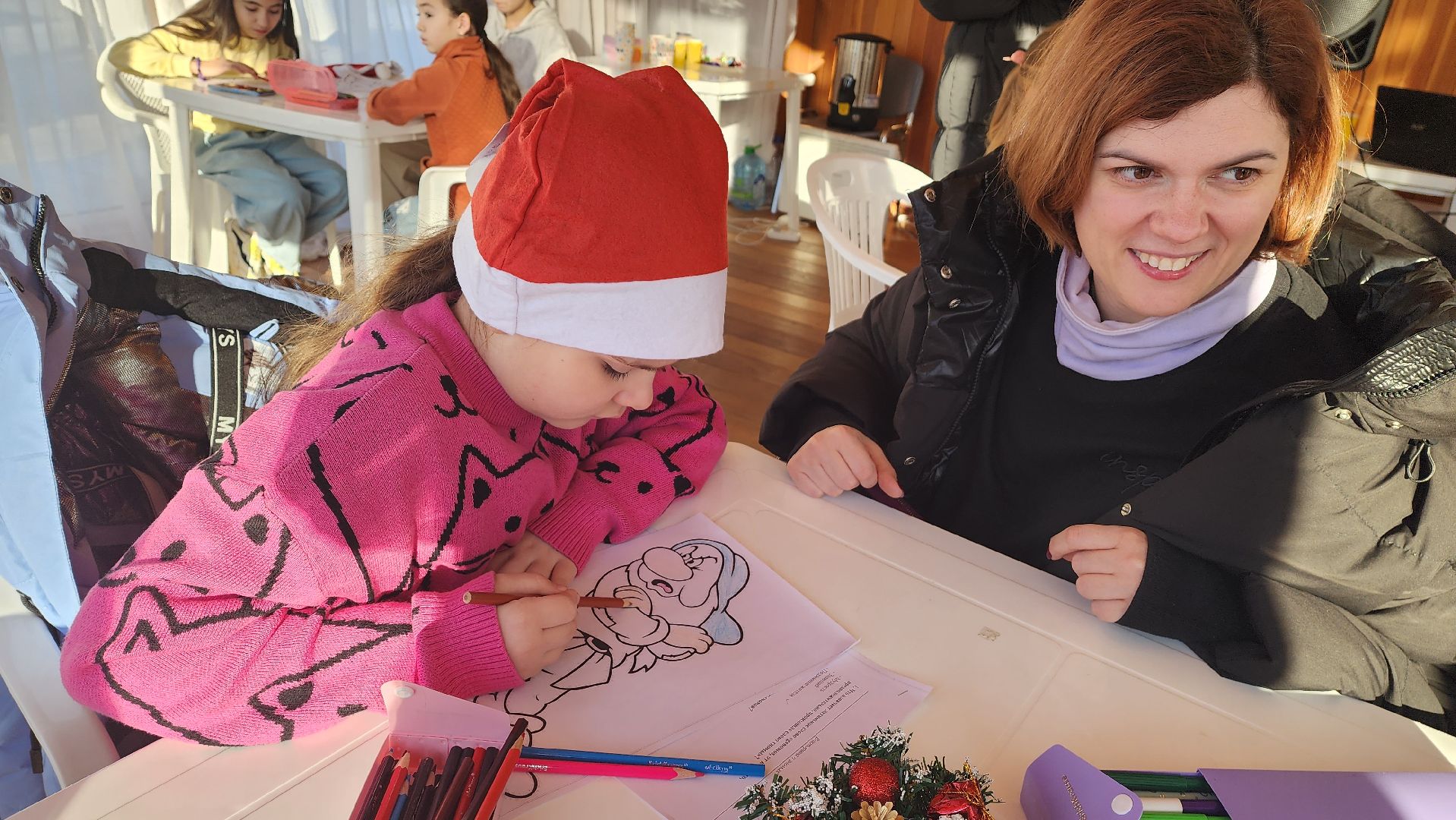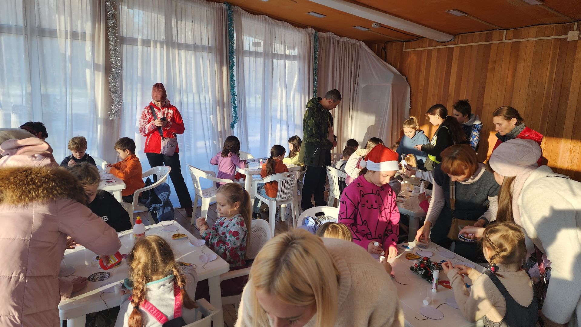 Дети с удовольствием участвовали во всех активностях, успевая обсудить самое главное – подарки от Деда Мороза.