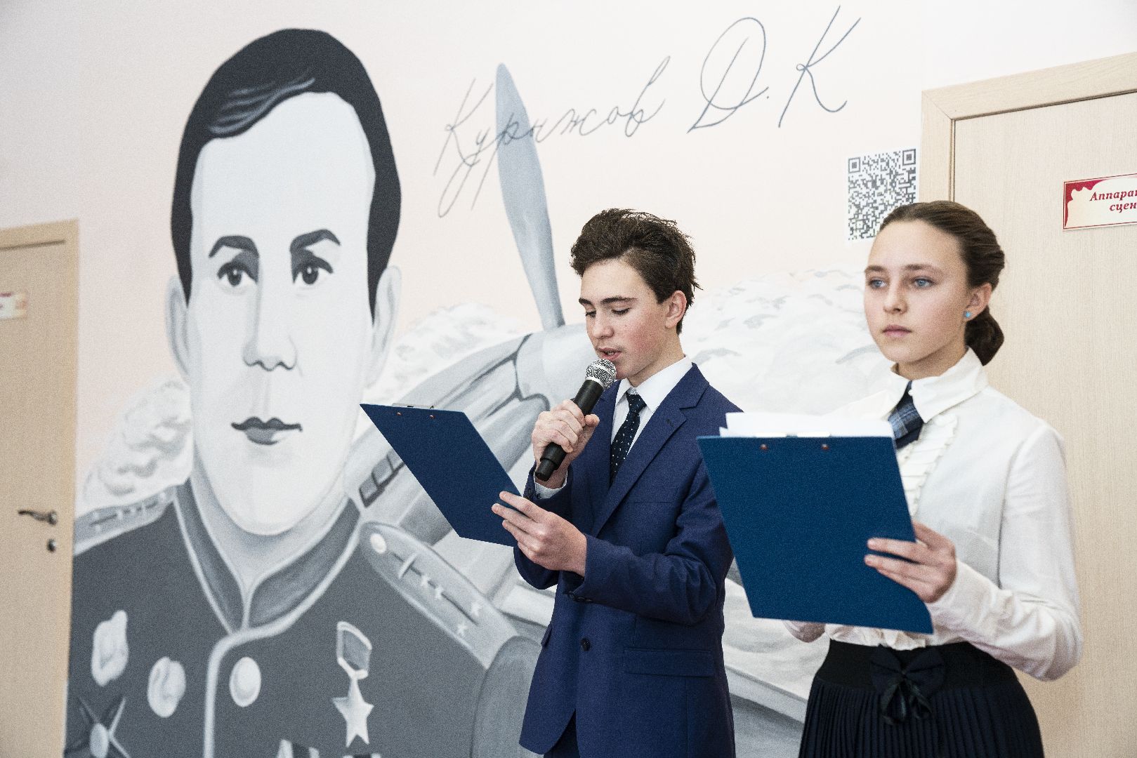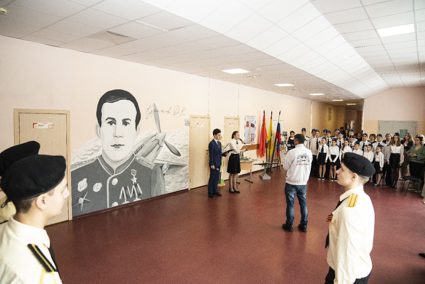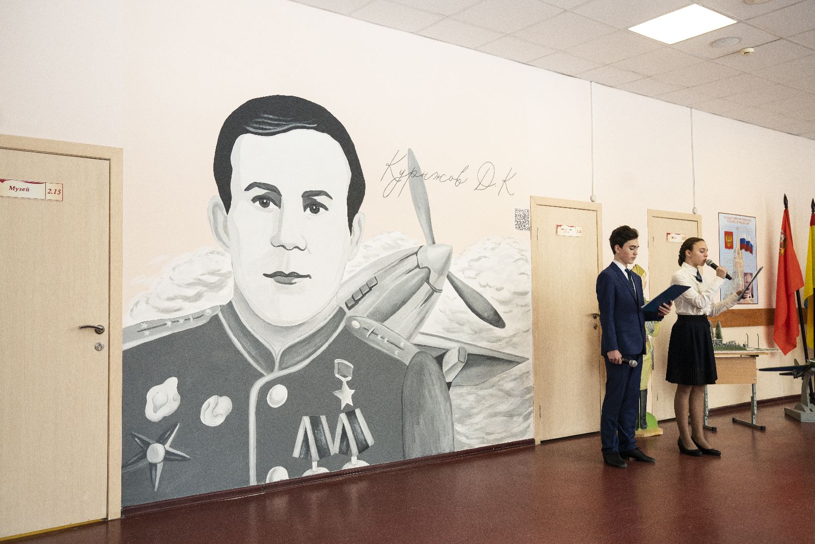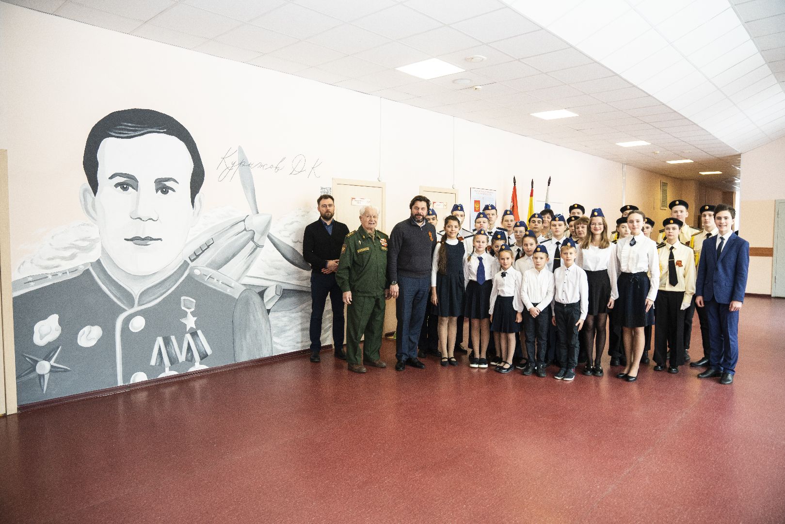 В домодедовской школе во всю стену нарисовали портрет Героя Советского Союза Давыда Курыжова