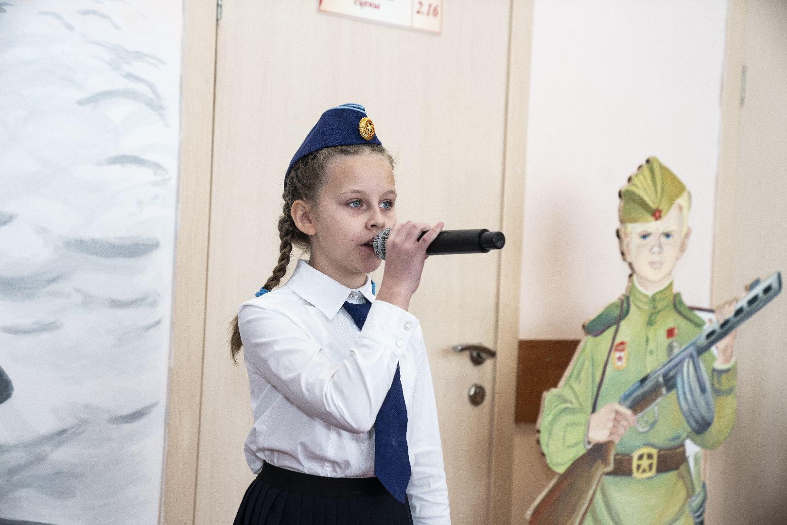 Школьники вместе с учителем Людмилой Михайловской долго выбирали образ героя. Решили изобразить его молодым, таким, каким он был в годы Великой Отечественной войны.
