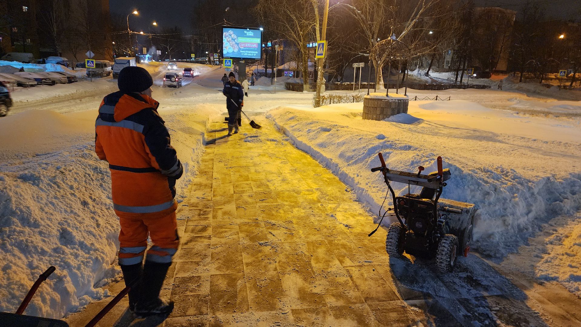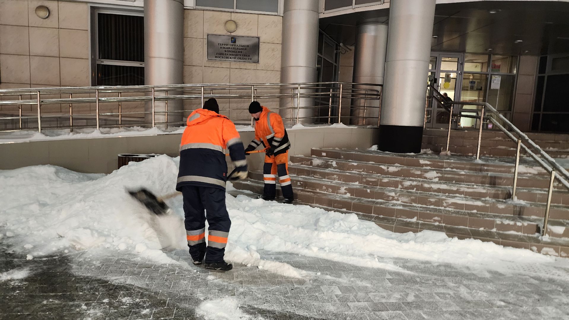 Крещенская ночь ознаменовалась мощным снегопадом. По подсчётам синоптиков, в некоторых уголках Подмосковья метель принесла с собой до 20 сантиметров снега, что соответствует четверти нормы месячных осадков. Сотрудники коммунальных служб Ивантеевки с 5 утра приступили к работе. .