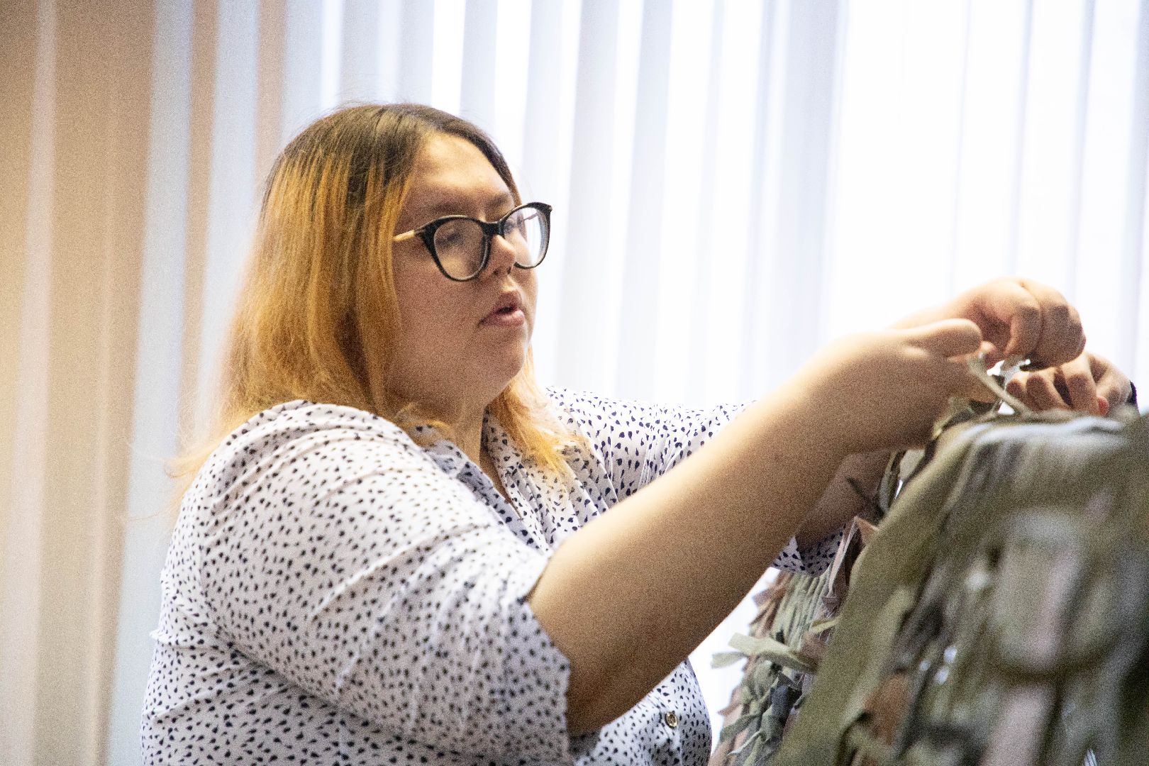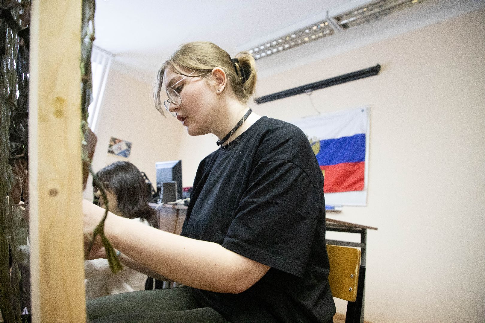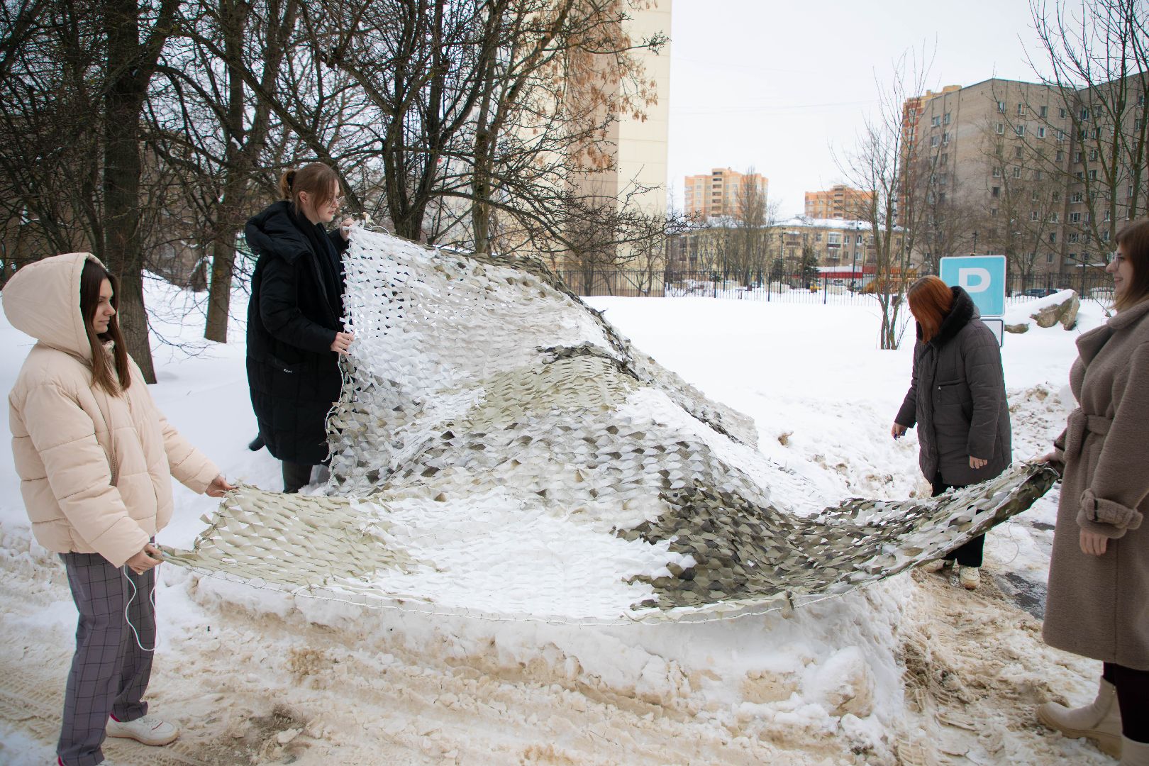 Вместе с изготовлением деталей на 3D-принтере студенты плетут маскировочные сети. Занимаются этой работой студентки 4 курса отделения дизайна. Девушки начали заниматься плетением с ноября прошлого года, за это время удалось сплести и перадать на линию фронта 6 сетей.