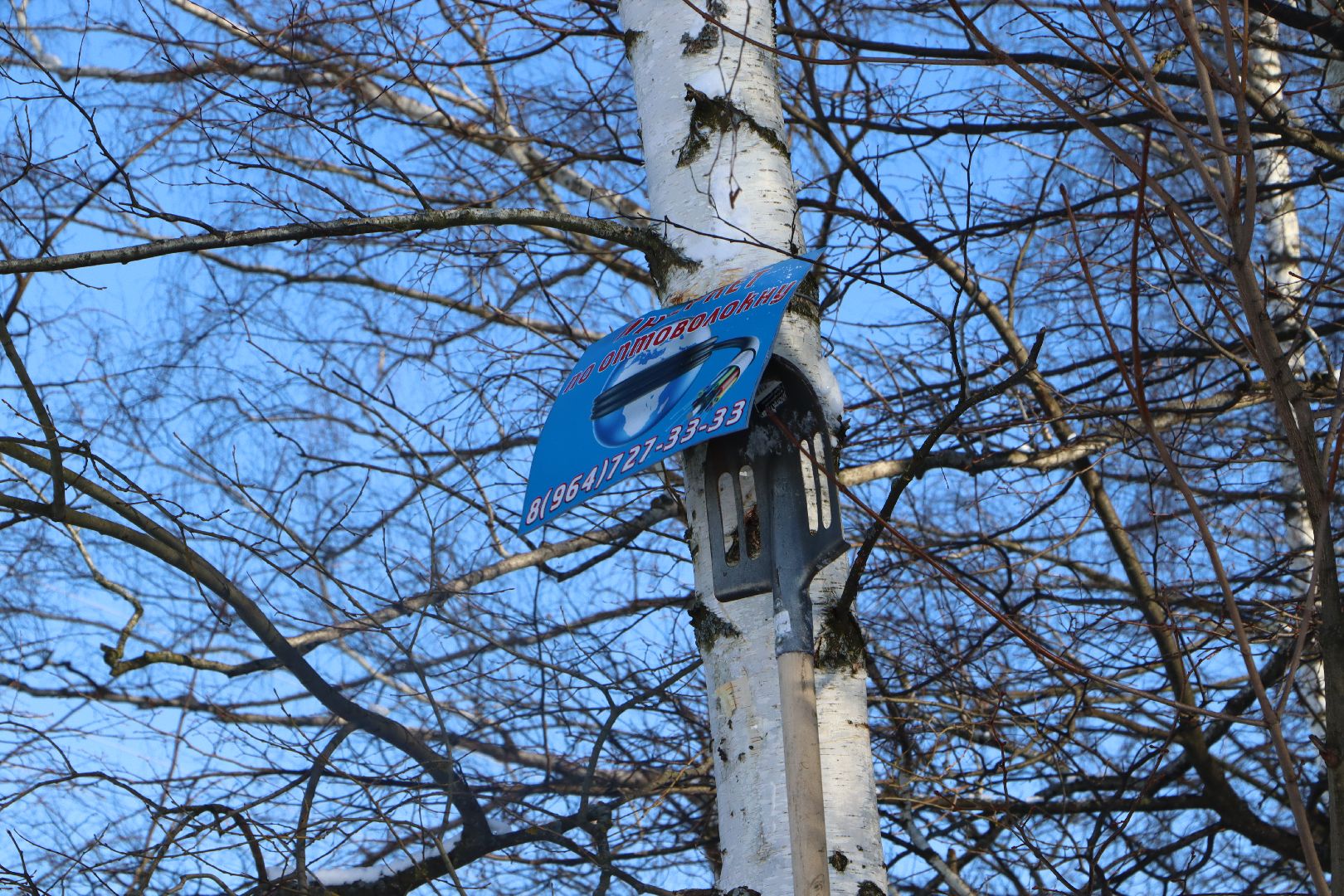 «Таблички с объявлениями крепят на стволы гвоздями, саморезами, проволокой, что приводит к повреждению древесины. Благодаря этому открывается доступ различным бактериям и спорам дереворазрушающих грибов», — отметил Александр Бычков.