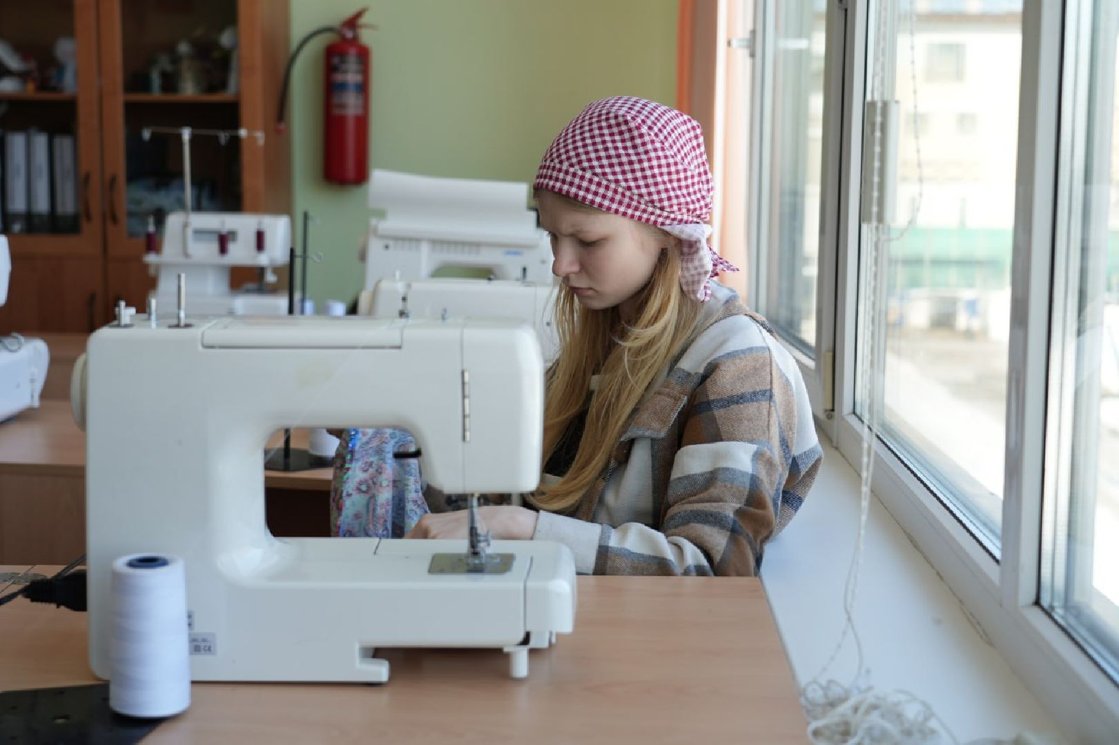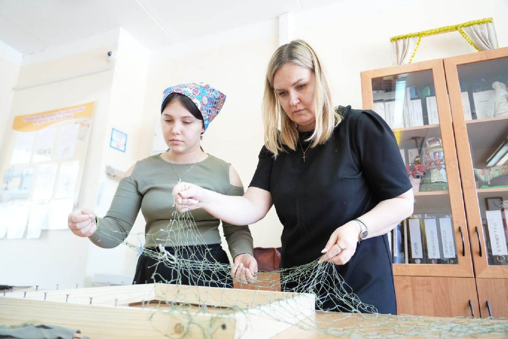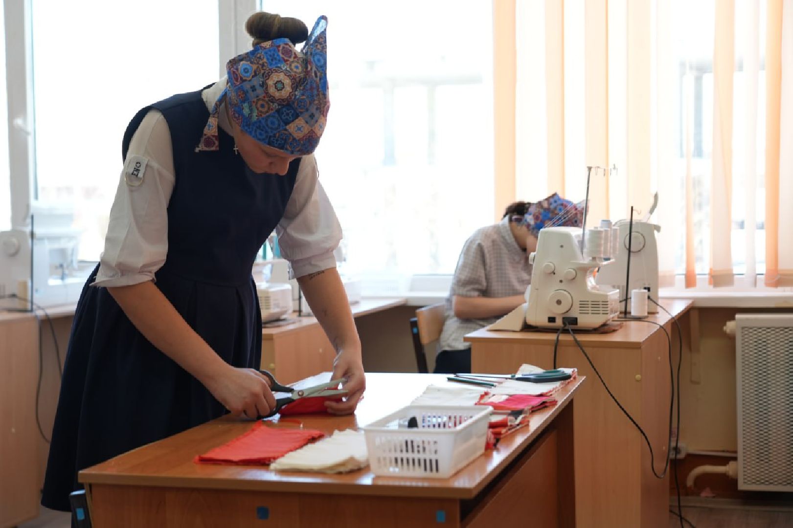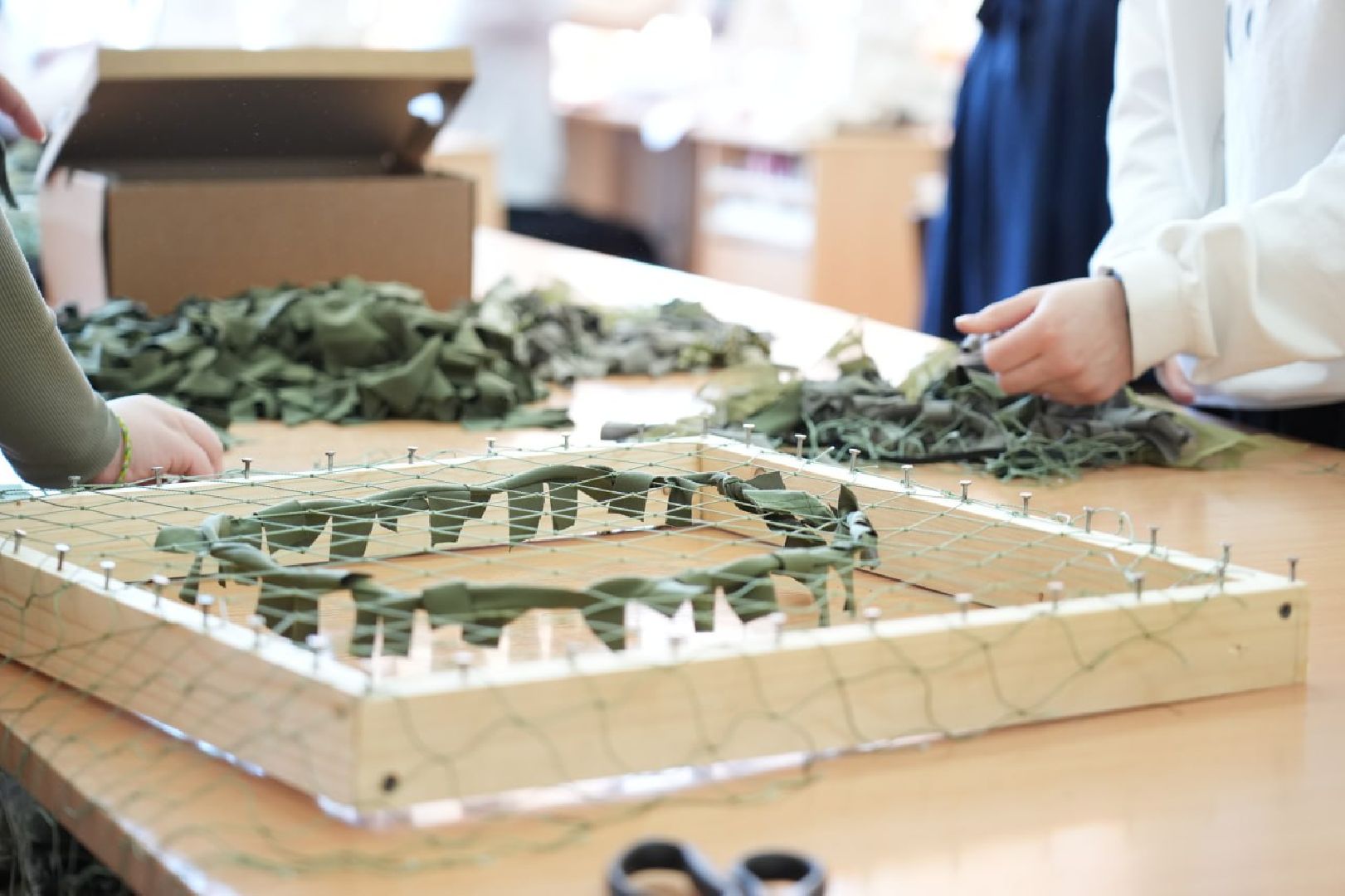 В соседнем кабинете Александра и её одноклассники шьют нашлемники для участников СВО. Работа несложная, но очень важная.