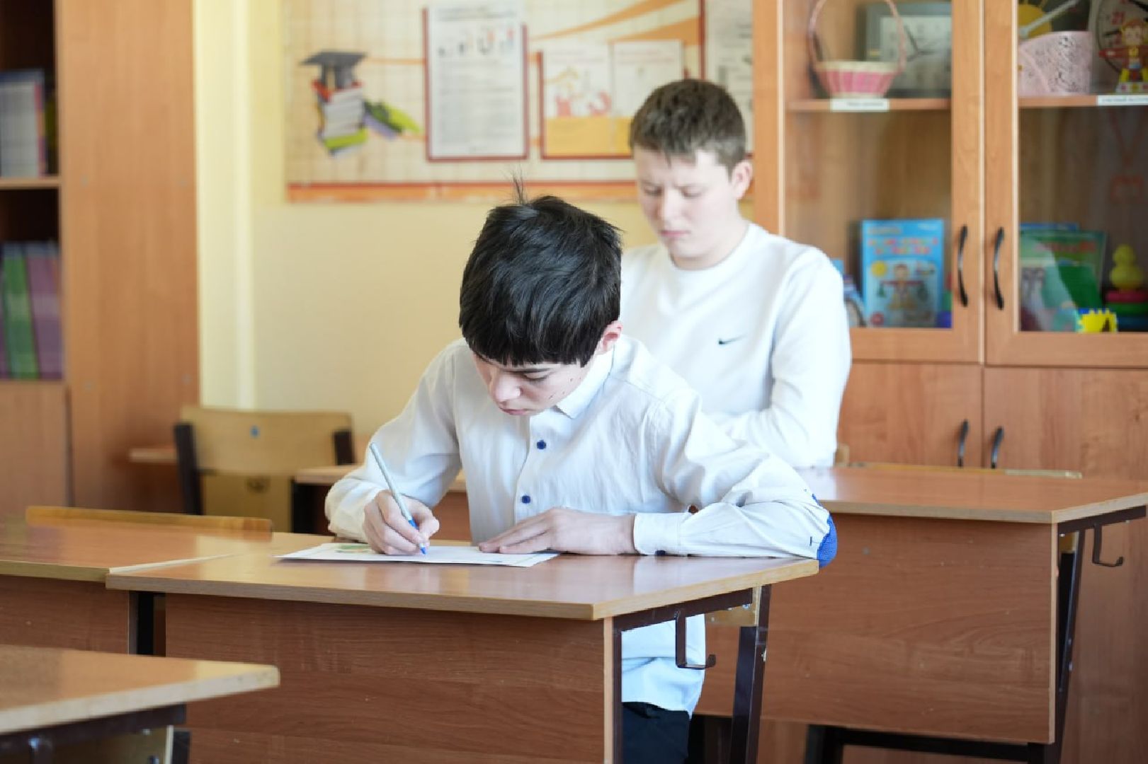 Здесь же ученики изготавливают повязки со знаками отличия для наших солдат и бельё для раненых, которые находятся в госпиталях. Эти вещи ученики седьмой школы шьют с начала специальной военной операции. Помогают, чем могут. А детские письма на фронт, тёплые и трогательные, согревают сердца.