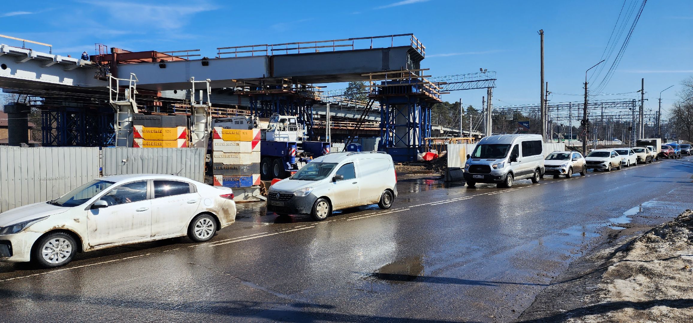 «Нашей организацией проведена очень большая и важная работа по монтажу ригеля шестой опоры над железной дорогой. Эти строительно-монтажные мероприятия выполнялись в ночное время, в «окно» между движением электропоездов по всем четырём путям. Нам удалось смонтировать тридцатиметровый ригель весом 163 тонны вместе с приёмной консолью. Сейчас мы занимаемся соединением этой конструкции с пролётным строением», — рассказал Николай Прасов, исполняющий обязанности директора филиала АО «ДиМ»-Мостоотряд-125.