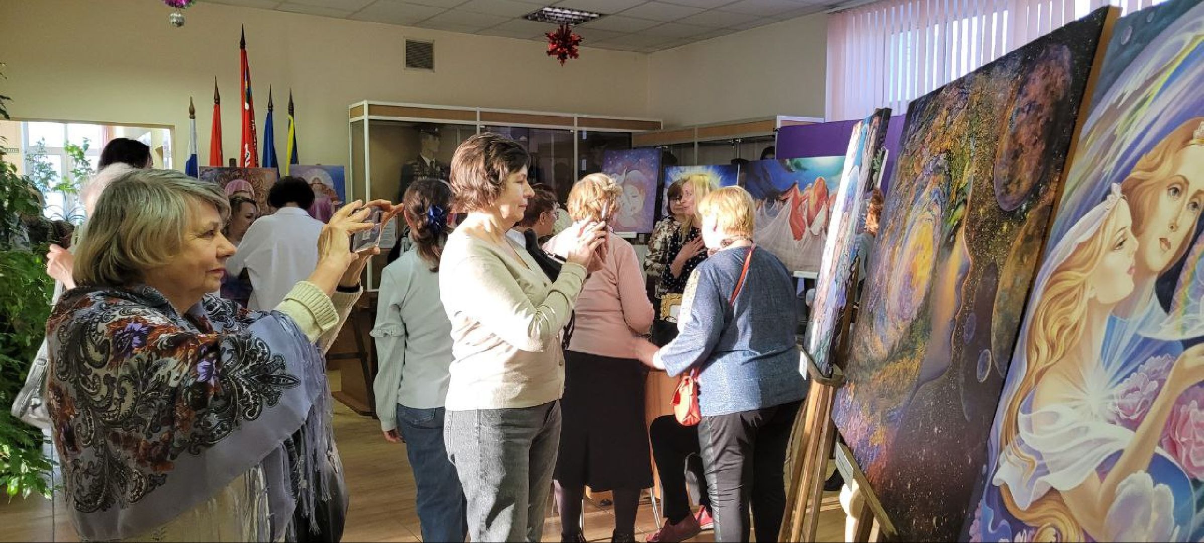 На вечере было что не только послушать, но и посмотреть: в Доме ветеранов представили часть экспозиции проекта – картины художников из разных стран мира, которые через свои полотна несут образы вечной женственности.