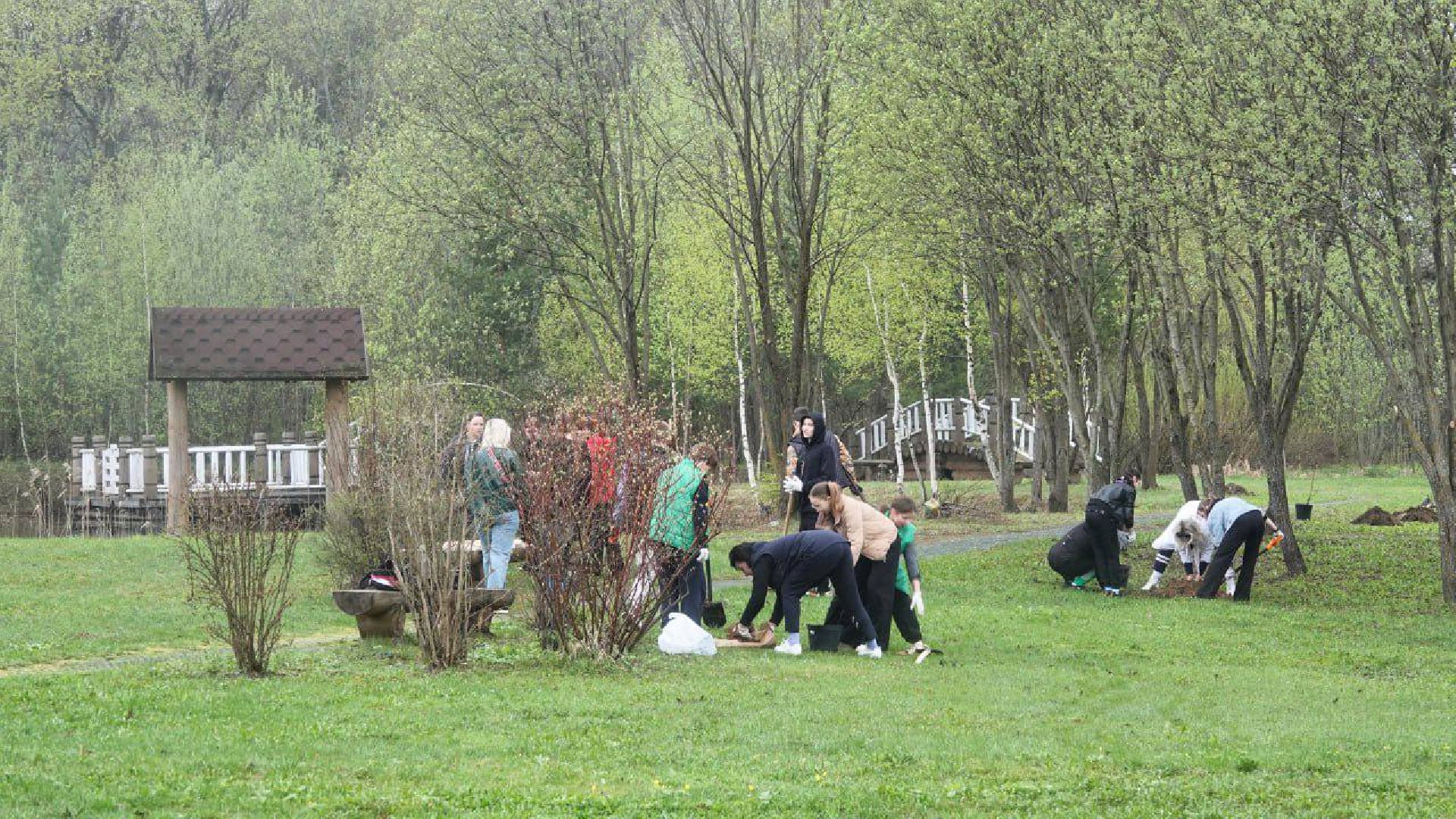 В озеленении парковой территории приняли участие учащиеся школы №14 и сотрудники Сергиево-Посадского драматического театра «Театральный ковчег в Дубраве».
