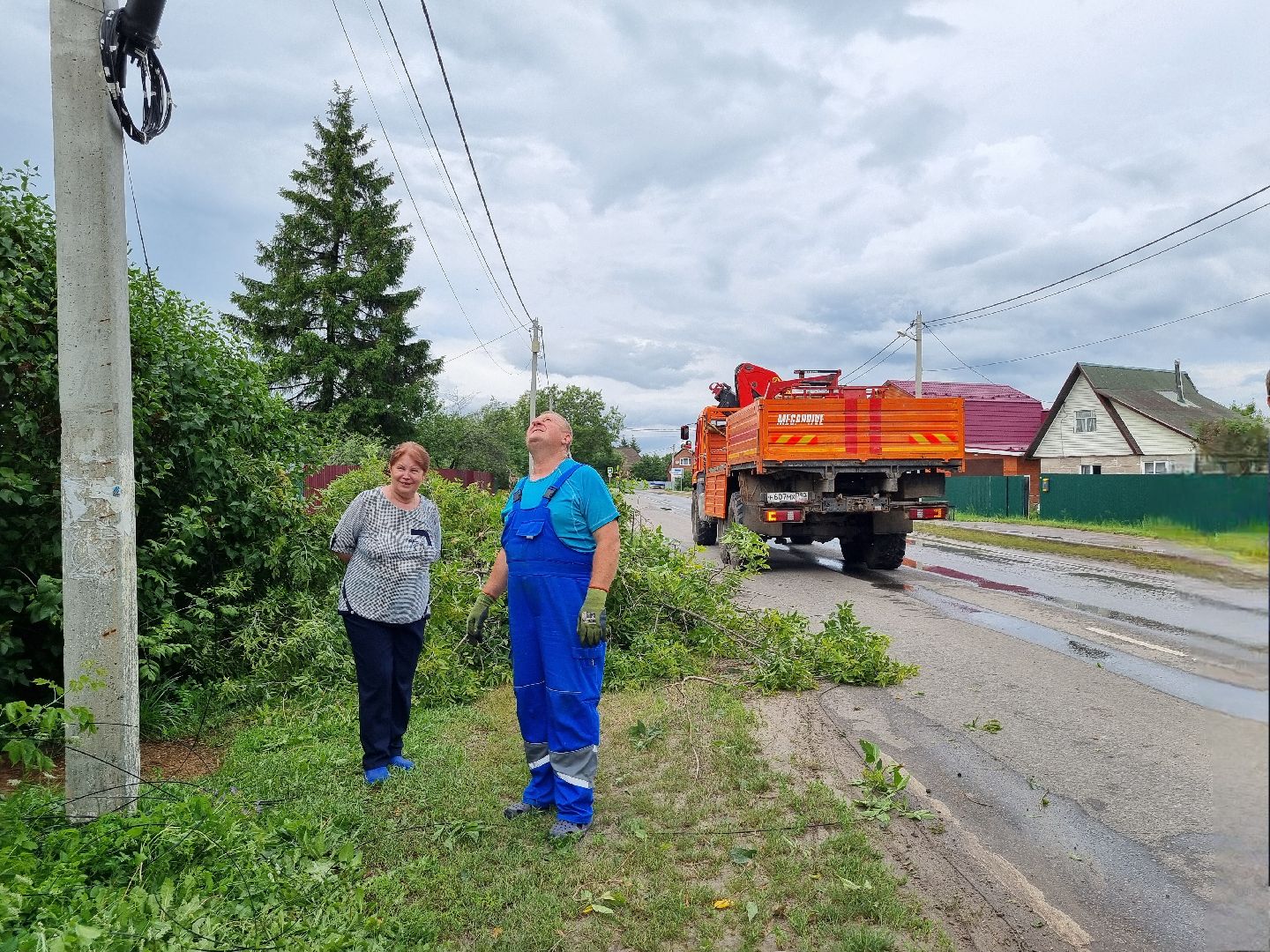 В ходе встречи жительница посёлка пожаловалась на то, что на проводах около её дома буквально лежит дерево, которое может оборвать провода в любой момент и оставить весь посёлок без электричества. Данный вопрос требовал незамедлительного решения. Администрация выполнила все работы максимально оперативно.