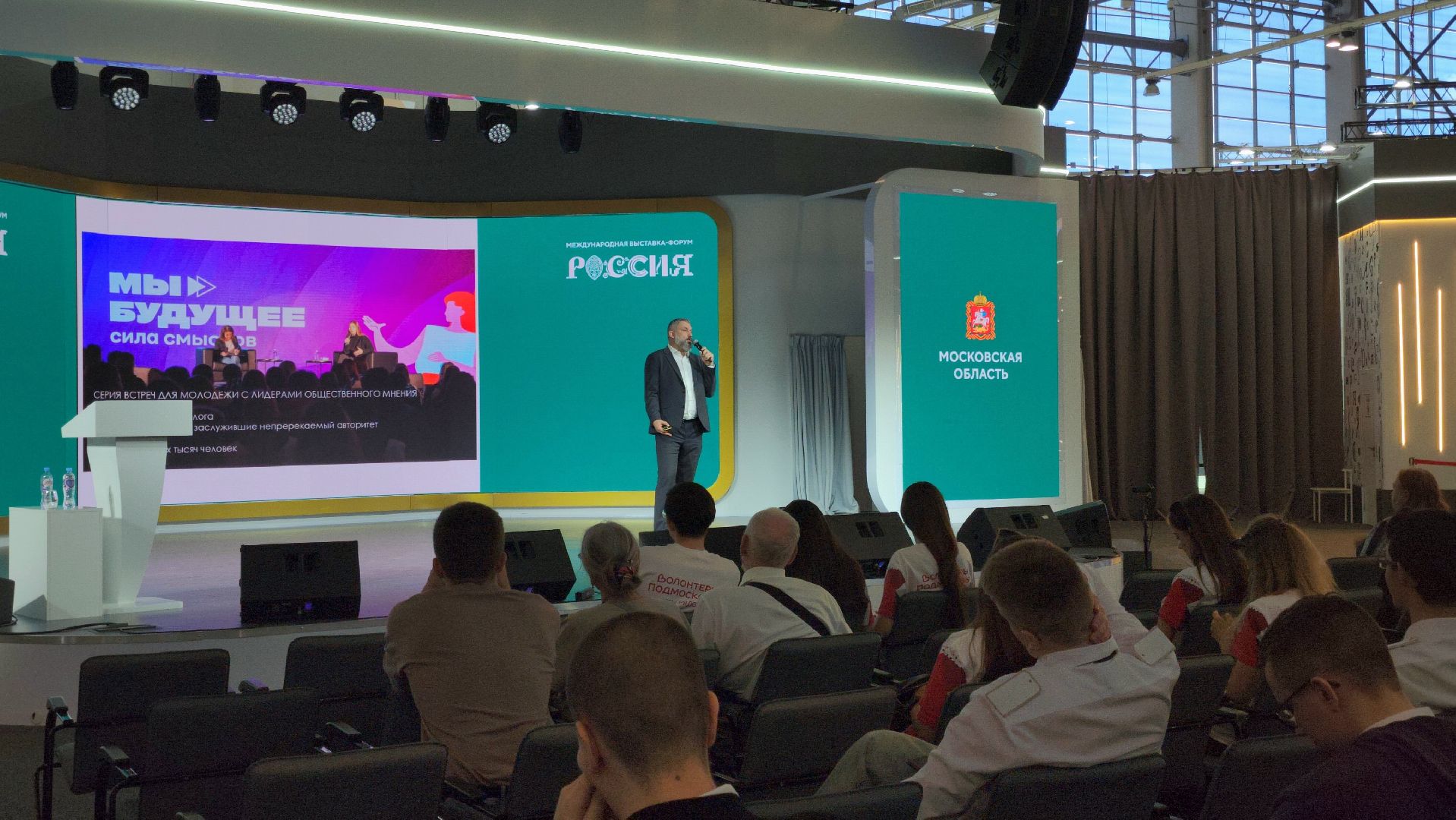 Свою презентацию проекта по работе с молодёжью представил советник министра информационных и социальных коммуникаций Московской области Евгений Кулаков.