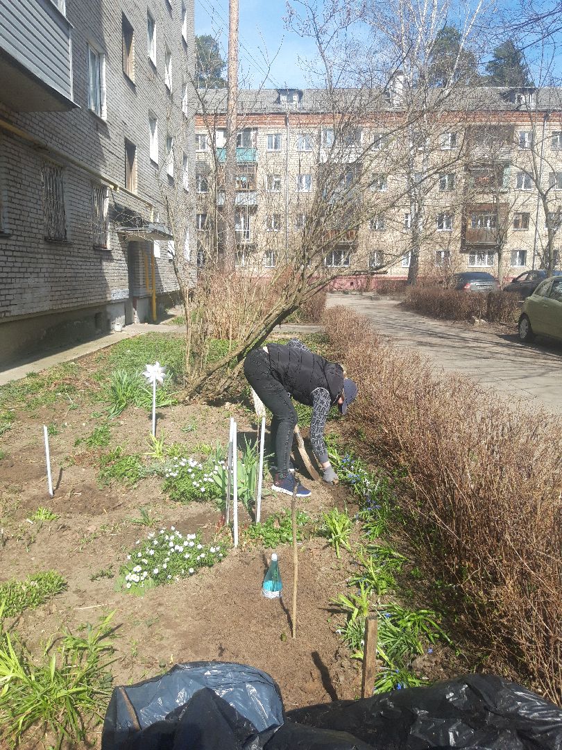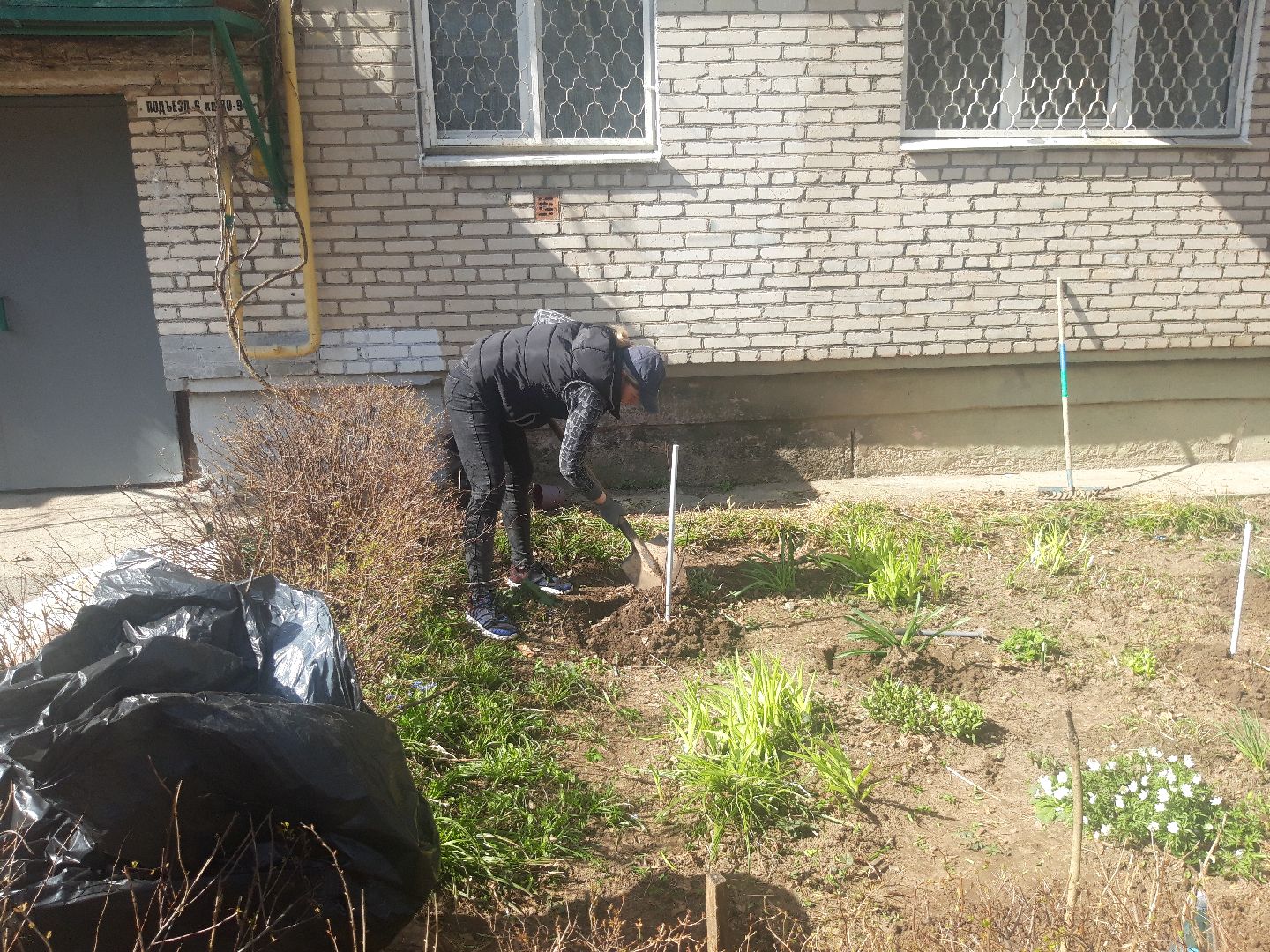 В Пушкино жители дома №5А по улице Маяковского приступили к уходу за газонами вдоль дома.