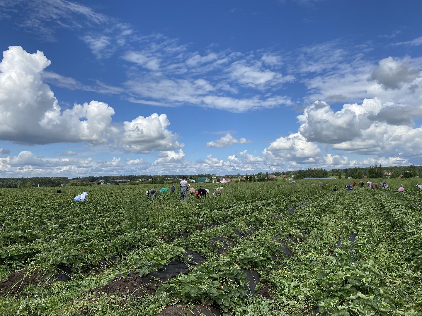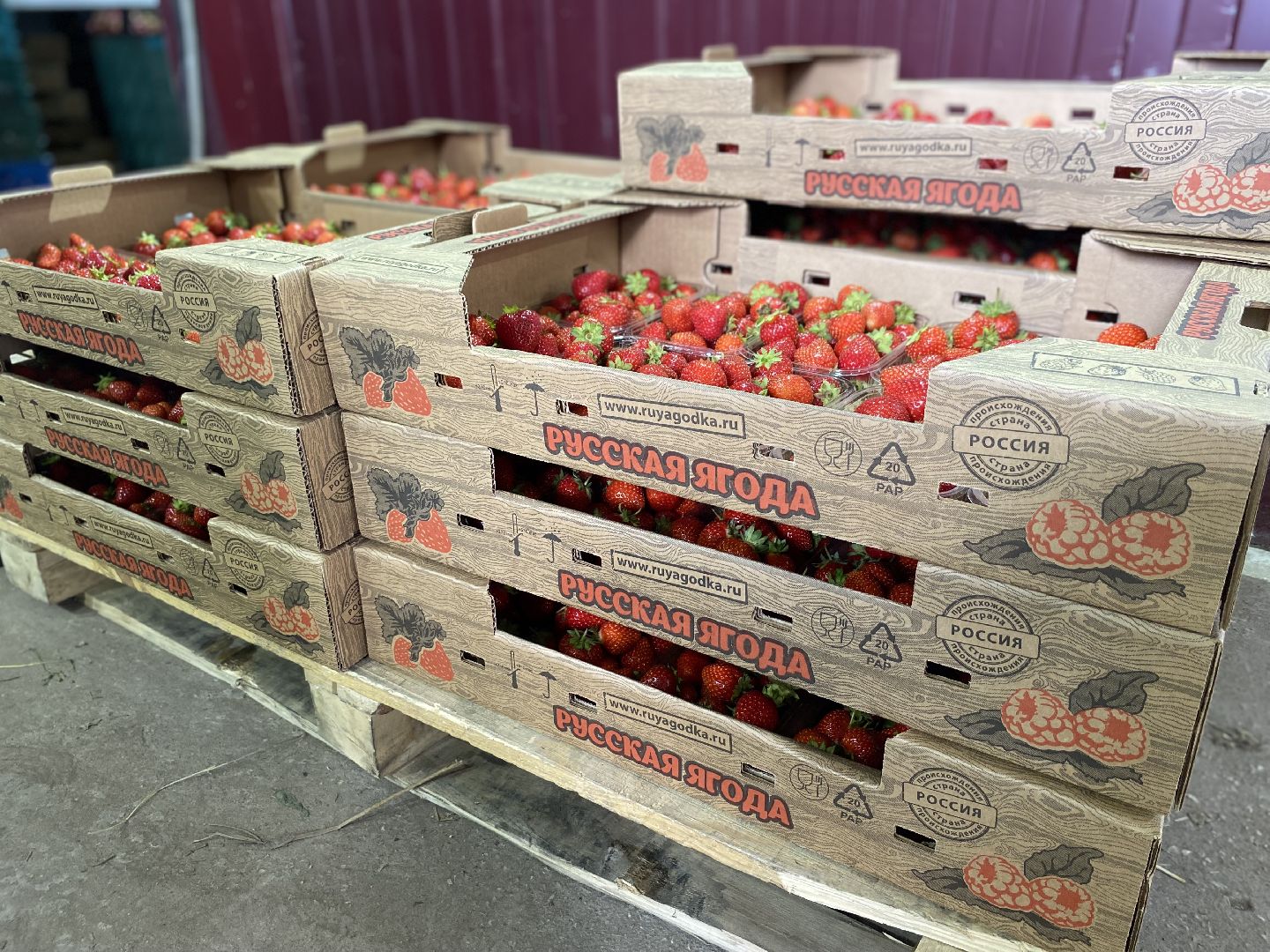 На предприятии «Русская ягода» идёт уборочная пора. Площадь хозяйства составляет 65 гектаров, 47 из которых отведены под выращивание ягод. Ягоды поспевают в открытом грунте и в теплицах тоннельного типа.