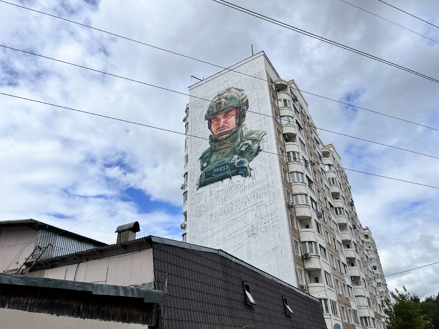 Место для мурала выбрано не случайно — Семён Ерёмин жил в Балашихе. Военный корреспондент погиб во время съёмки репортажа в зоне спецоперации при атаке FPV-дрона. После второго сброса с беспилотника журналист был ранен, впоследствии он скончался. О его гибели стало известно 19 апреля. Еремину было 42 года.