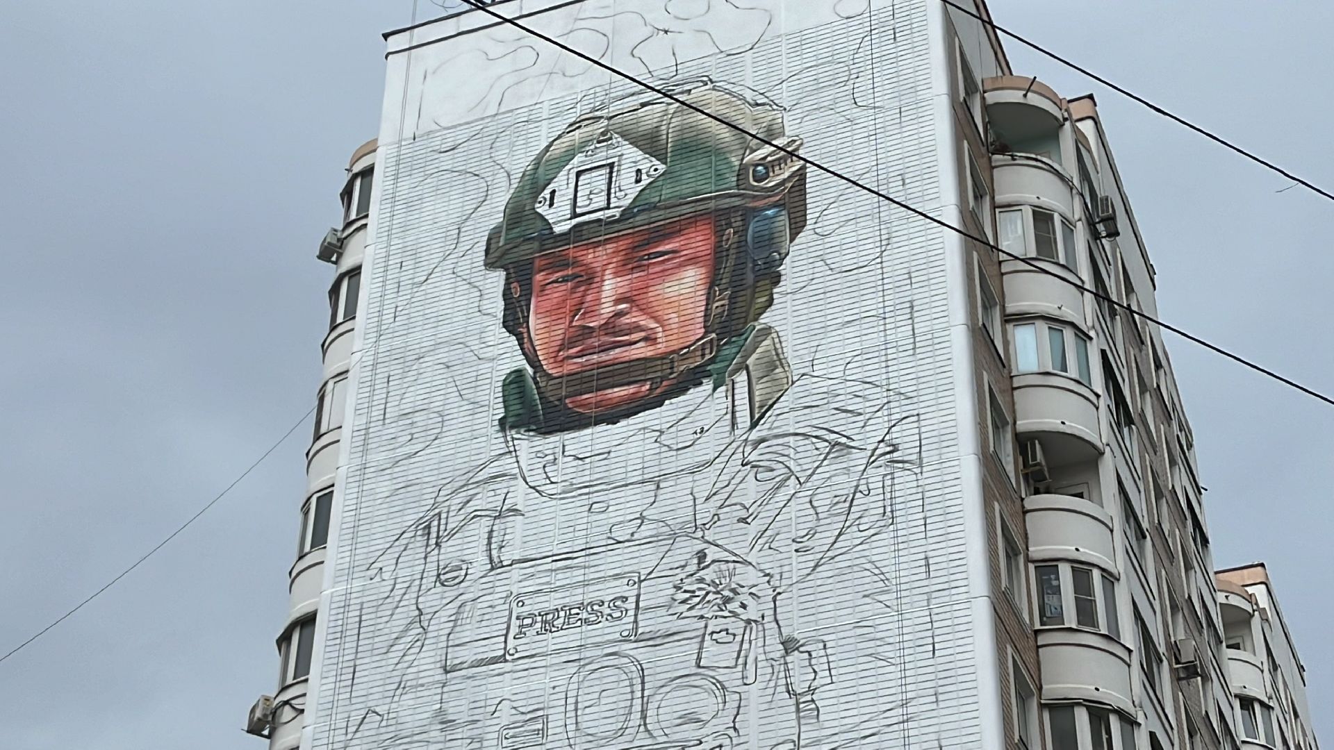 Работу размером 40 на 12 метров выполняет художник из Балашихи Сергей Юраков. На фасаде дома уже видно лицо, каску и камуфляжную жилетку с надписью «пресса». Ещё на мурале изобразят награды журналиста — орден «За заслуги перед Отечеством» II степени, а также орден Мужества, которым он награжден посмертно. Художник работает аэрозольной краской по эскизу, который заранее перенёс на фасад дома с помощью проектора. Открытие мурала запланировано на сентябрь этого года.