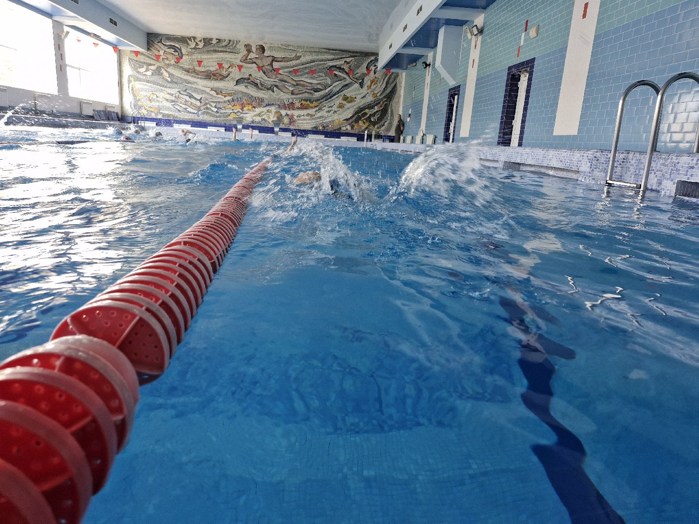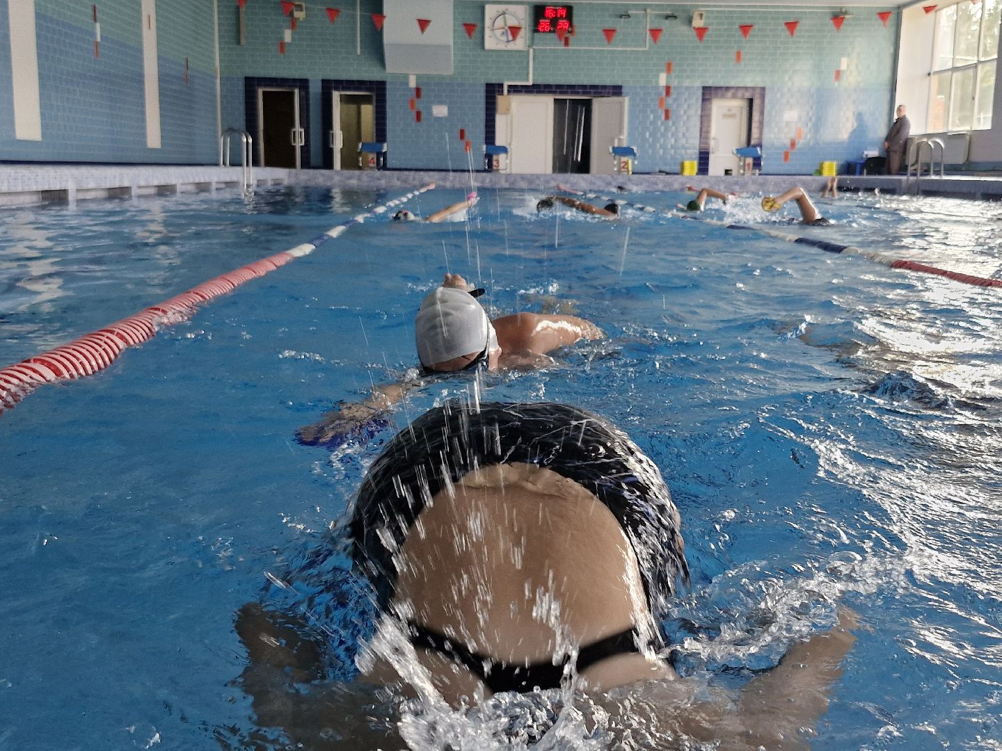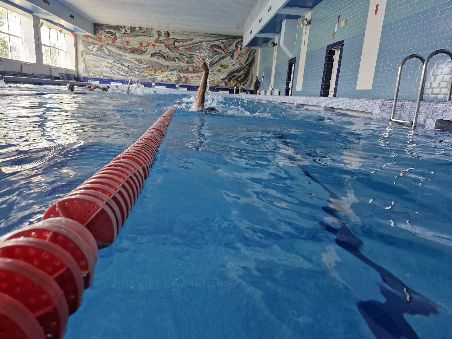 Начались тренировки юных пловцов в чистом бассейне спортивного комплекса «Атлант». С середины июля в нём проходили работы по профилактике. Воду из бассейна спускали, чашу мыли.