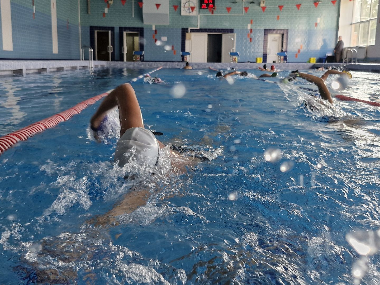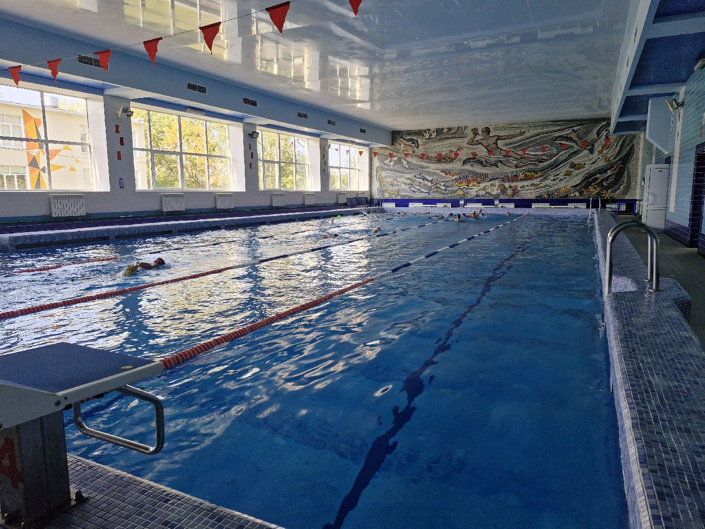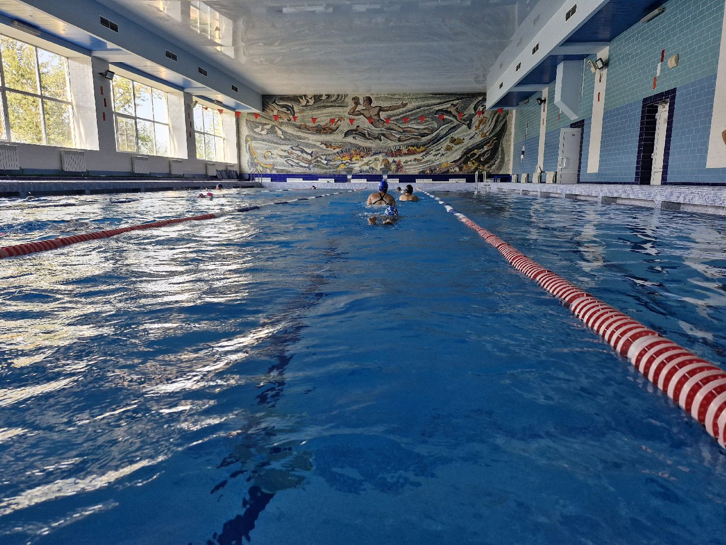 Бассейн в спортивном комплексе «Атлант» на четыре дорожки с объёмом воды 450 кубических метров. В чистой воде уже начали тренировки юные спортсмены.