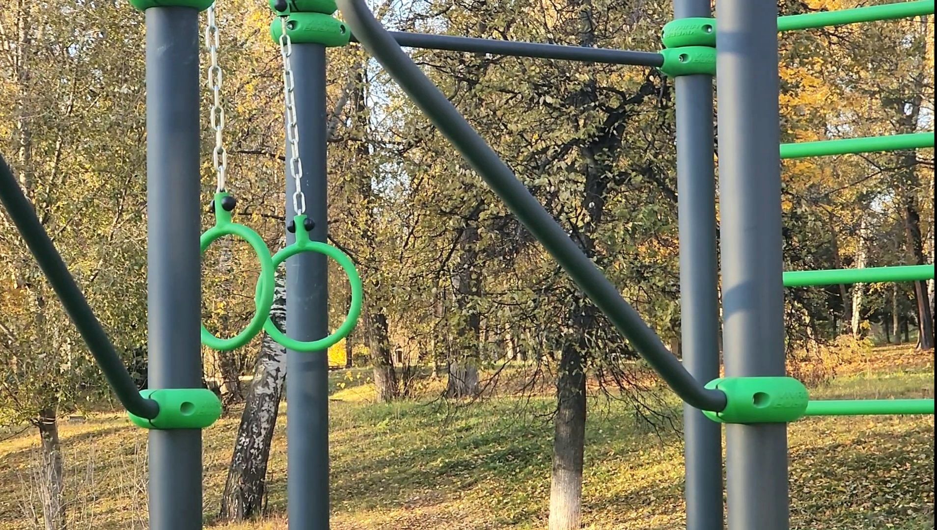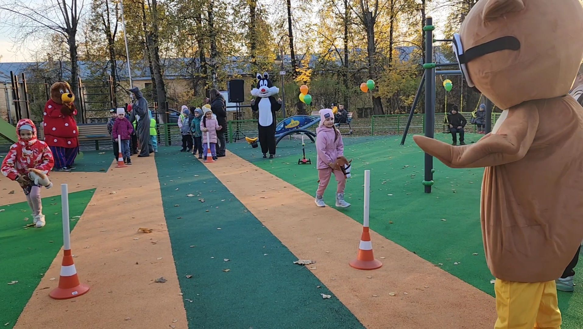 На территории 400 квадратных метров расположился спортивный комплекс, два новых игровых городка, качели, карусели, качалки-балансиры и качалки на пружине.