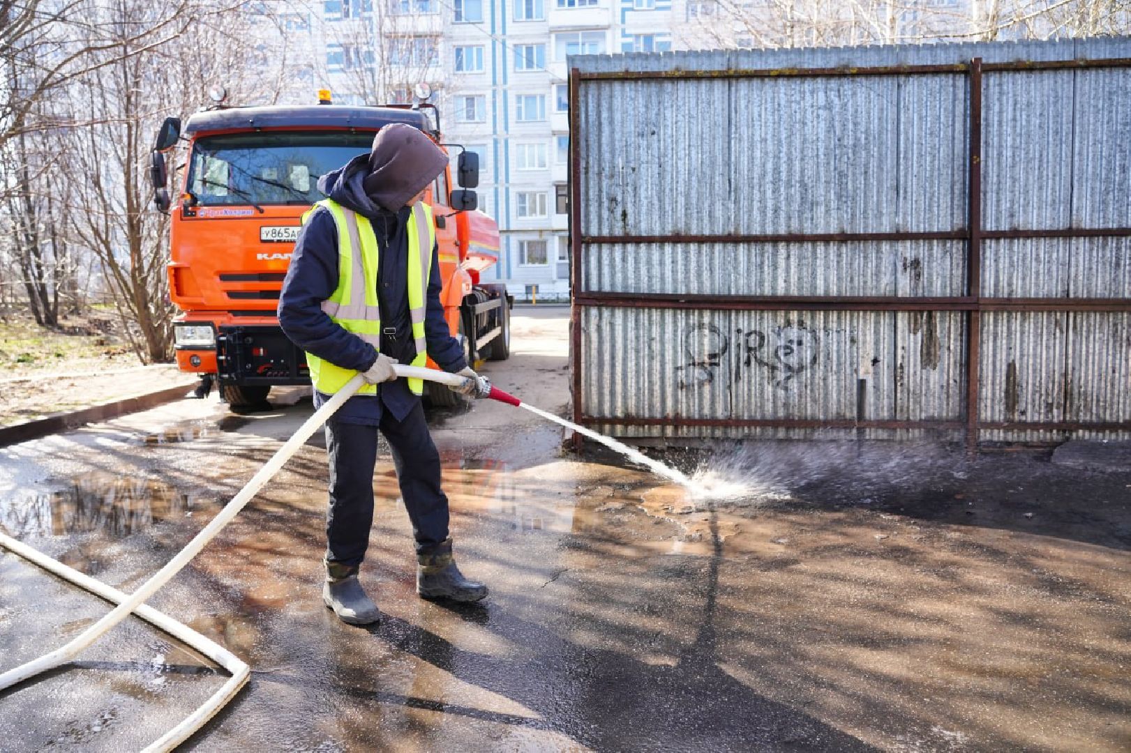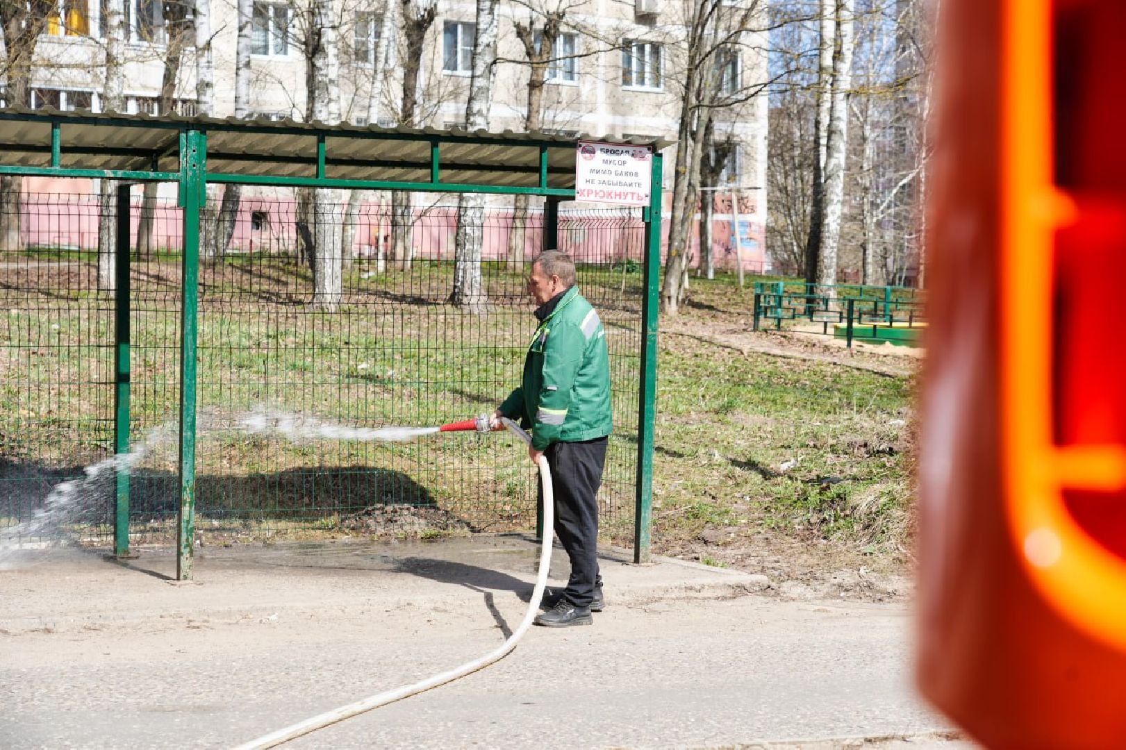Ответственные службы промывают водой и чистят общественные пространства, дороги, контейнерные и детские площадки.