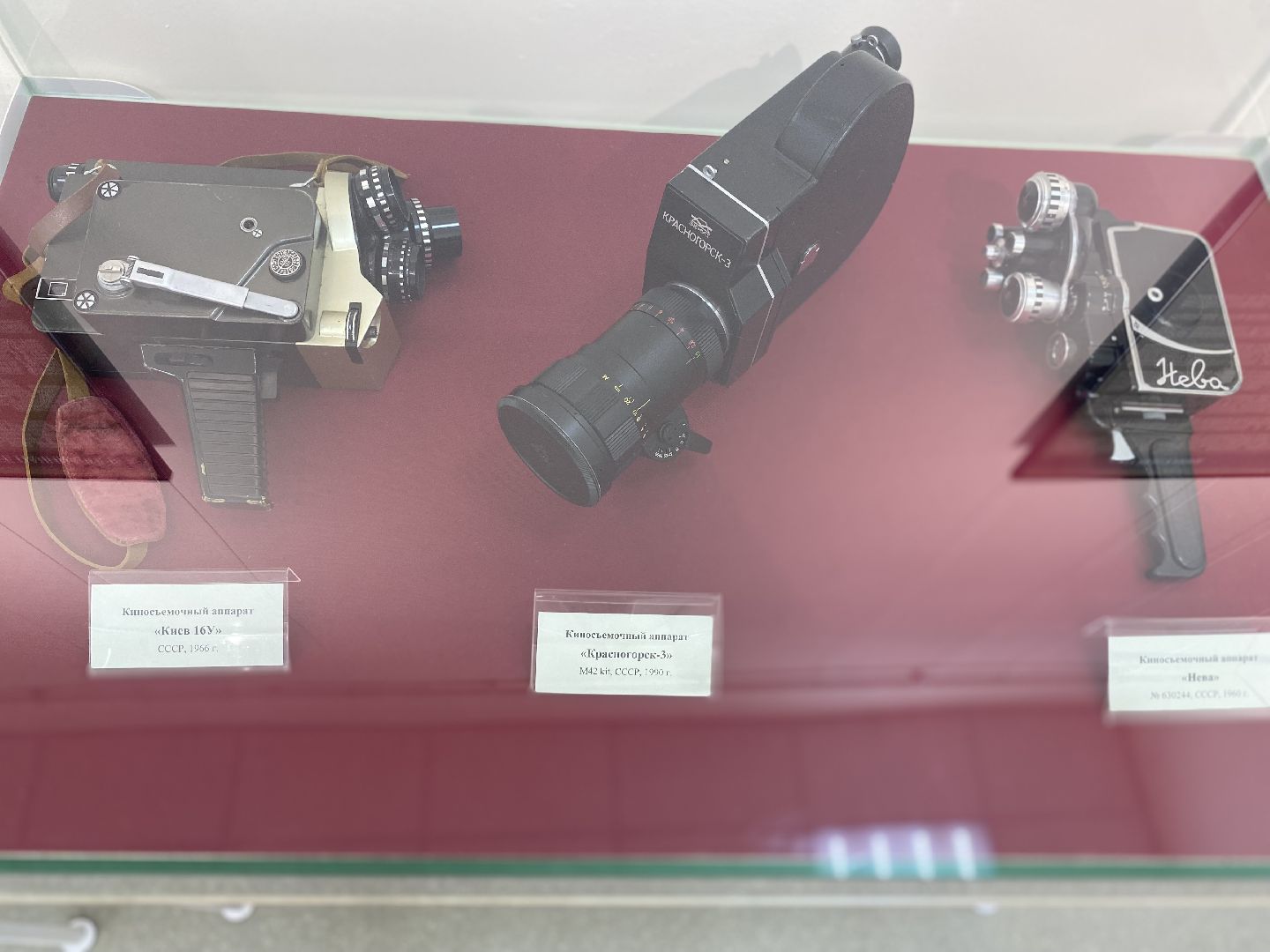 Любителей кинотехники на ретровыставке заинтересуют такие экспонаты, как кинокамера «Родина», на которую было снято много художественных и документальных лент, репортажная авиационная кинокамера АКС-1с, кинокамеры «Конвас», «Красногорск», «Киев» и другие.