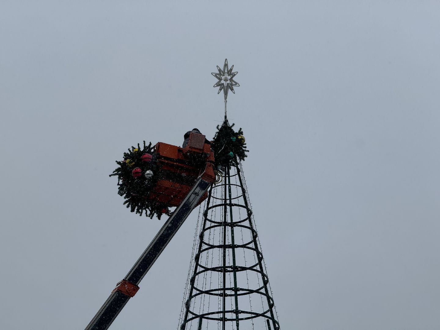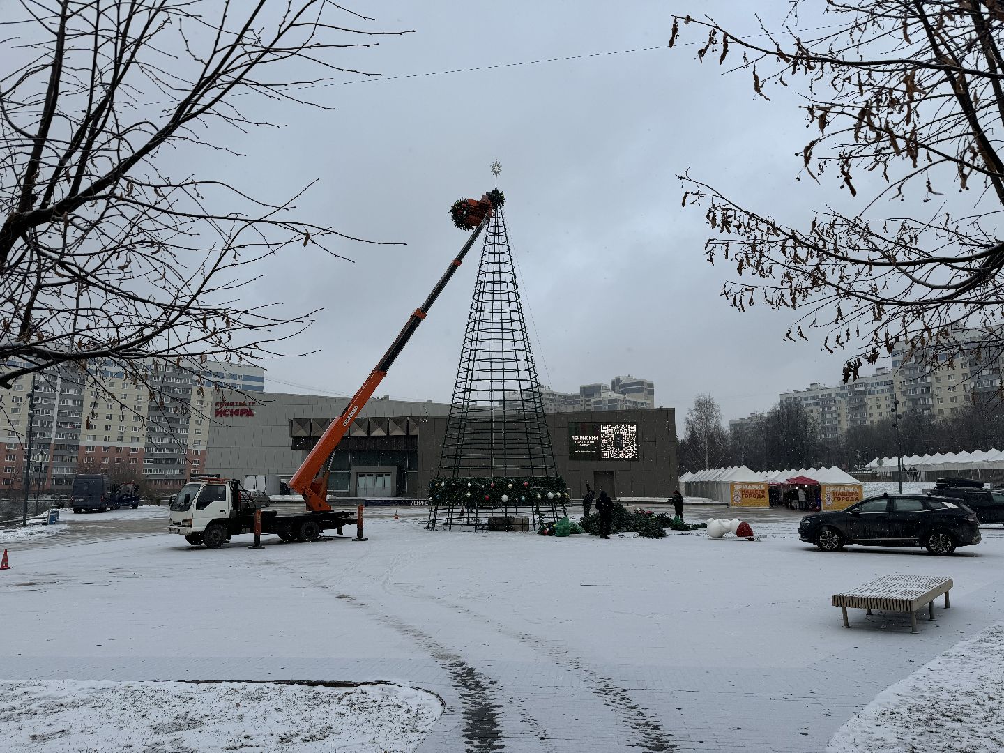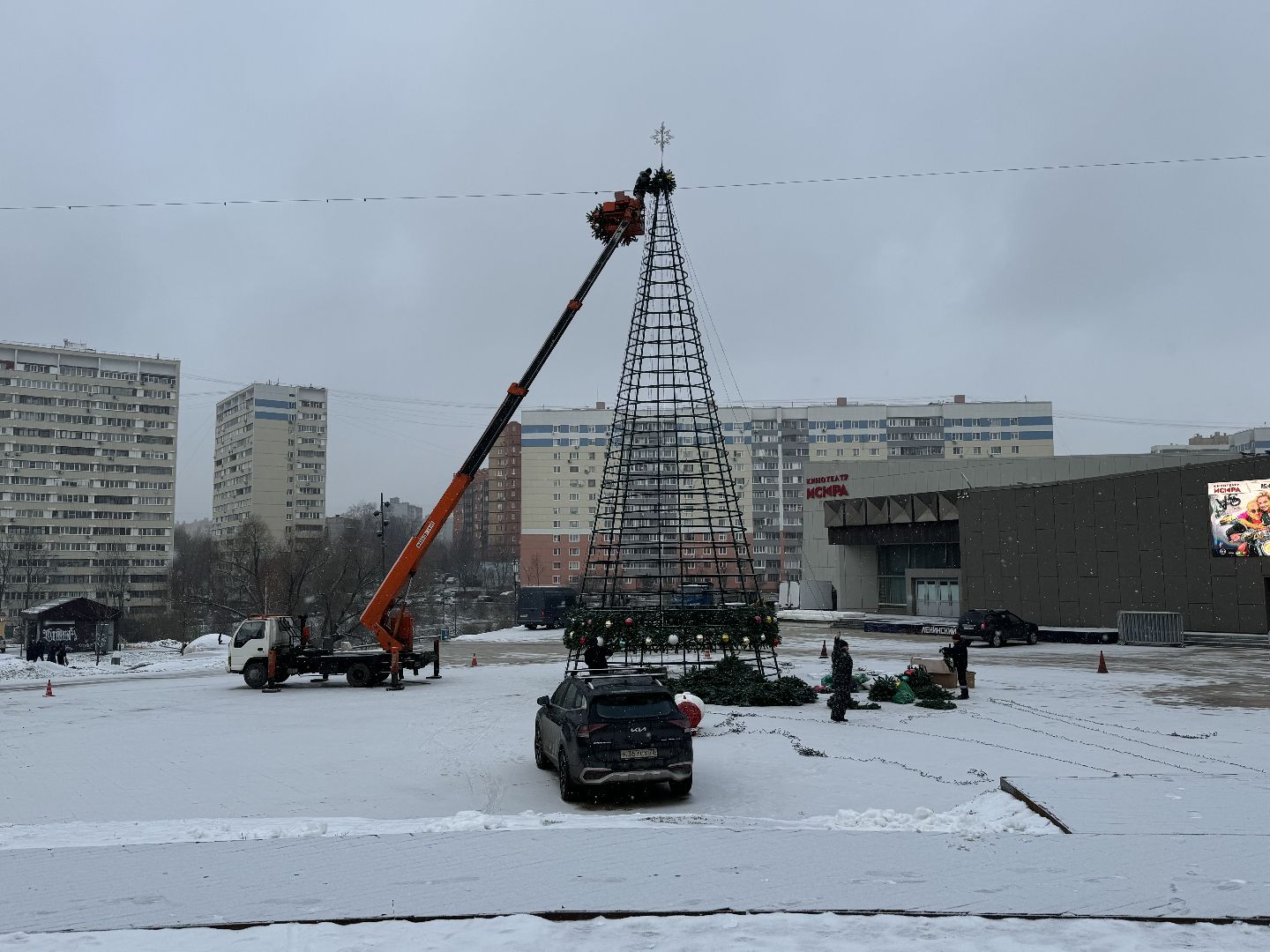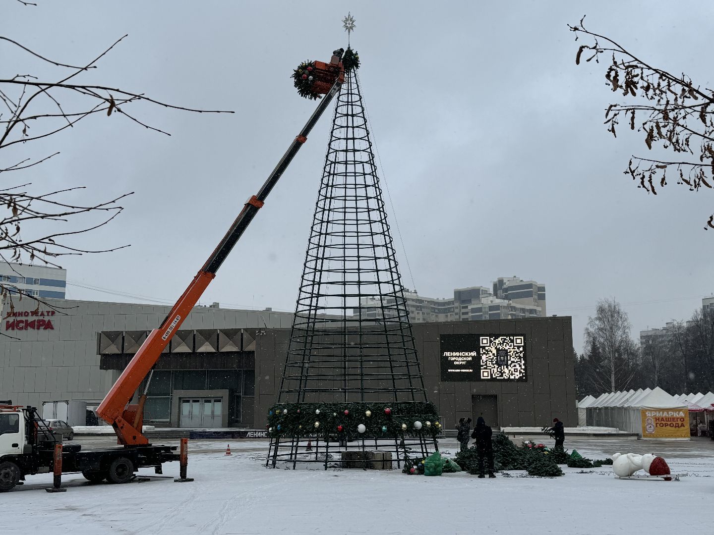 В Ленинском округе силами специалистов МБУ «Благоустройство» нарядили главную ёлку города Видное. Зелёную красавицу у кинотеатра украсили порядка 800 метров гирлянд и 750 елочных шаров разного диаметра.