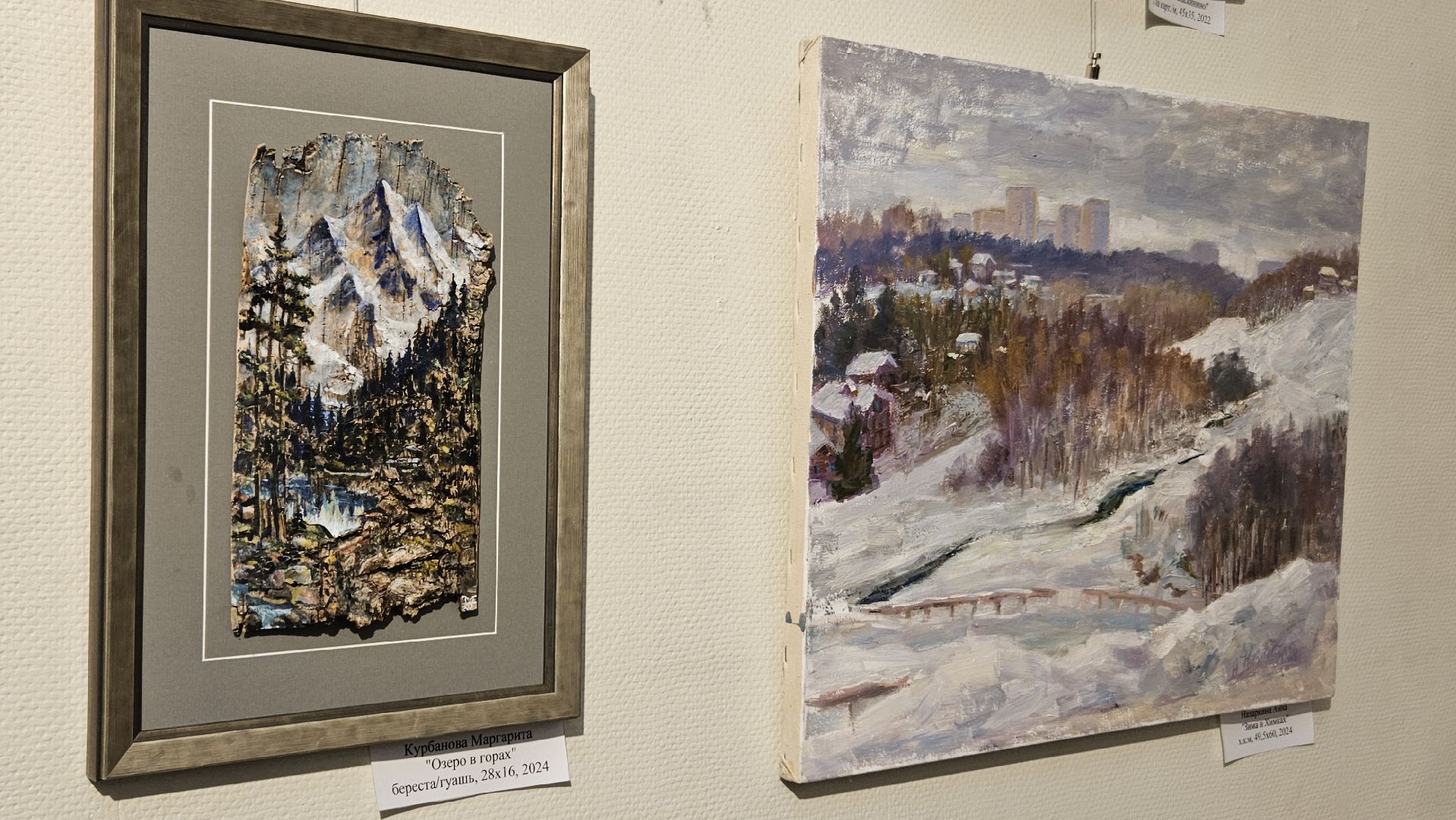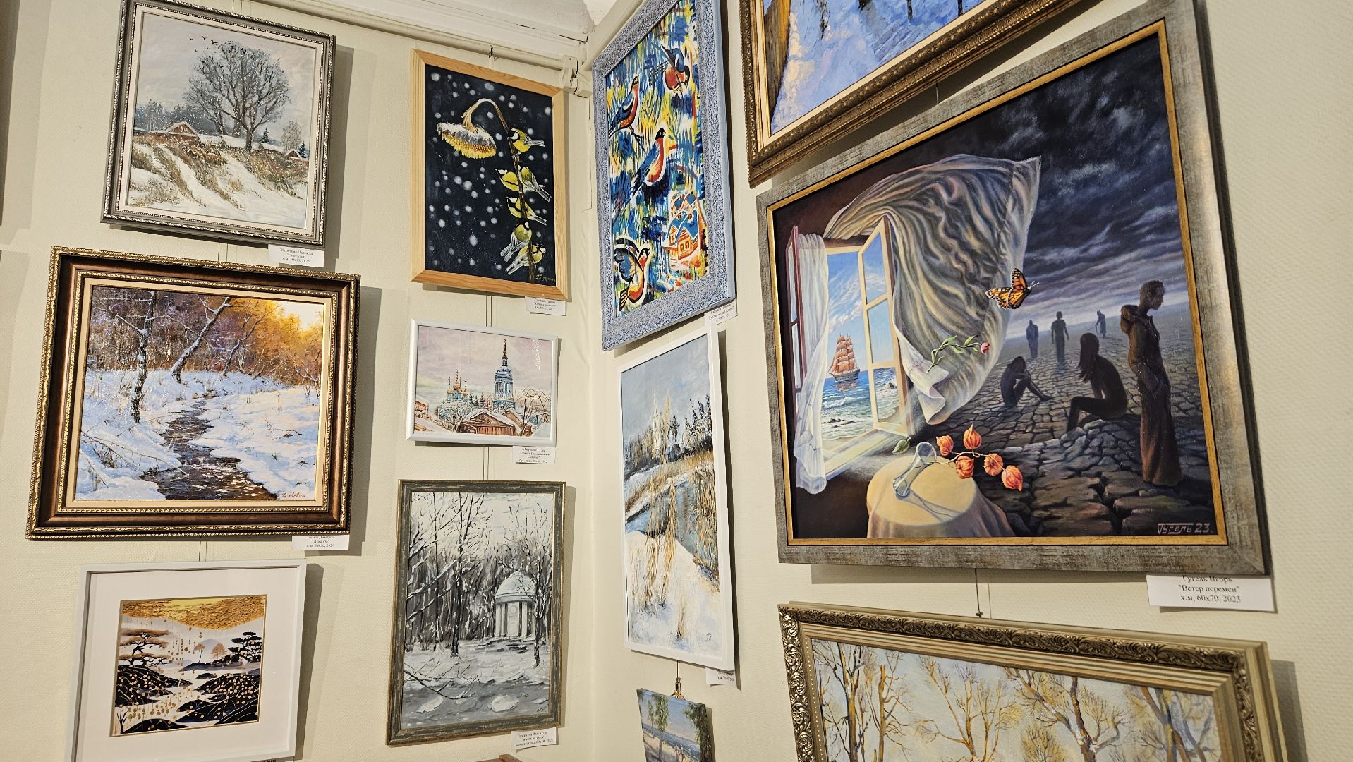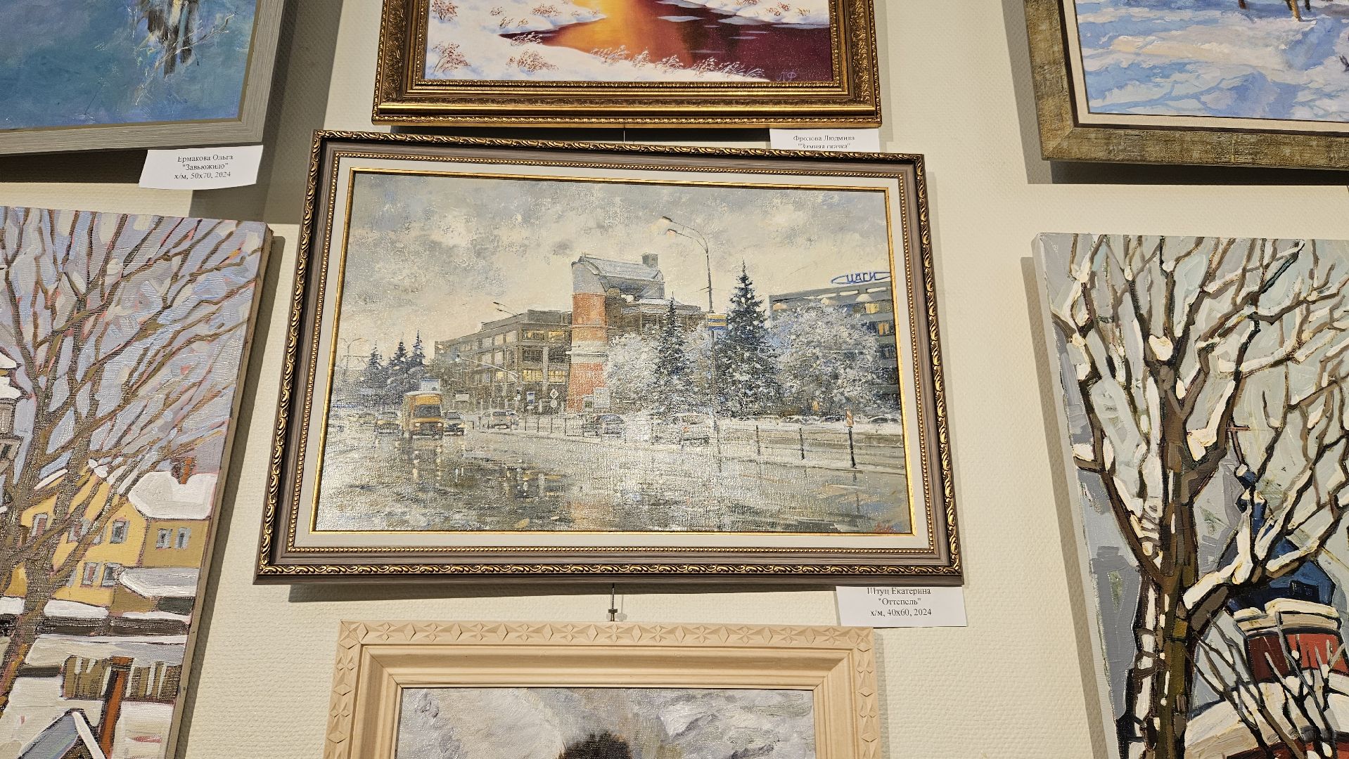 На новой выставке представлены картины с изображением зимних пейзажей и того, что напоминает нам о зиме и о родном крае.