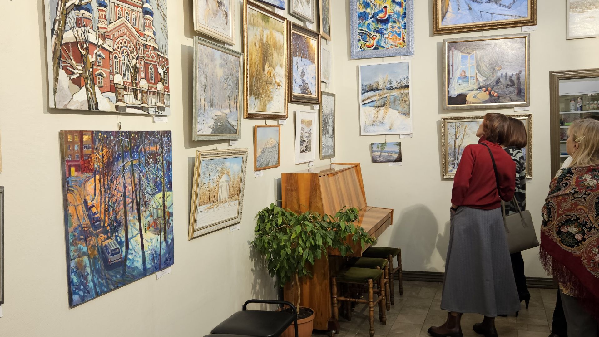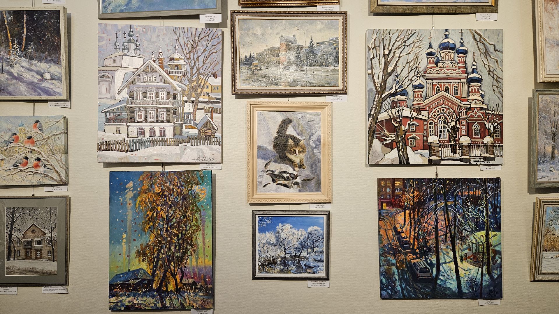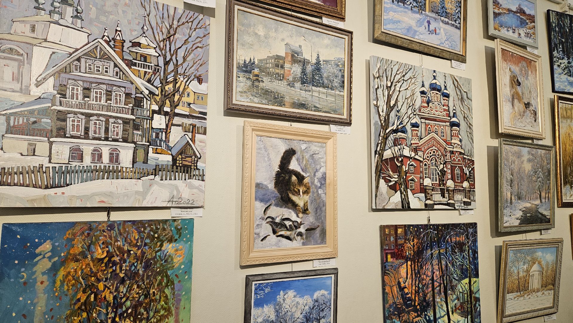 На новой выставке представлены картины с изображением зимних пейзажей и того, что напоминает нам о зиме и о родном крае.