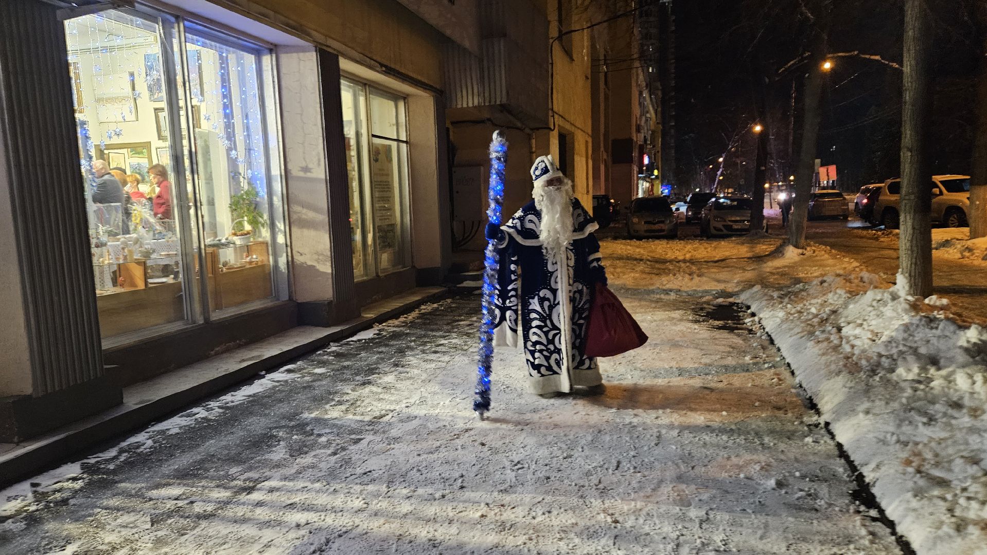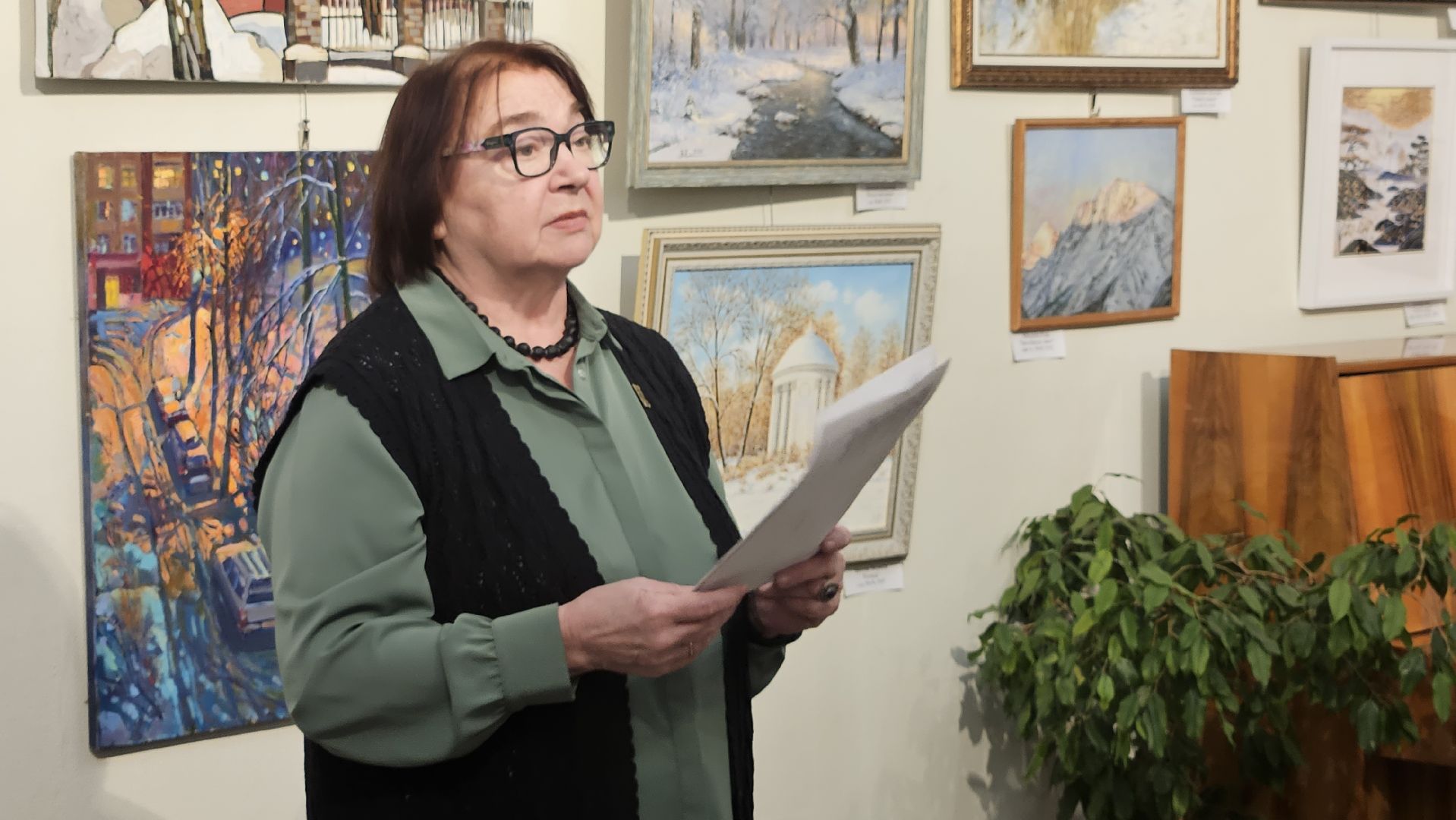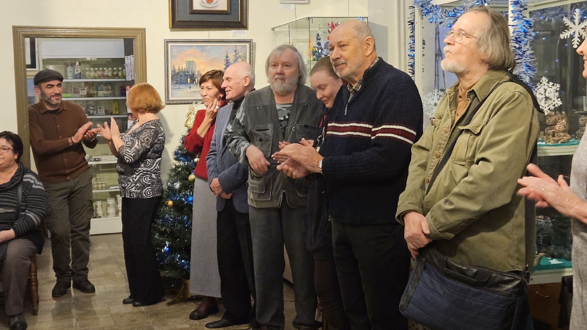 Сегодня выставку посетил ещё и волшебный гость — сам Дед Мороз пришёл посмотреть на зимнее вдохновение в картинах художников авиаграда.