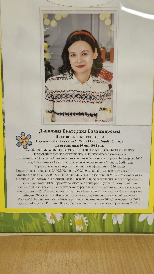 Воспитательница дошкольного отделения школы №9, Екатерина Данилина, участвует в конкурсе «Педагог года». Екатерина с 2006 года работает воспитателем и давно в своей работе применяет творческий подход.