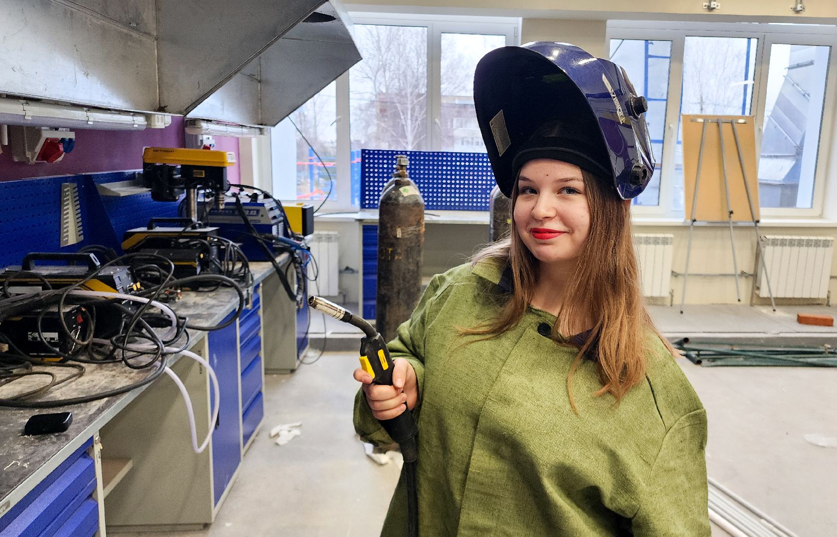 17-летняя студентка осваивает профессию сварщика в автомобильно-дорожном колледже в Бронницах