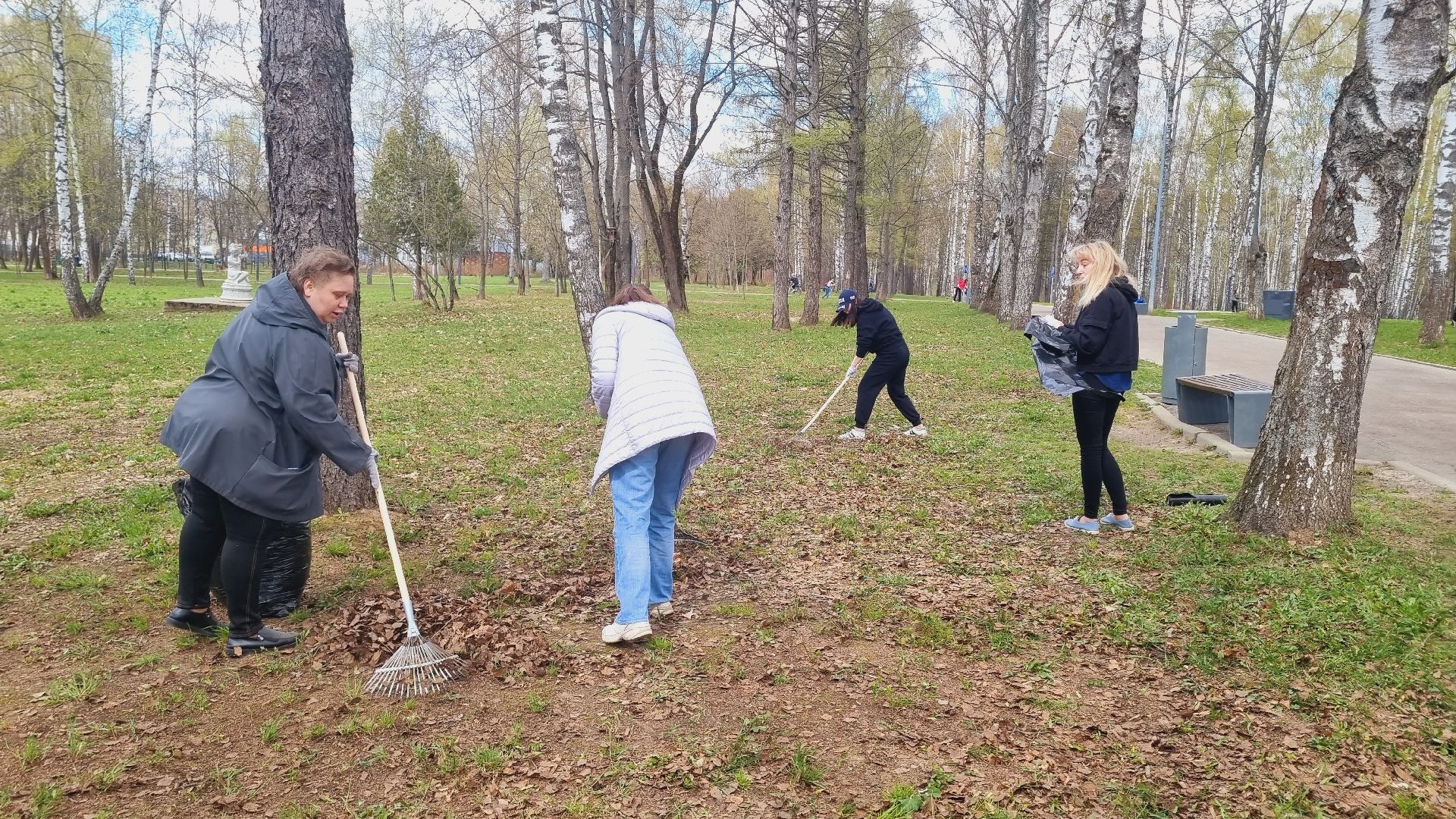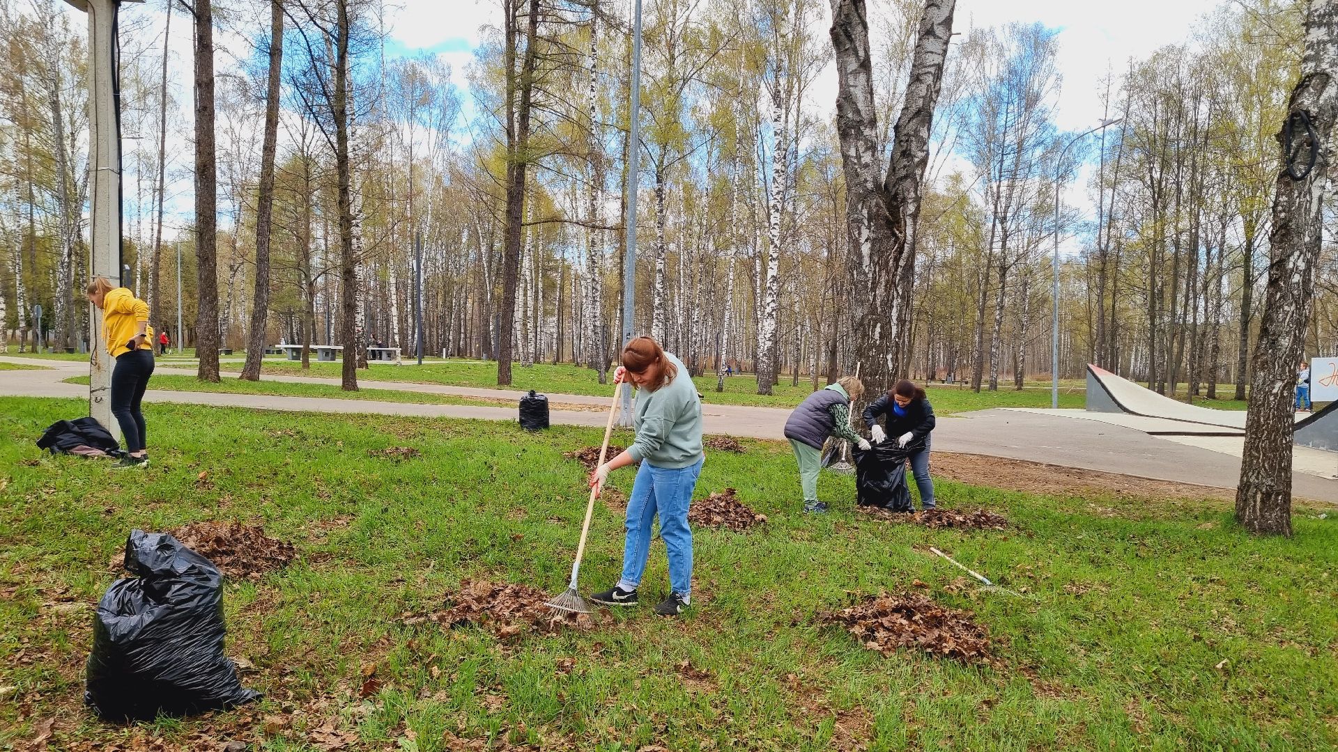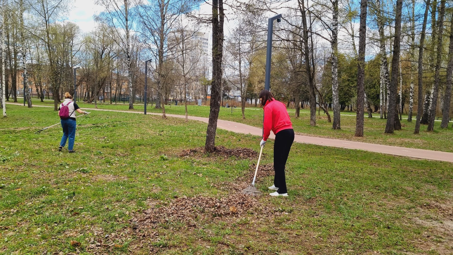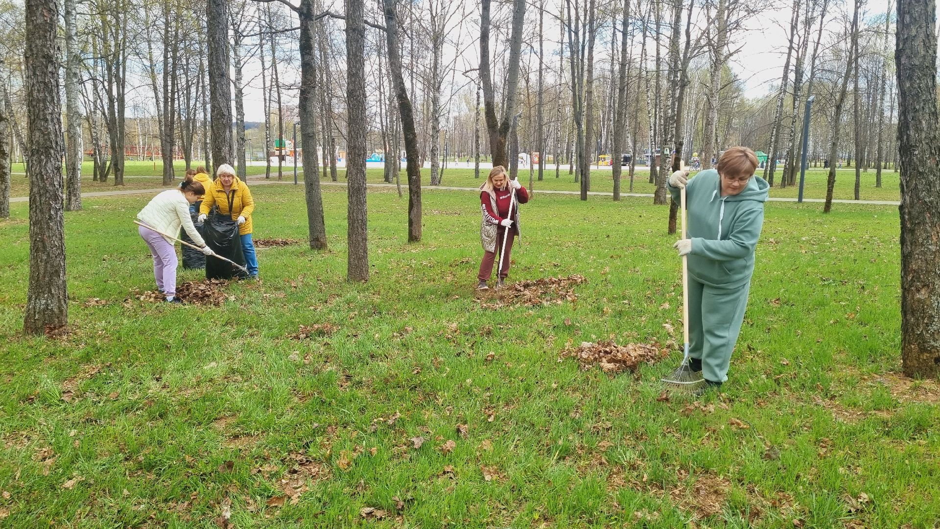 Муниципальное казённое учреждение межведомственное централизованная бухгалтерия в количестве пятидесяти сотрудников города Ивантеевки произвела смёт прошлогодней листвы в Центральном городском парке.