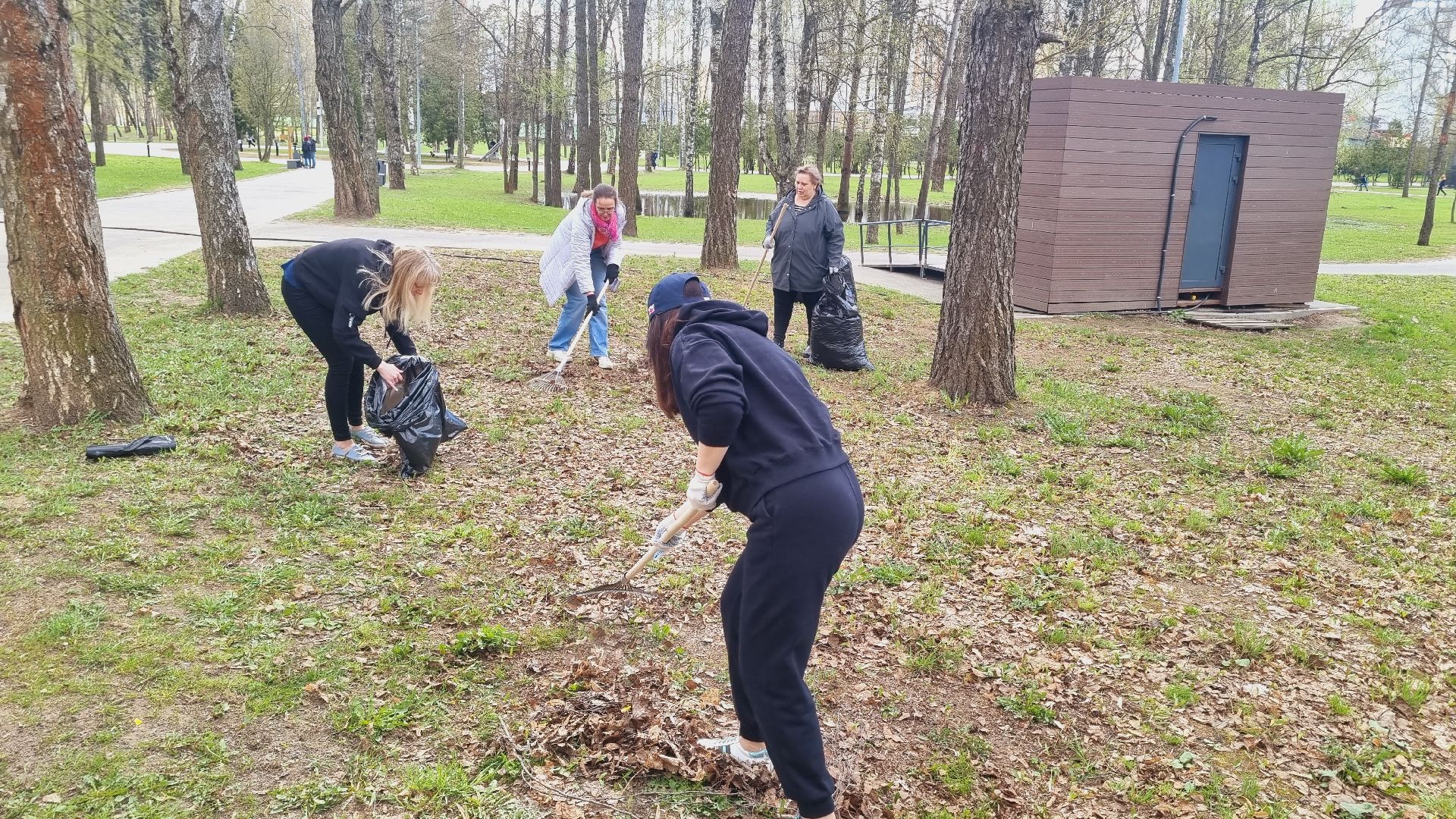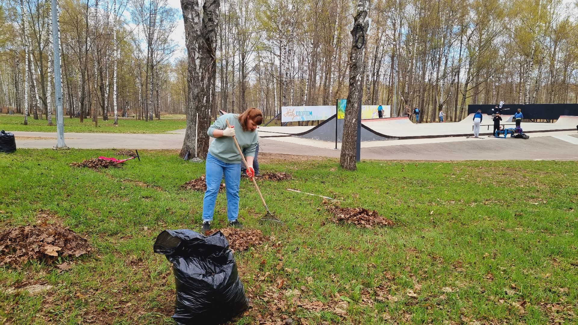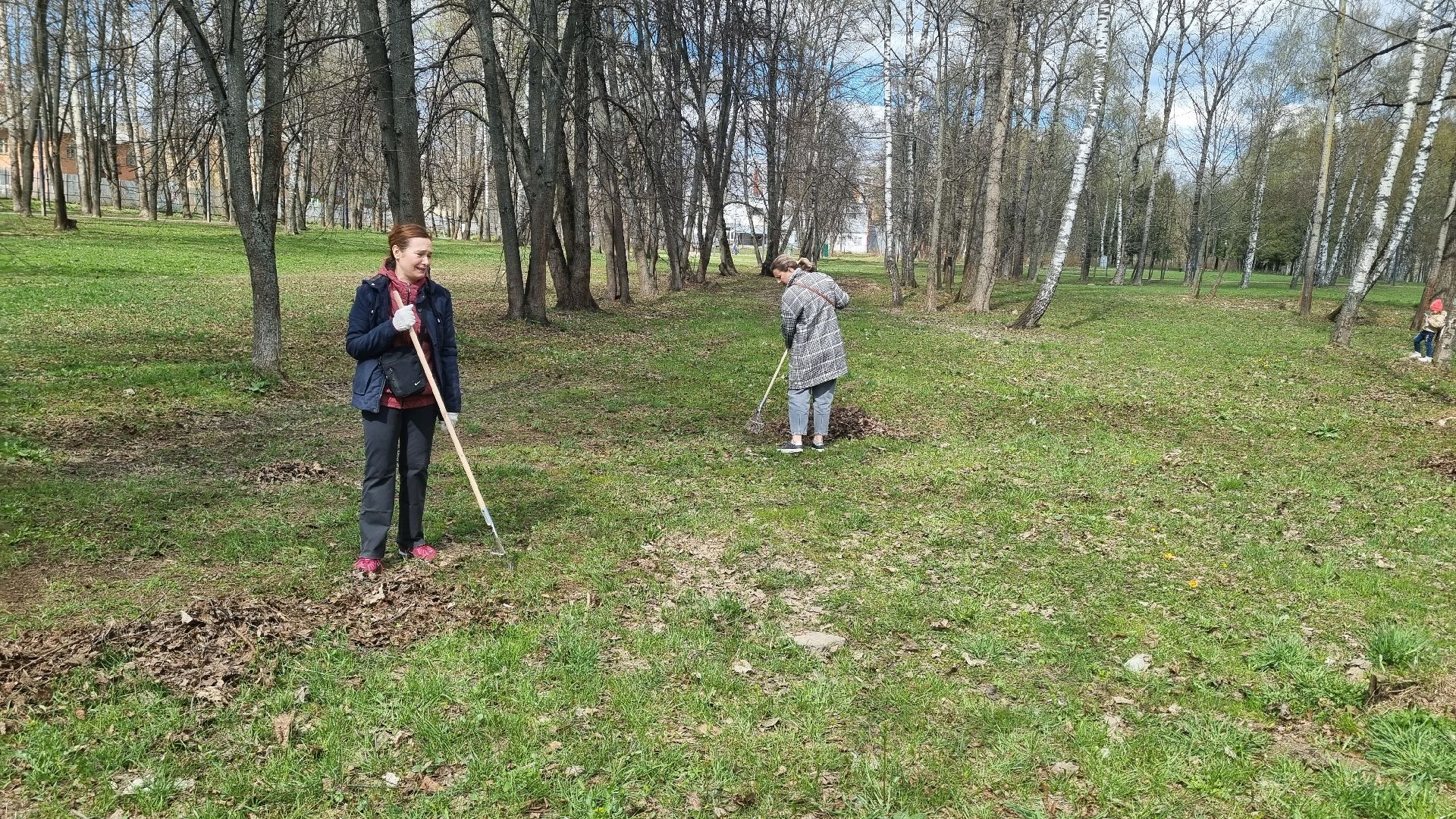 Муниципальное казённое учреждение межведомственное централизованная бухгалтерия в количестве пятидесяти сотрудников города Ивантеевки произвела смёт прошлогодней листвы в Центральном городском парке.