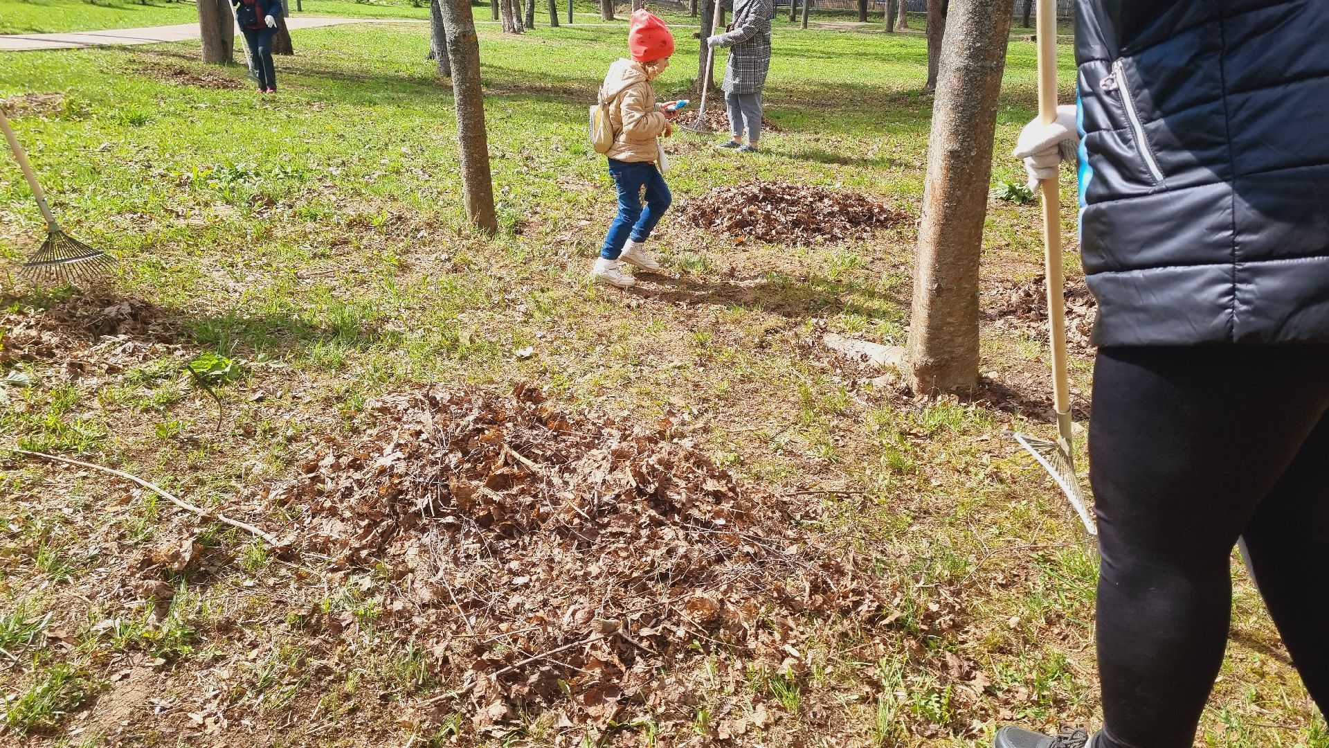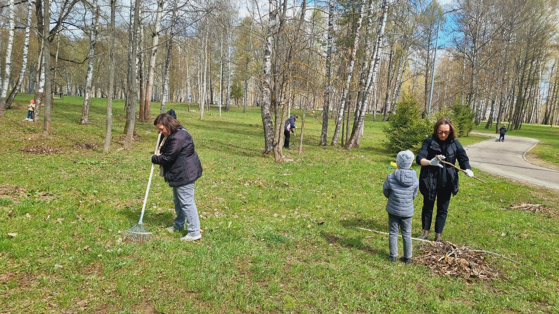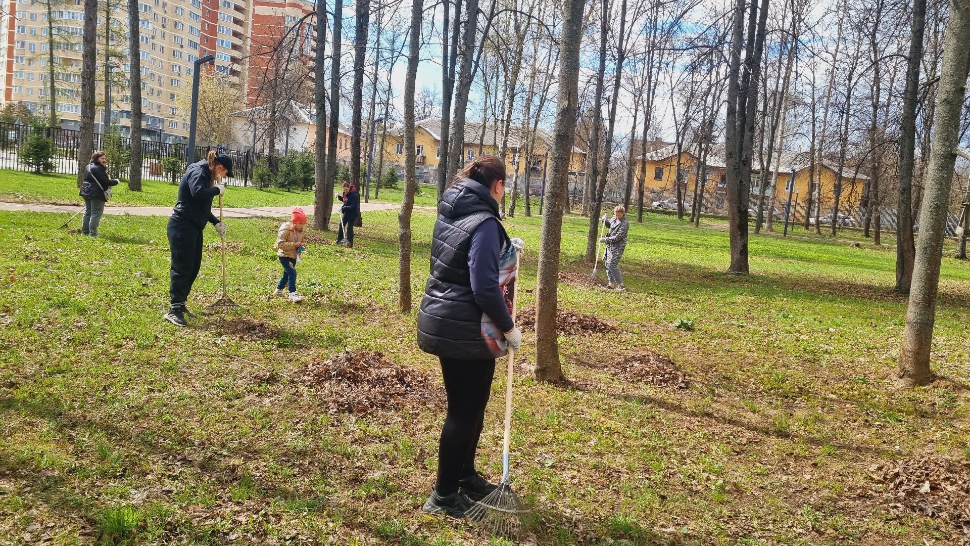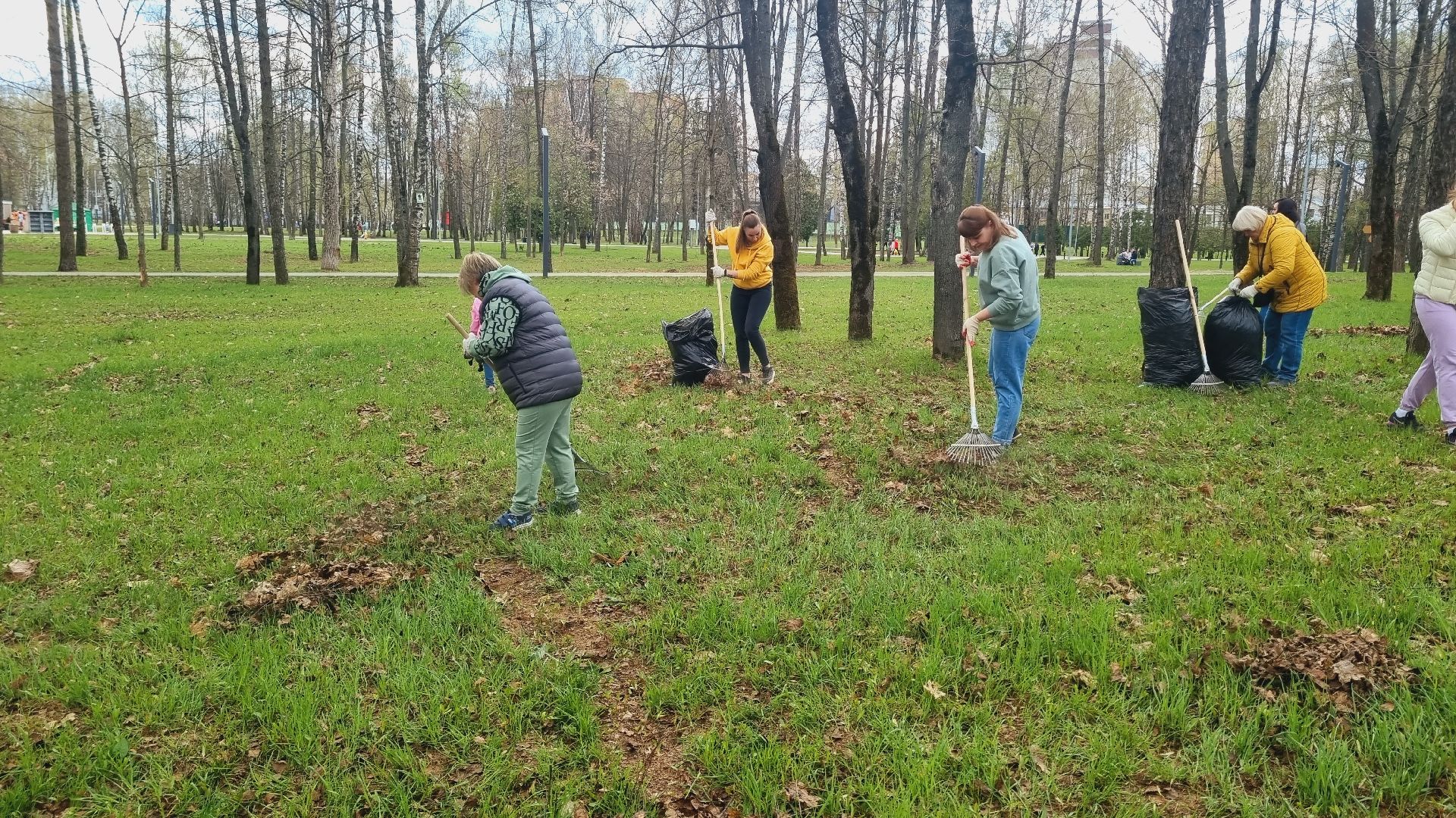 Муниципальное казённое учреждение межведомственное централизованная бухгалтерия в количестве пятидесяти сотрудников города Ивантеевки произвела смёт прошлогодней листвы в Центральном городском парке.