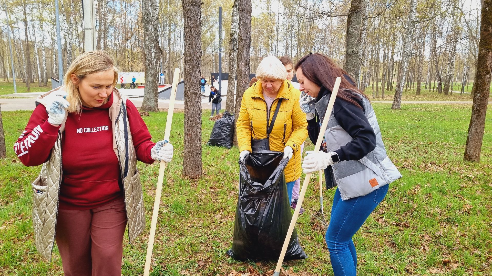 «Да нас много, почти все живём в Ивантеевке, ходим сюда гулять, поэтому решили помочь парку убрать его огромную территорию. С погодой нам повезло. Настроение как видите отличное. Первый час гребли, теперь начали расфасовывать по пакетам прошлогоднюю листву»,- комментирует Анна Наумова, старший бухгалтер и житель города.