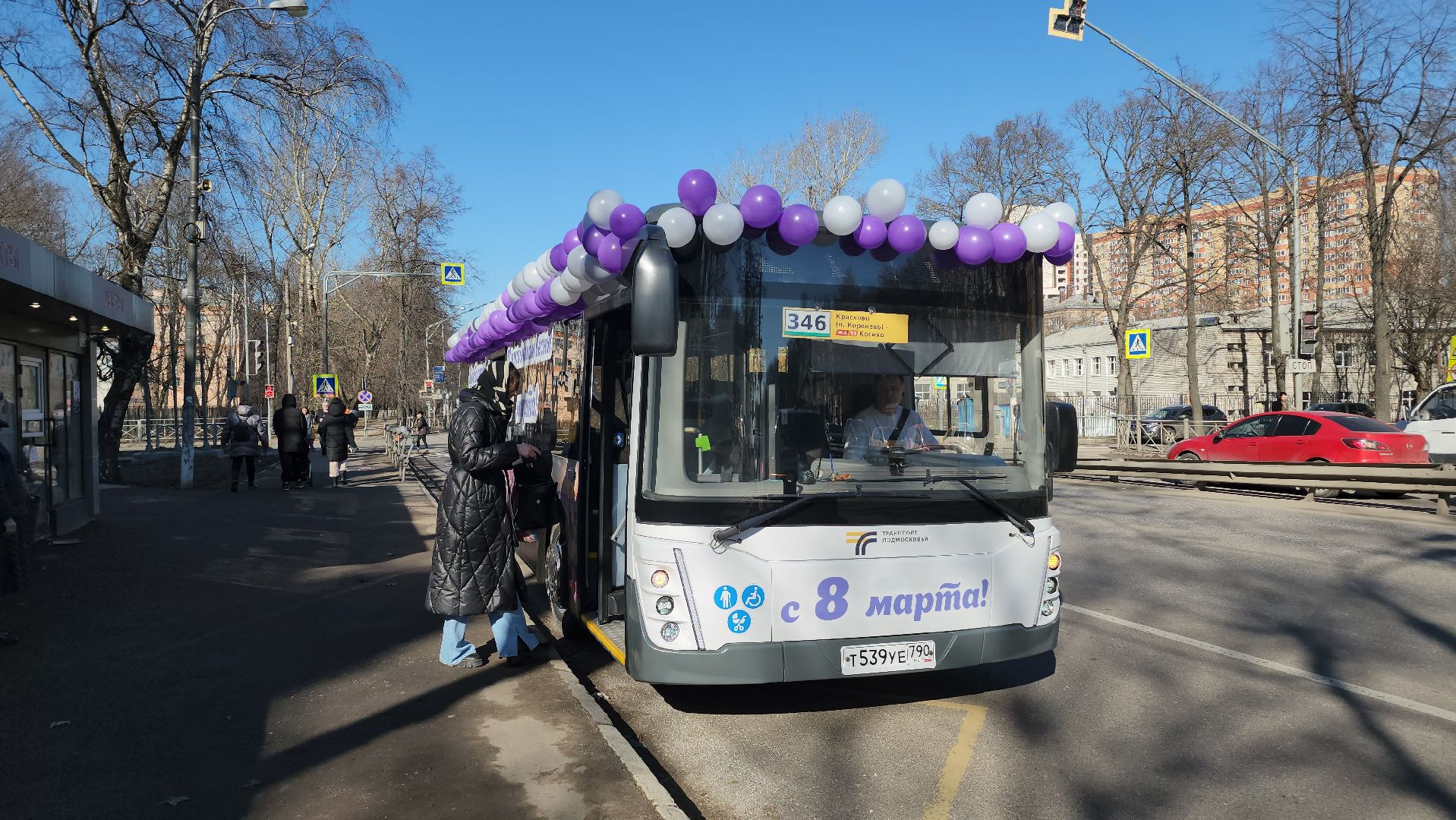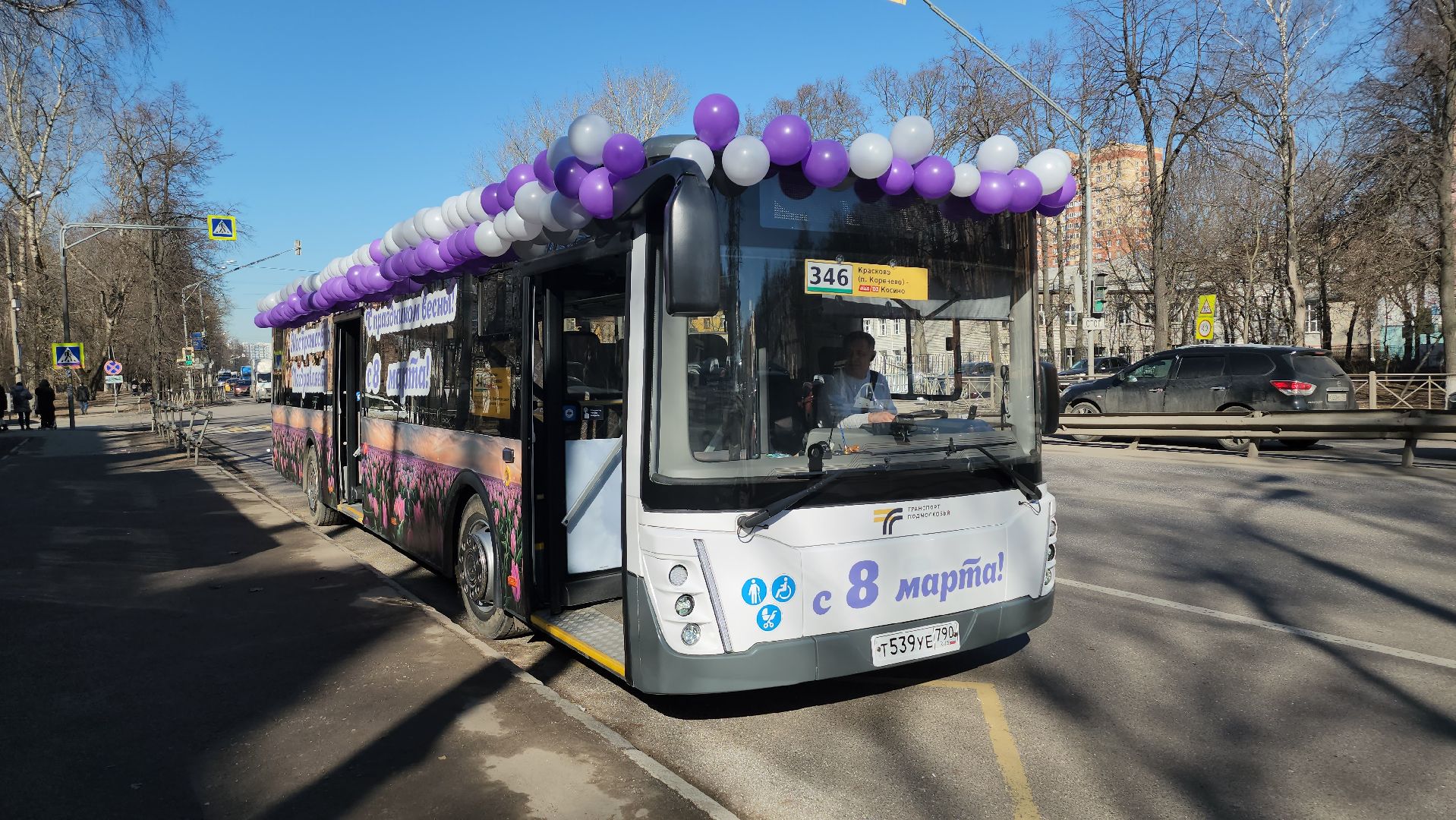 210 шаров и 18 часов работы: водитель «Мострансавто» на праздничном автобусе поднял настроение жителям Люберец 8 марта