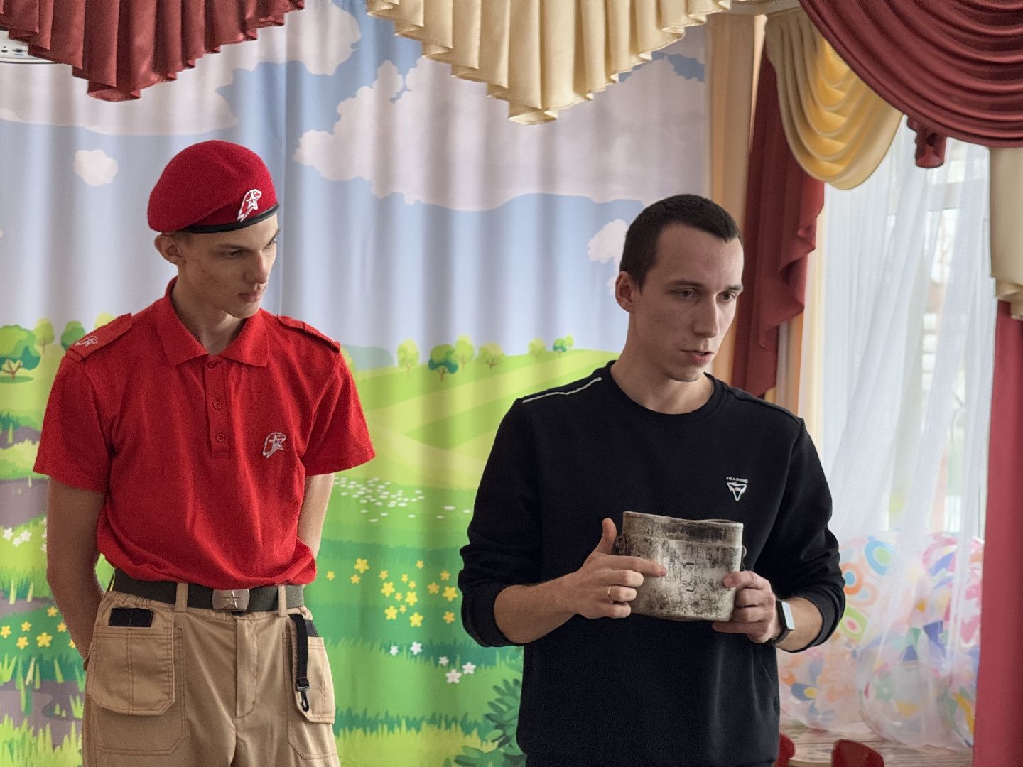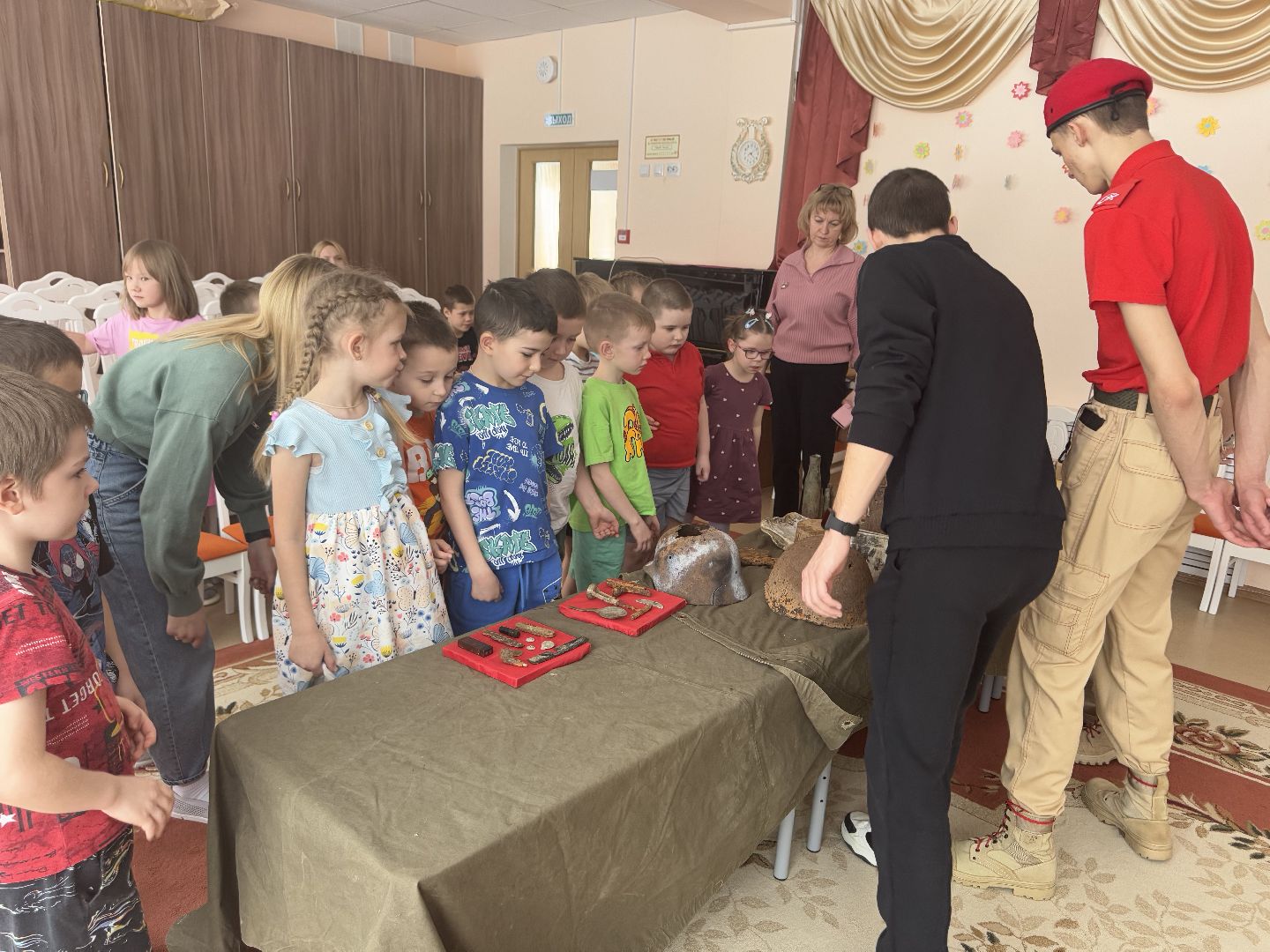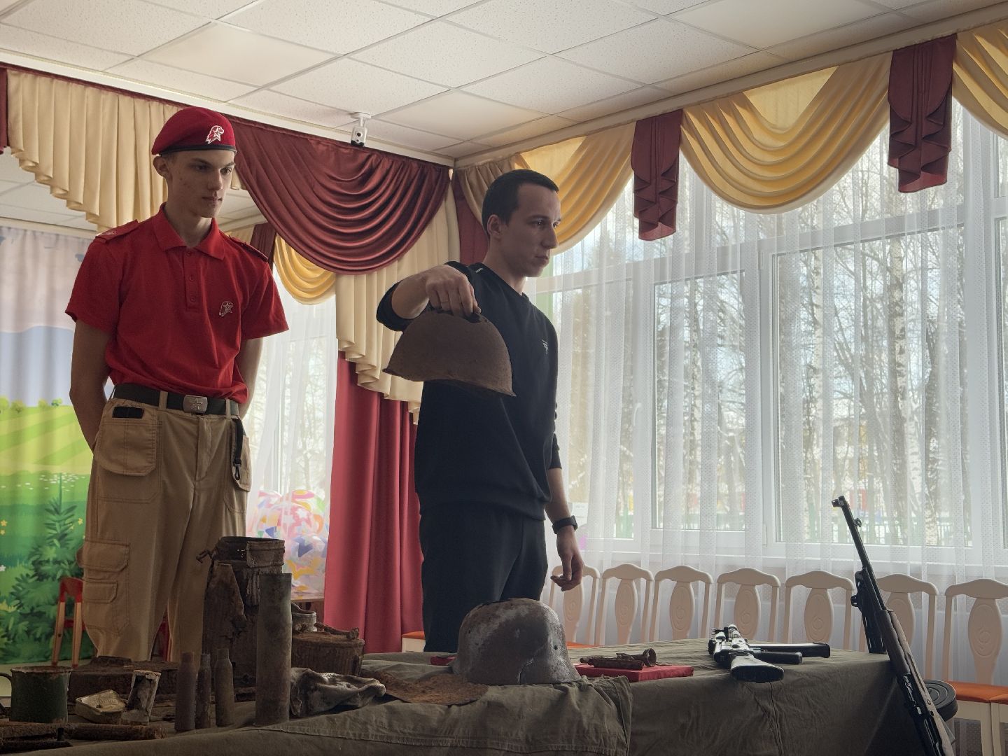 «Мы подготовили для малышей небольшой музей, приготовили оружие и разные находки (каски, гильзы, котелки) . Мы рассказали детям о вещах времён Великой Отечественной войны, найденных в наших лесах во время раскопок», — рассказал начальник штаба «Юнармии» в муниципальном округе Шаховская Илья Пахомов.