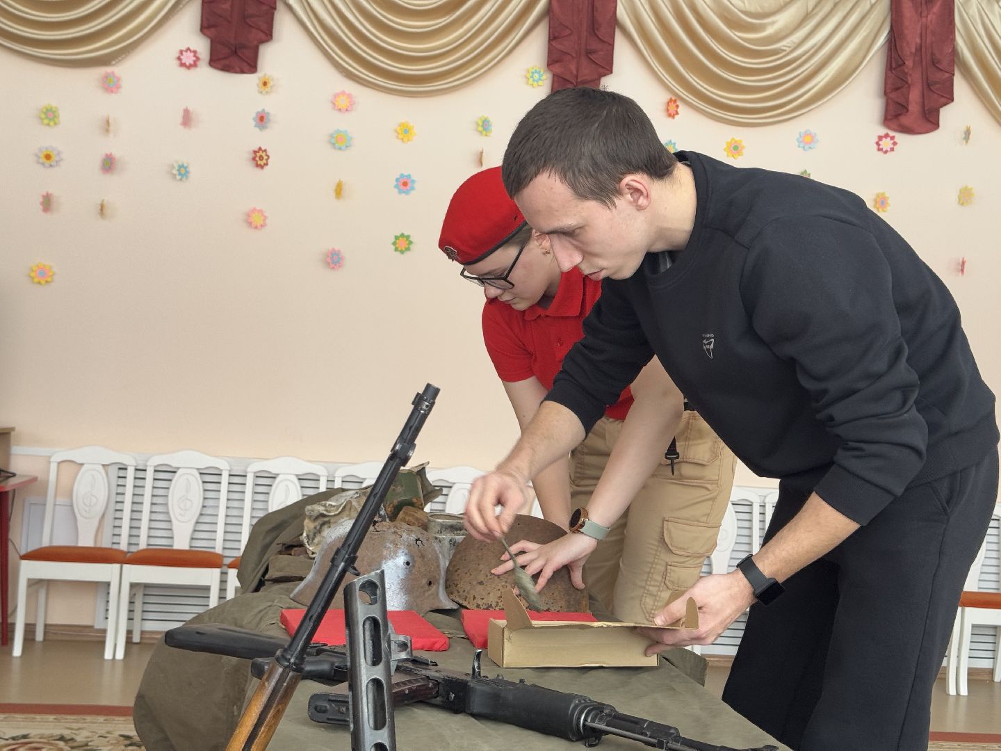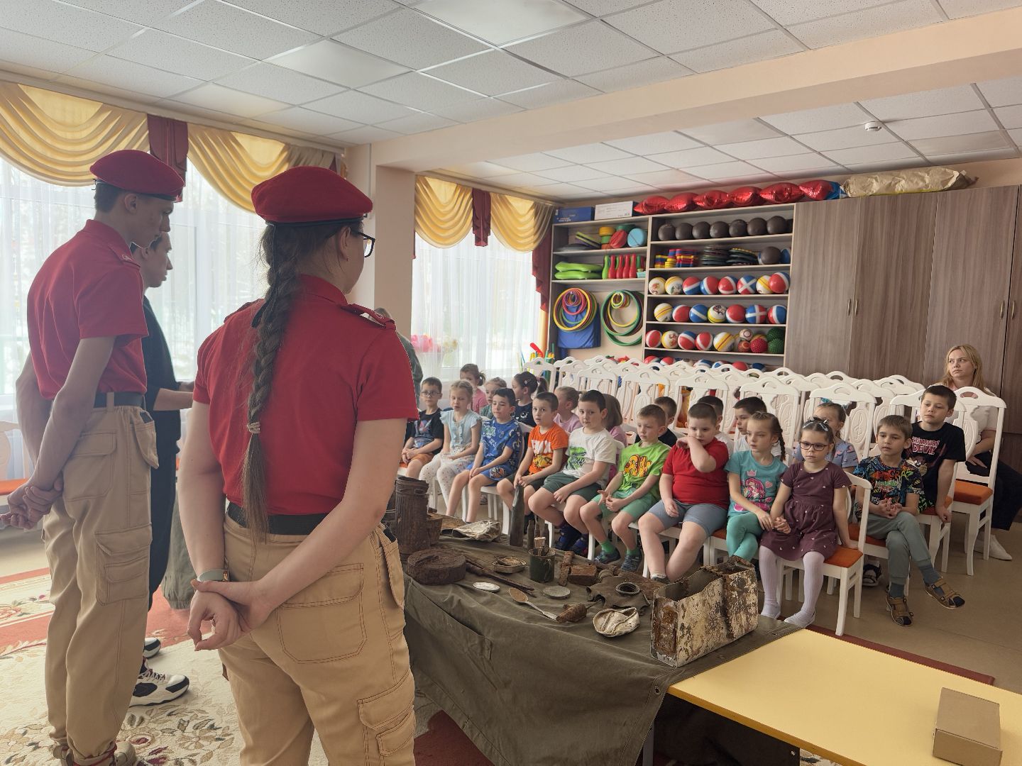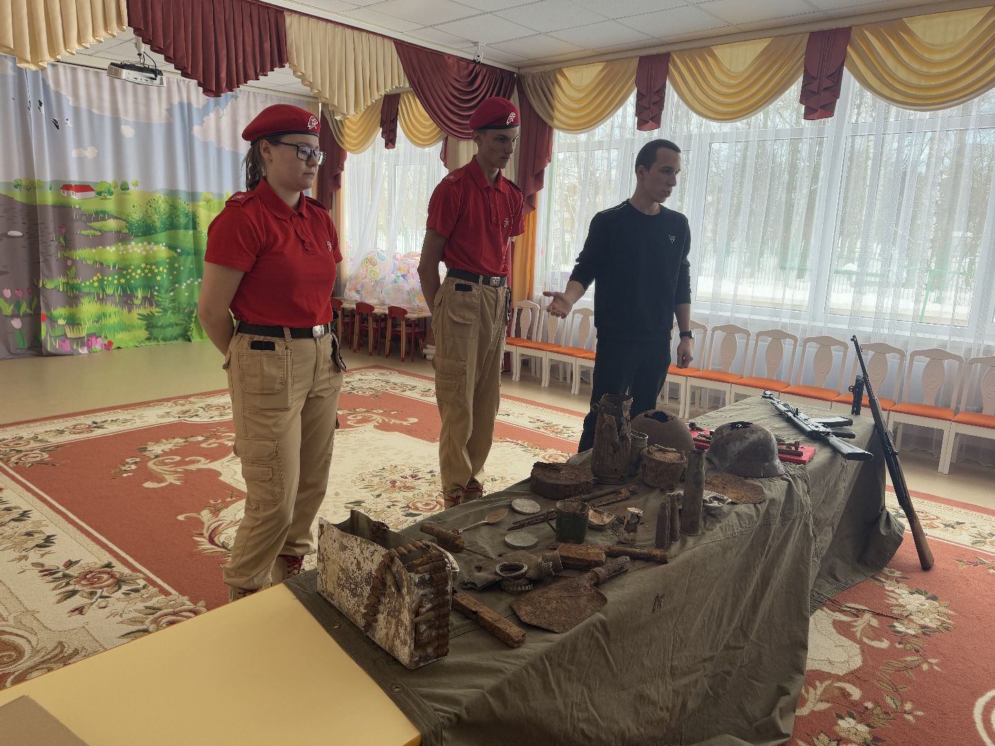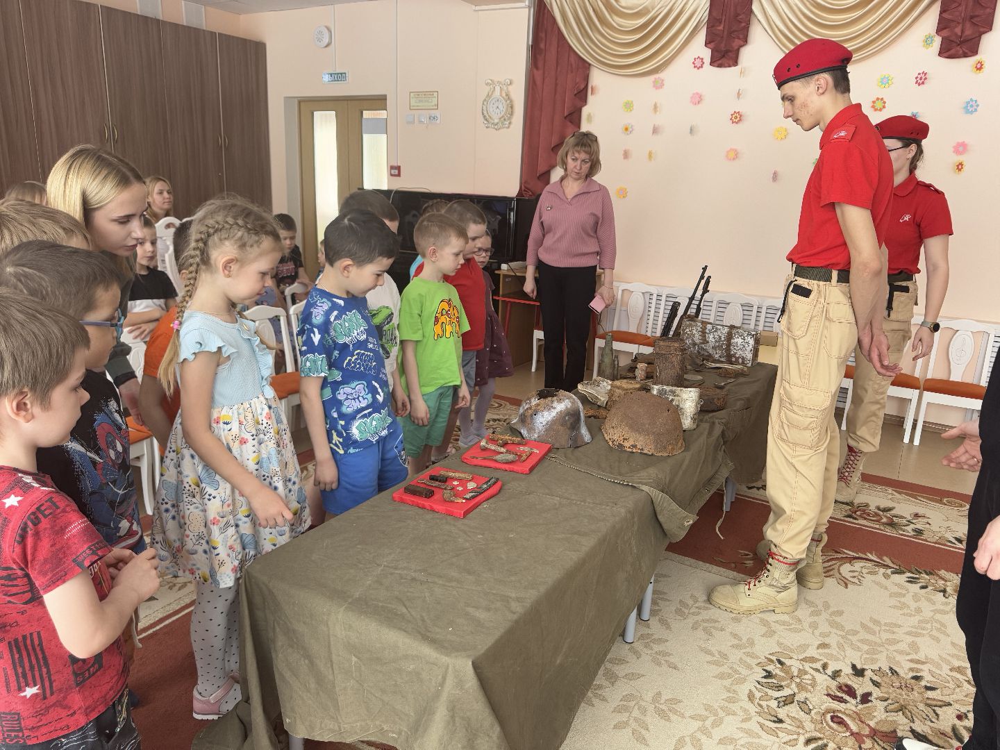 «Мы подготовили для малышей небольшой музей, приготовили оружие и разные находки (каски, гильзы, котелки) . Мы рассказали детям о вещах времён Великой Отечественной войны, найденных в наших лесах во время раскопок», — рассказал начальник штаба «Юнармии» в муниципальном округе Шаховская Илья Пахомов.