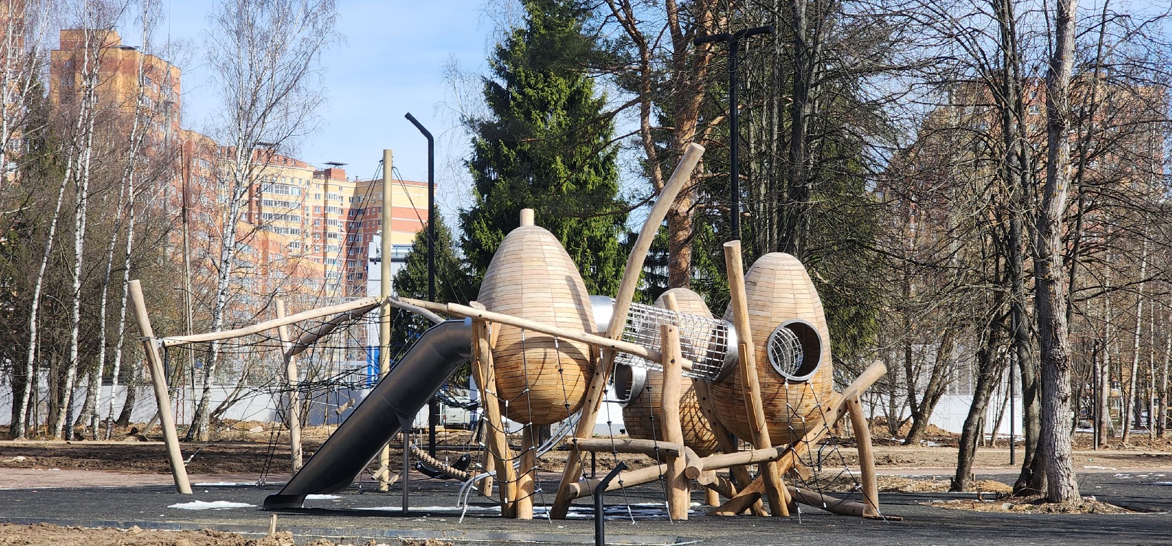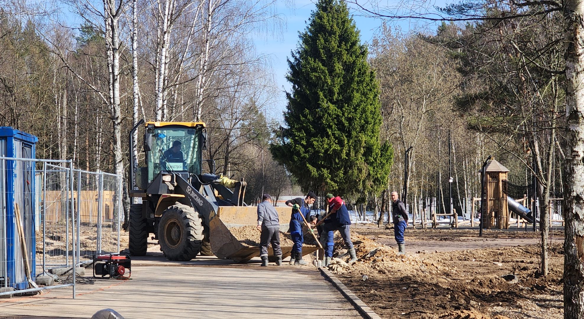 С приходом тепла в лесопарке Супонево приступили к строительству. Рабочие укладывают мягкое резиновое покрытие на детских площадках. И асфальт у центрального входа в парк.