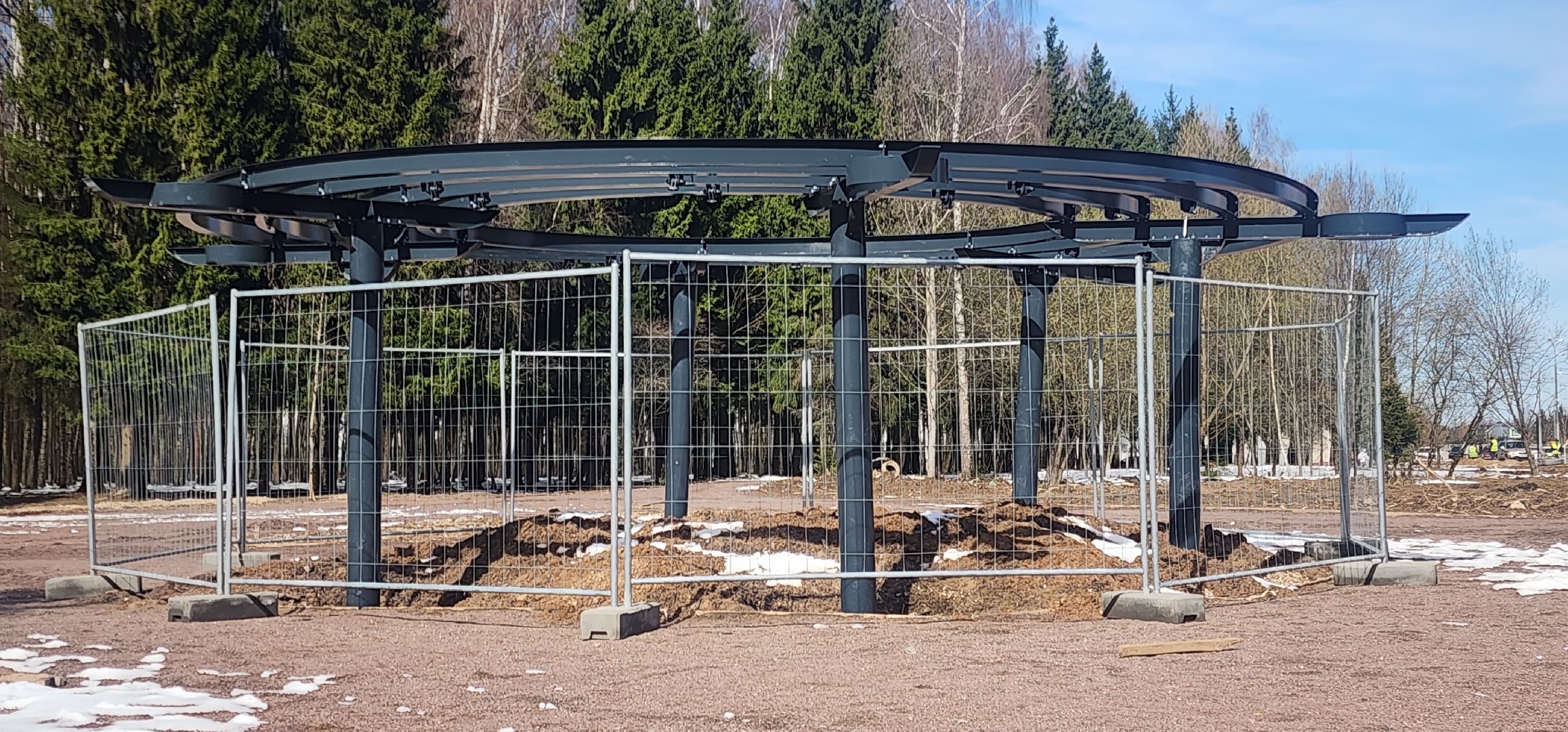 В лесопарке Супонево в Звенигороде с приходом тепла приступили к строительству сцены и работам на центральной аллее