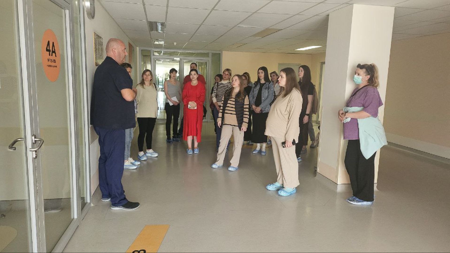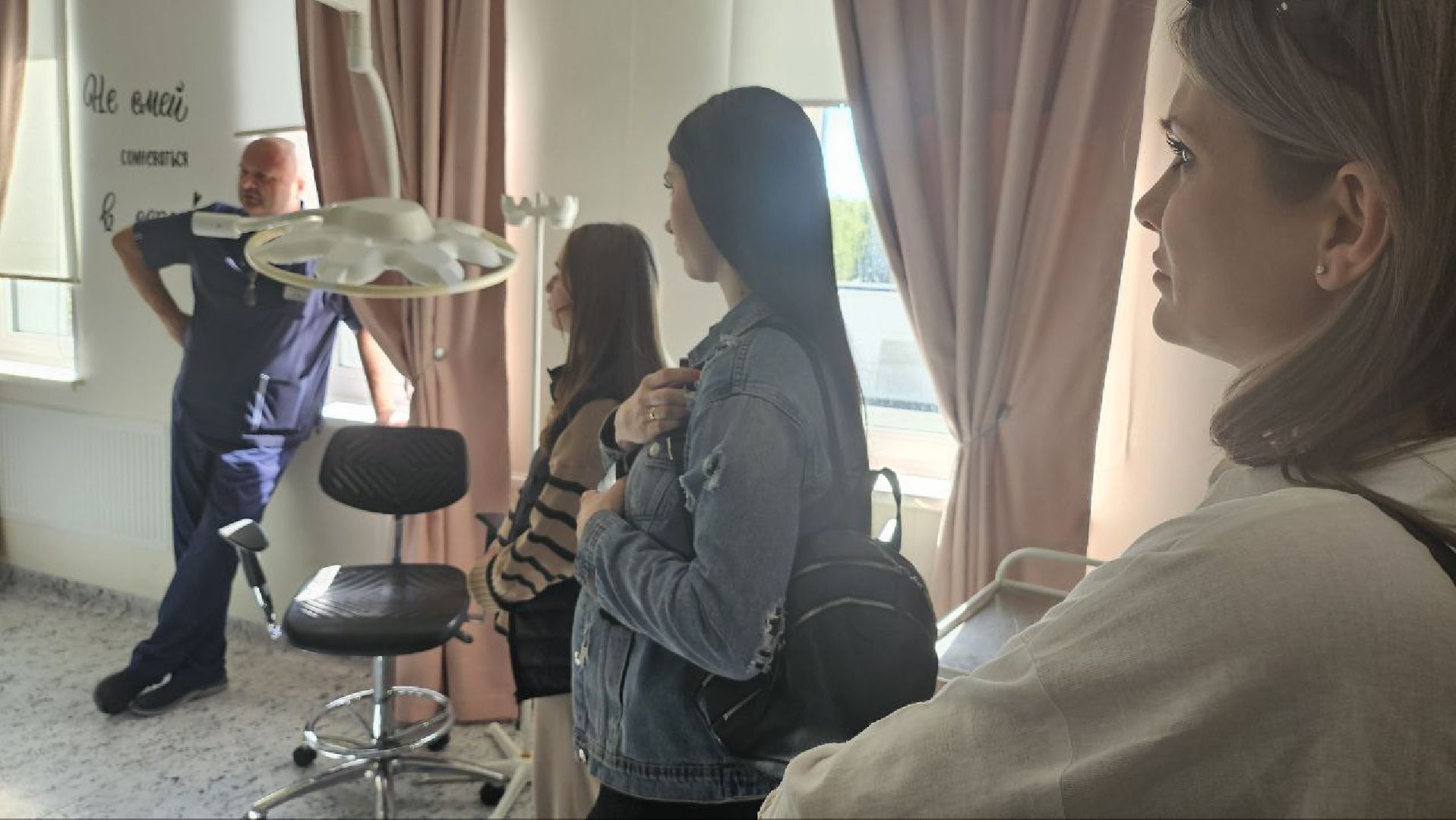 После беседы всех желающих на экскурсию по центру повёл акушер-гинеколог Алексей Ермаков. Он показал родильный бокс и послеродовую палату, подробно рассказывая об условиях пребывания, оборудовании и процессе сопровождения родов.