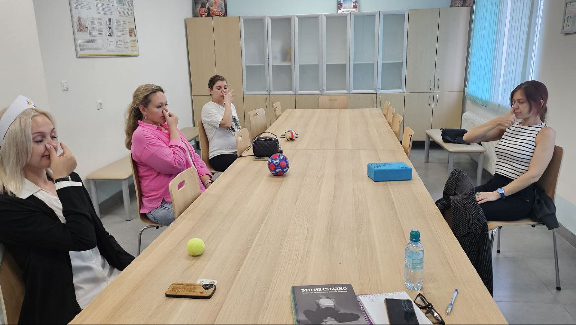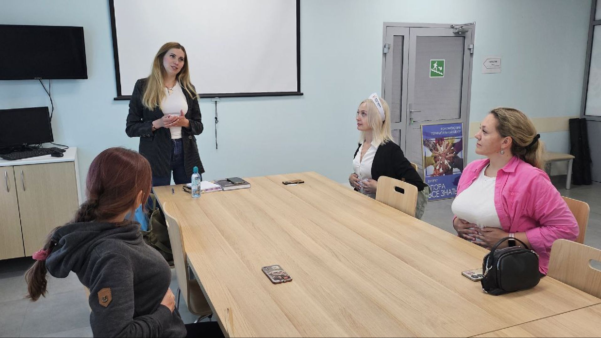 В Коломенском перинатальном центре прошло занятие по йоге для женщин, недавно ставших мамами. Но в этот раз — без привычных ковриков и спортивной формы. Всё было максимально просто и удобно: участницы занимались в повседневной одежде, а основное внимание уделили дыхательным упражнениям и работе с мышцами тазового дна.