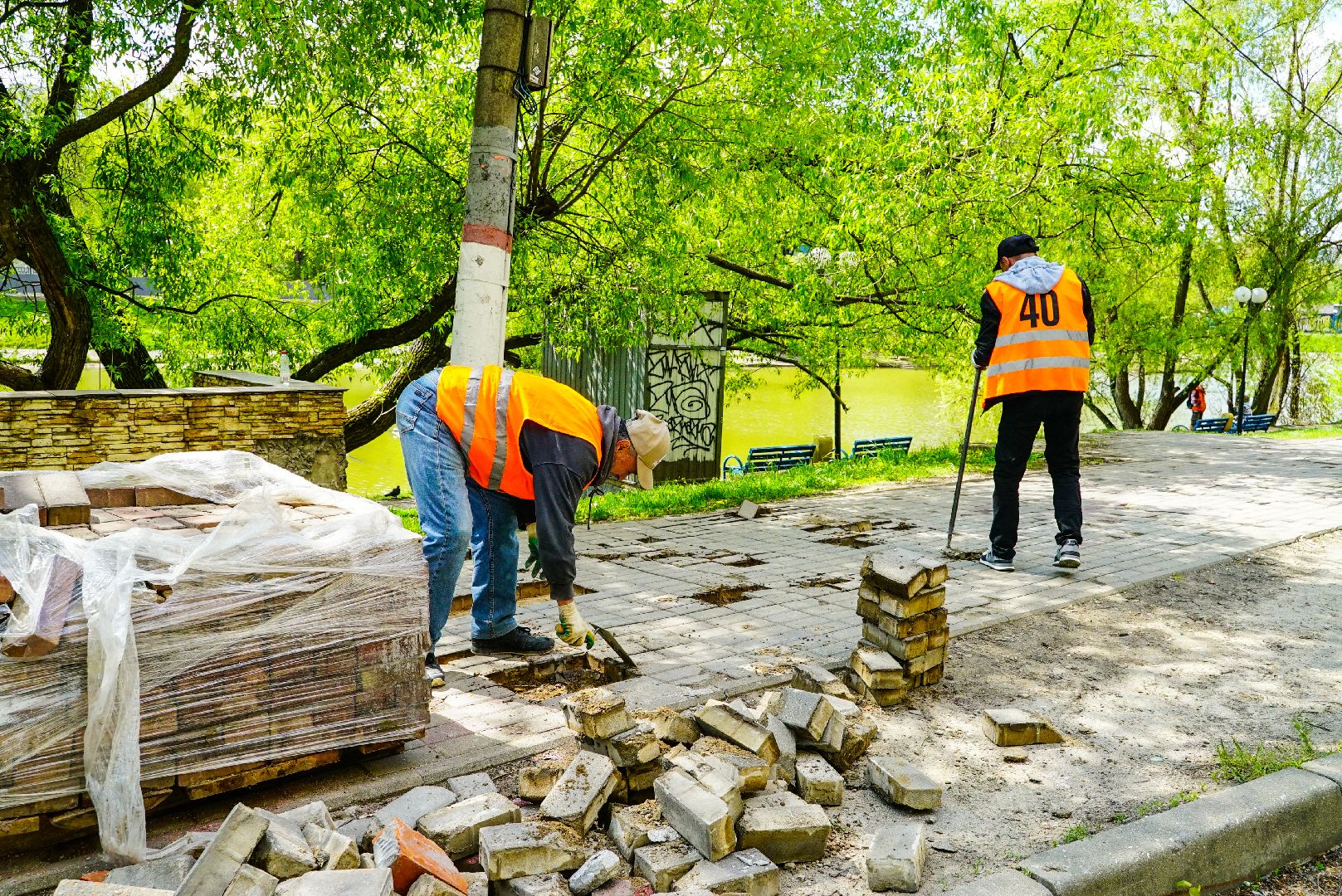 У Барашкинского пруда в Химках заменят тротуарную плитку
